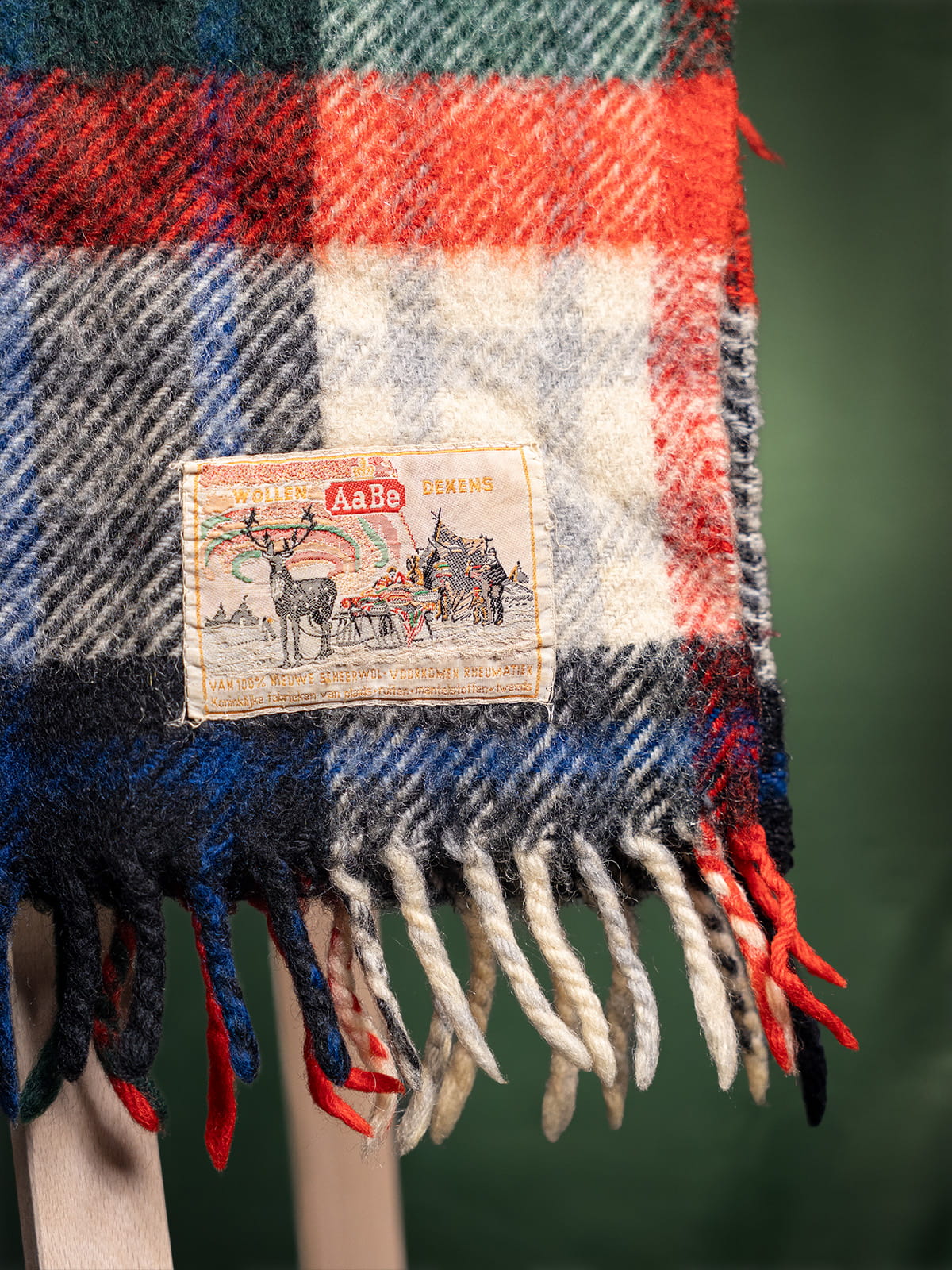 AaBe gruba wełniana narzuta/pled w kolorową kratę