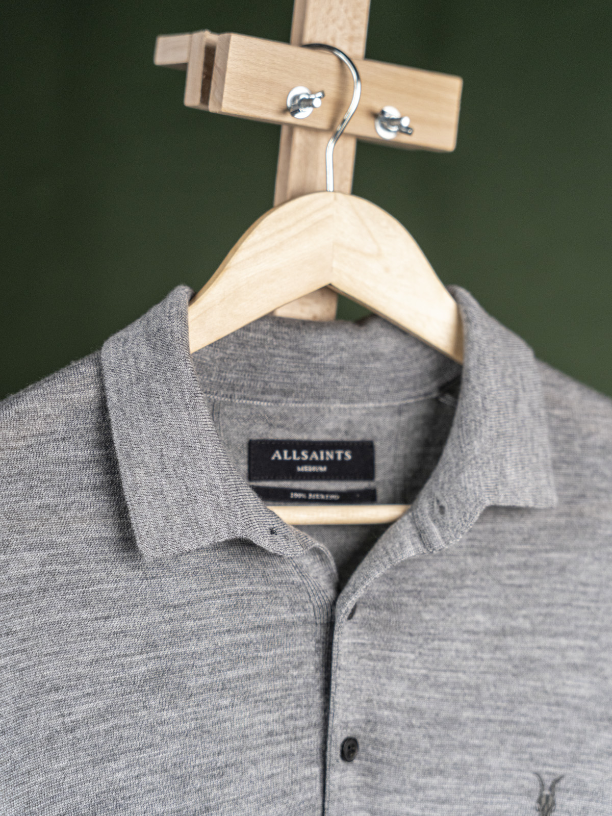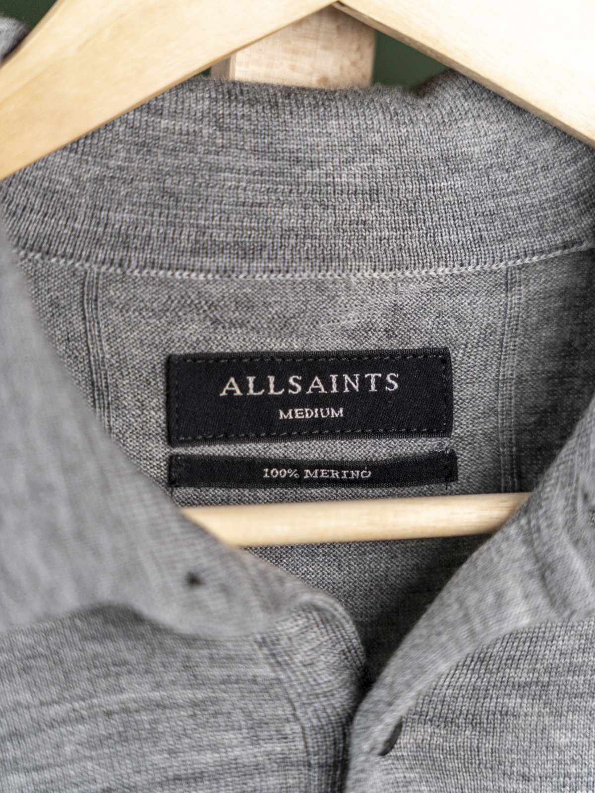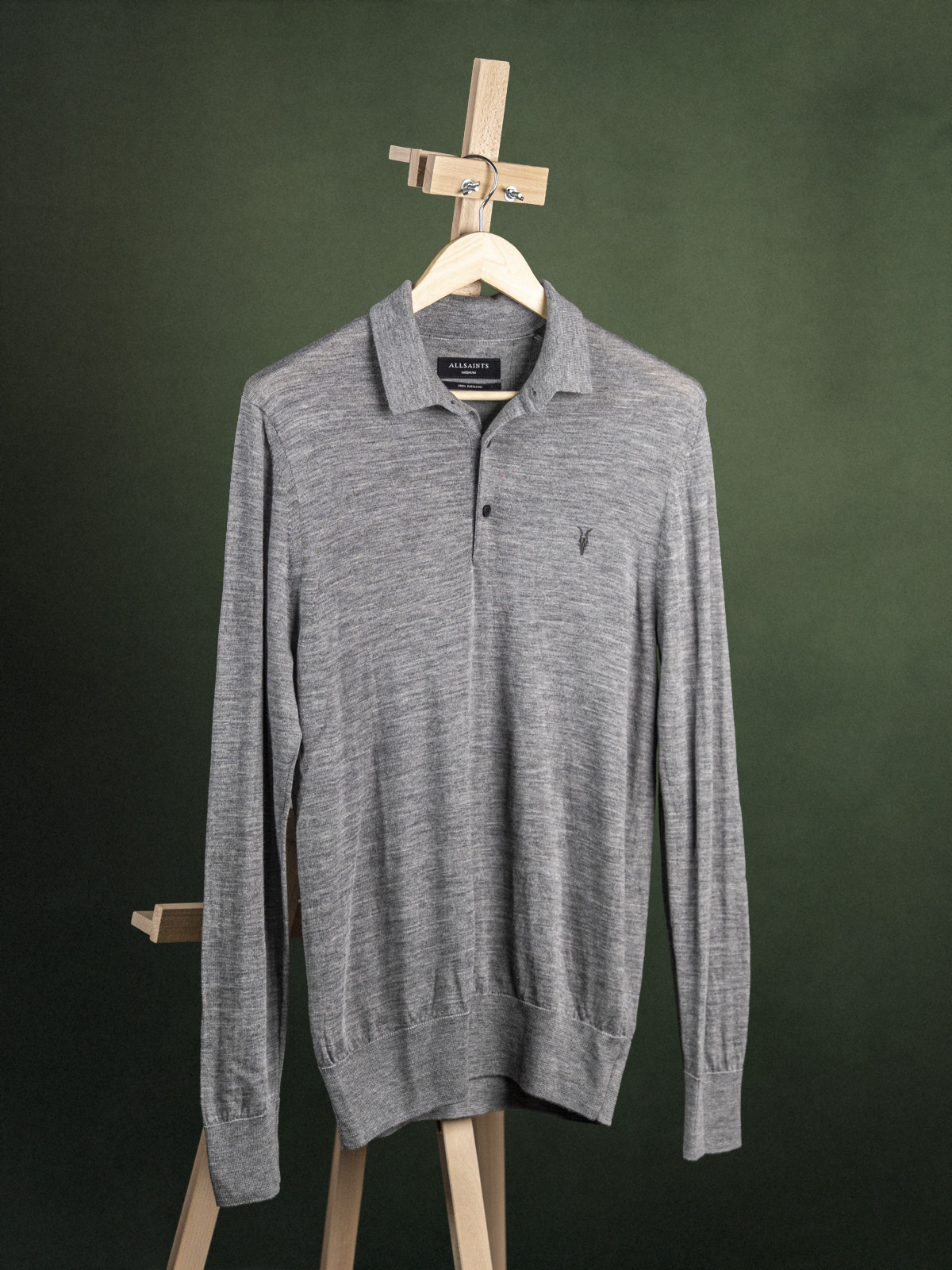 Allsaints szary męski sweter polo z naszywką r. S Long