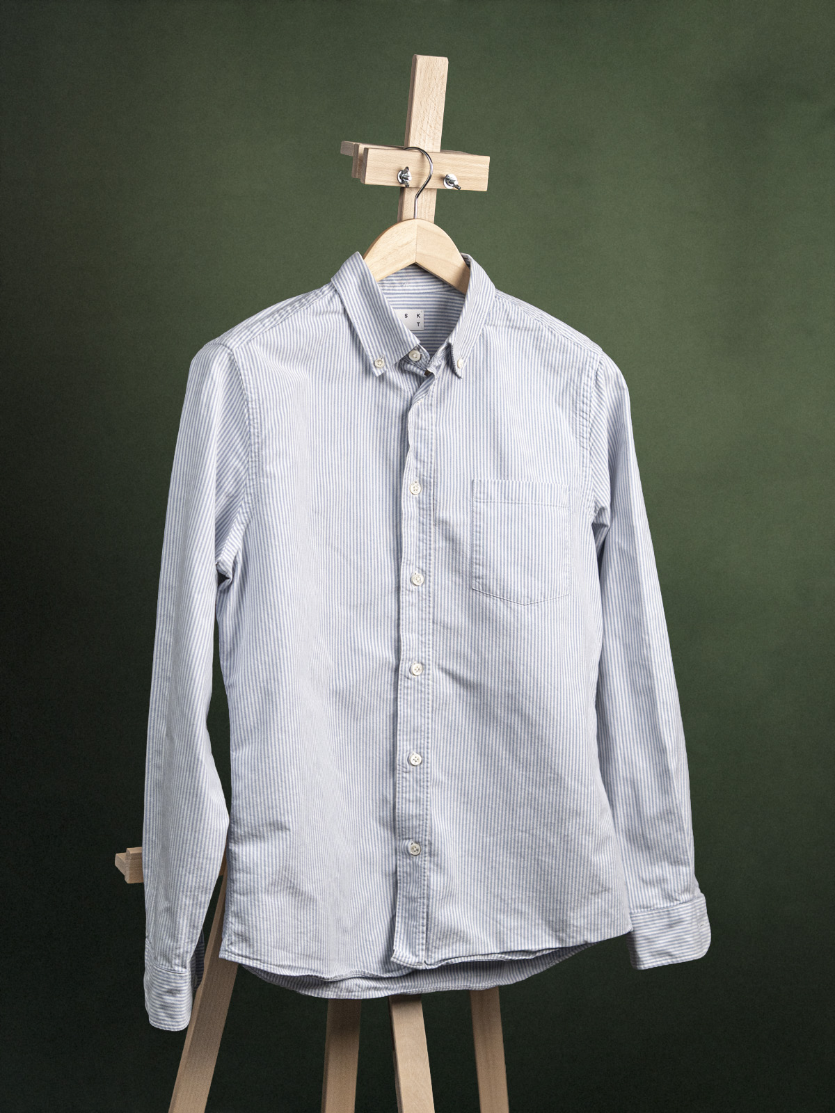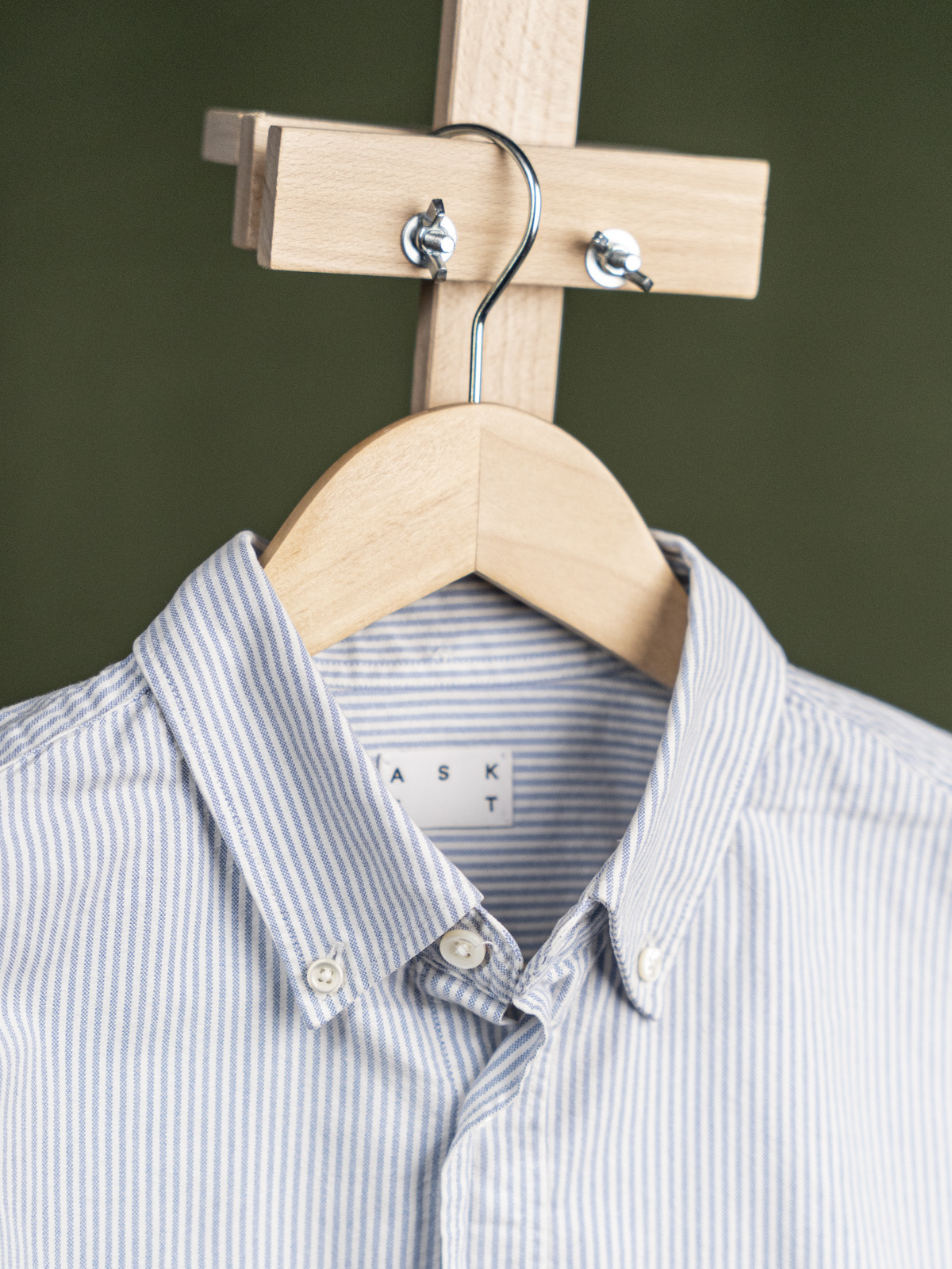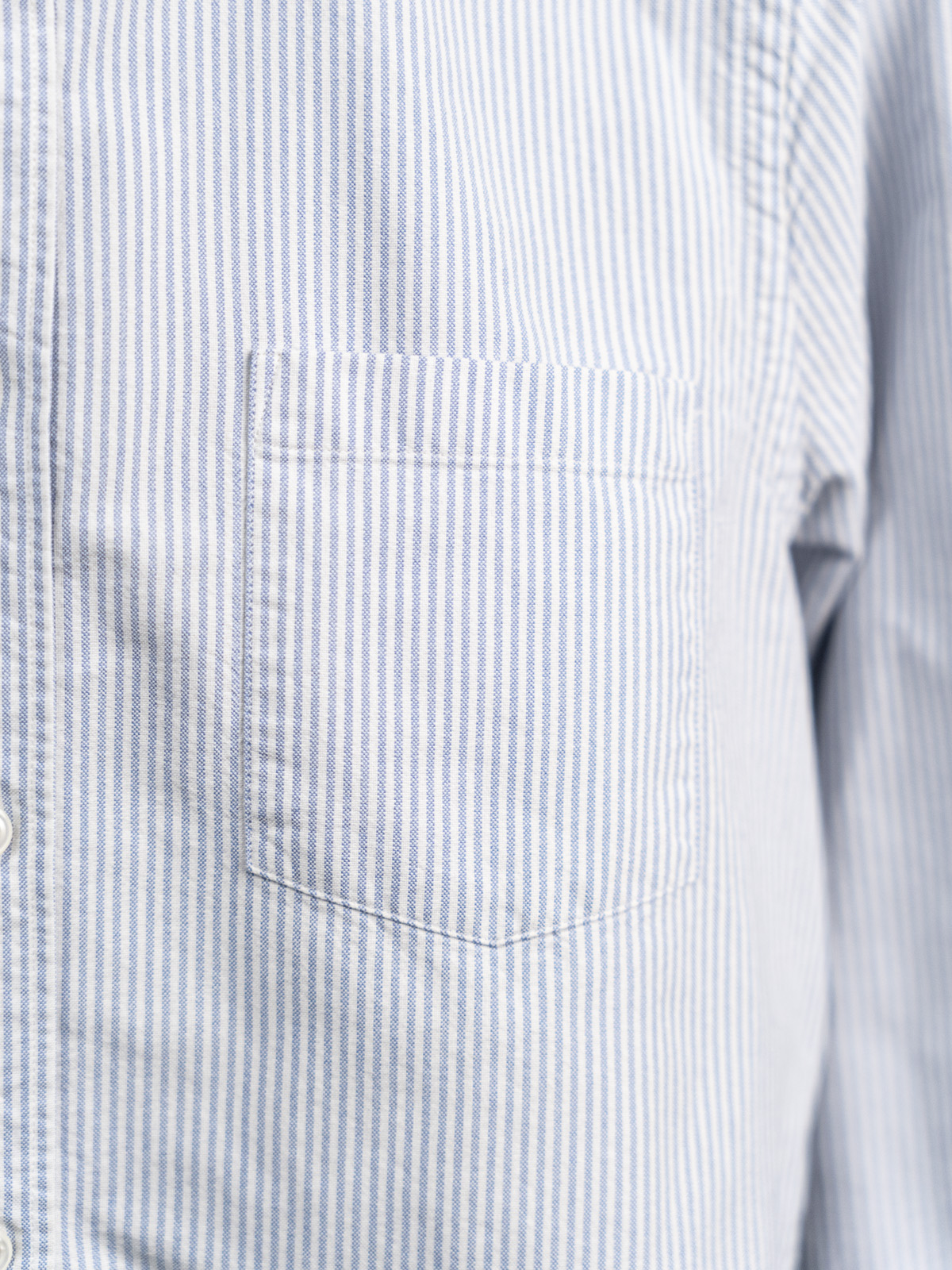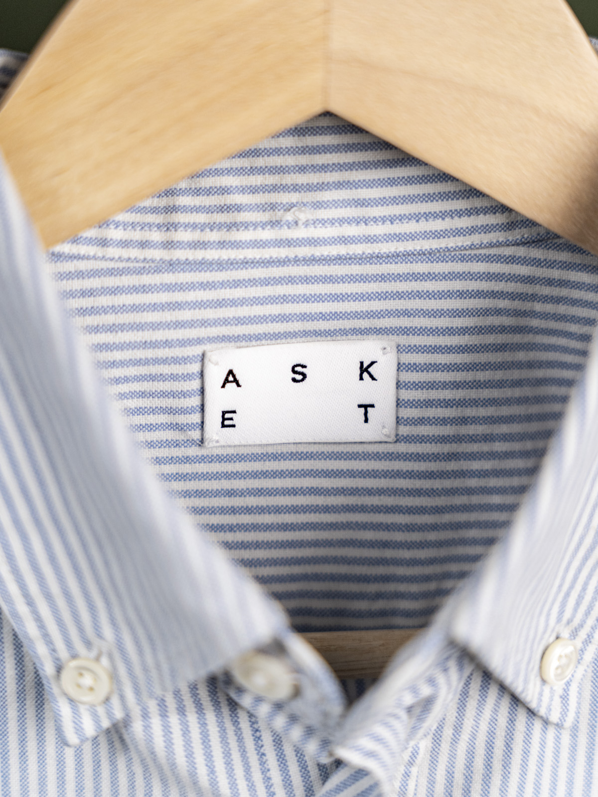 Asket biała koszula męska OCBD w błękitny prążek z kieszonką r. M