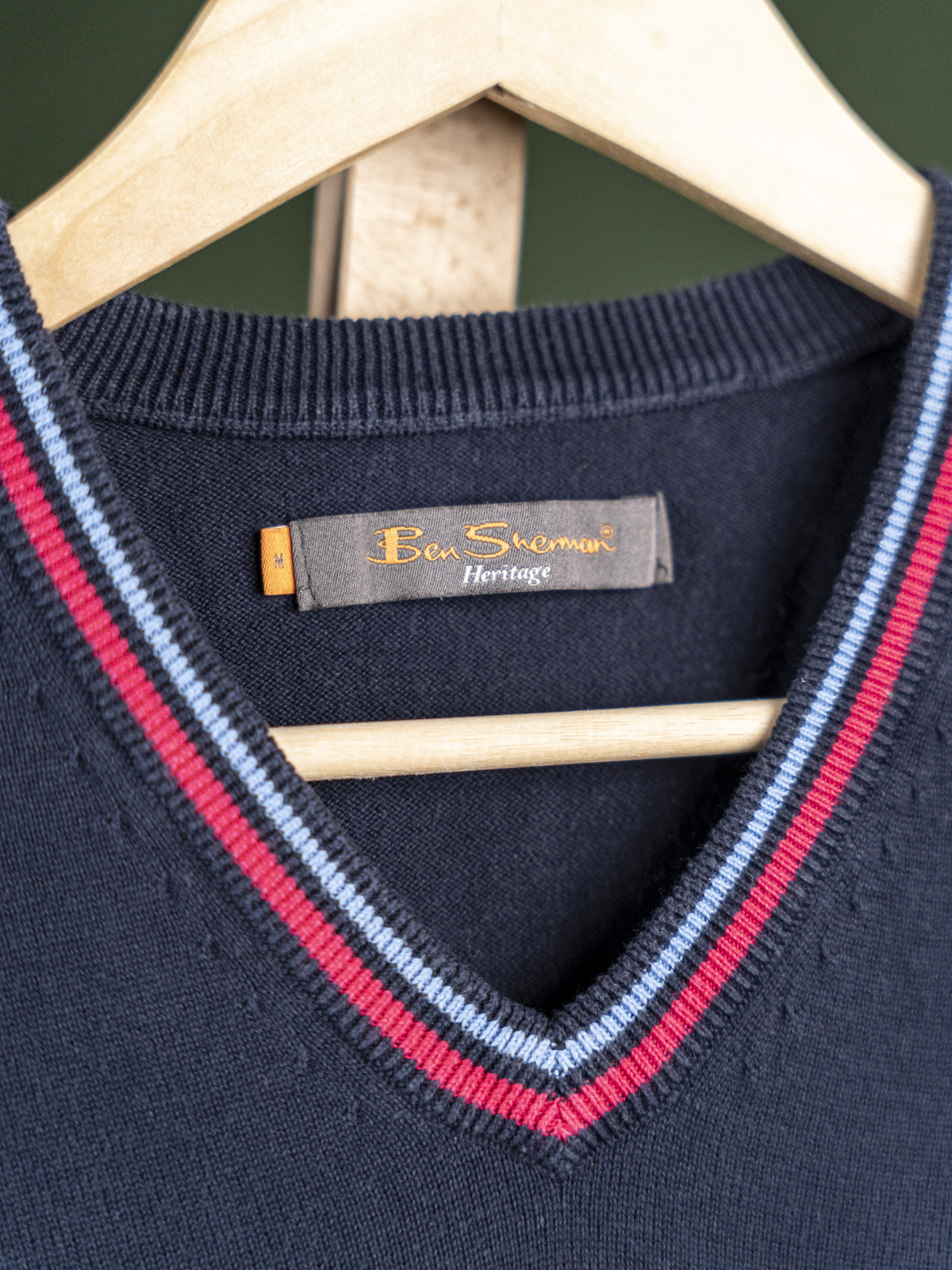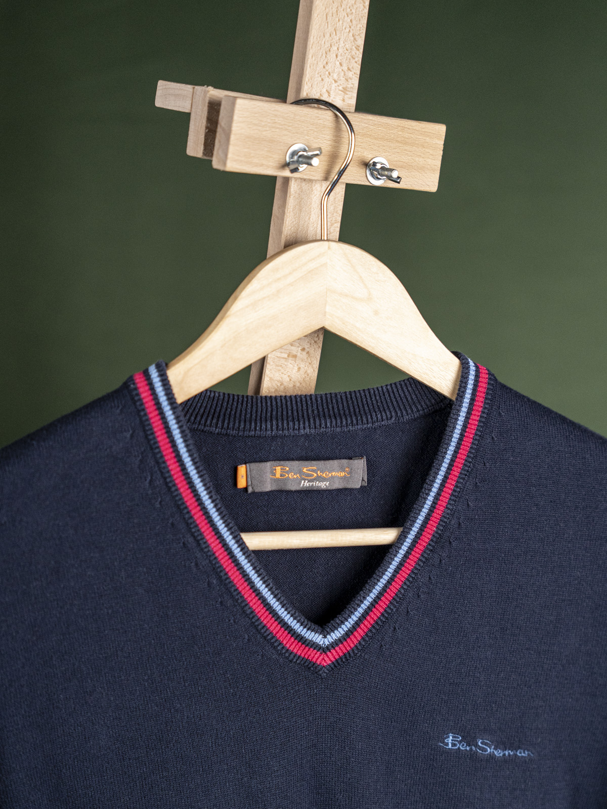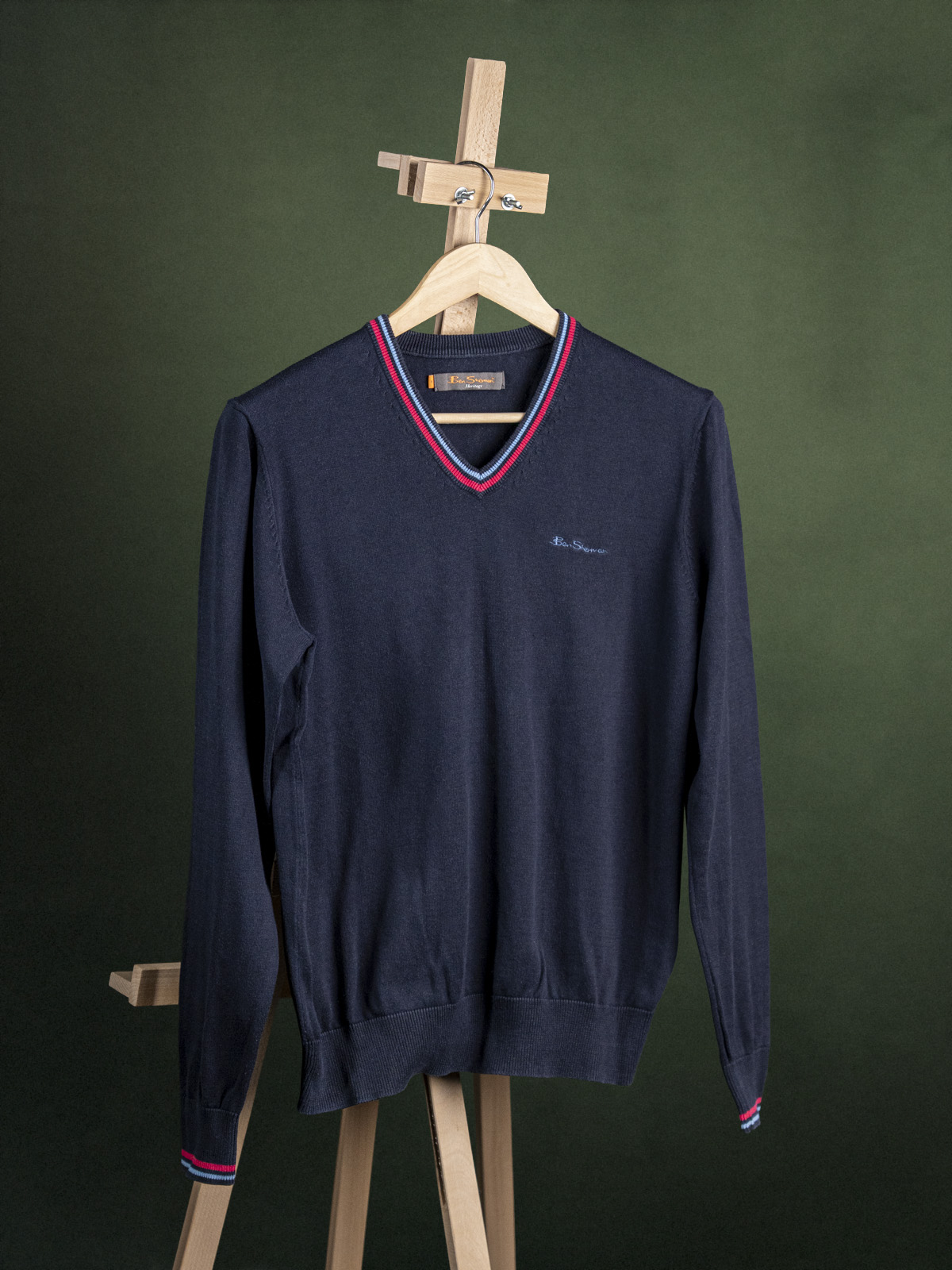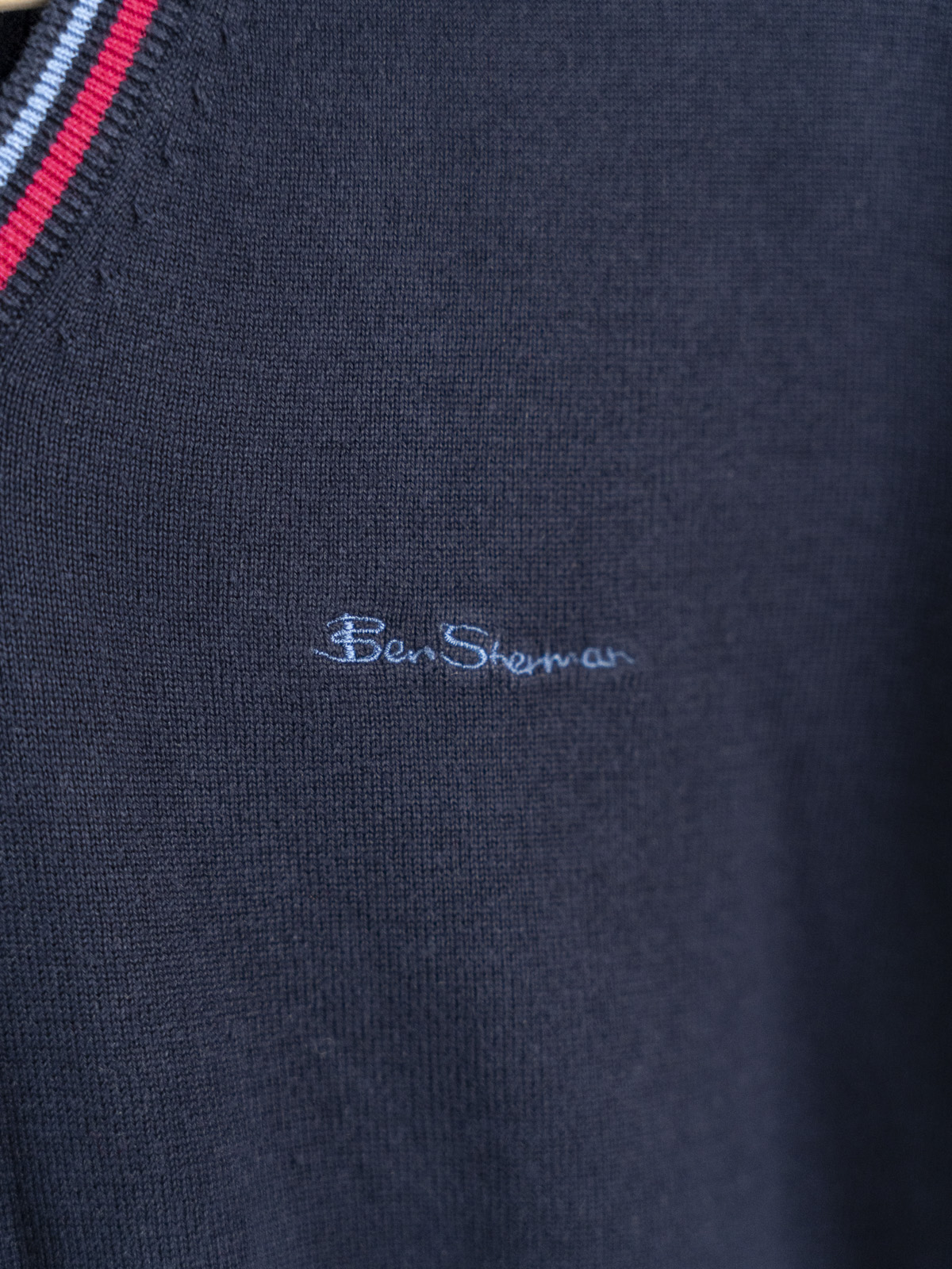 Ben Sherman granatowy sweter krykietowy męski z naszywką r. M