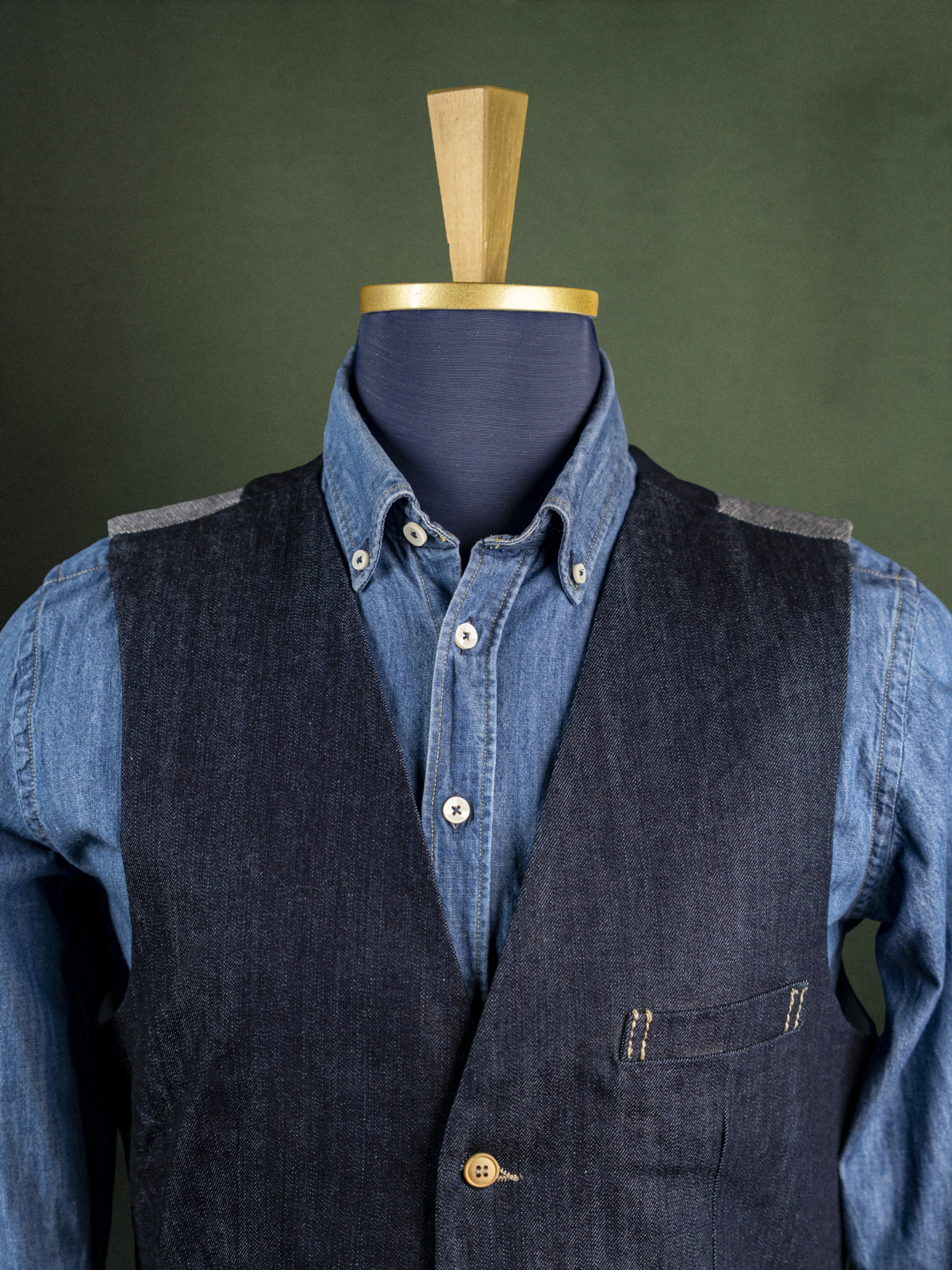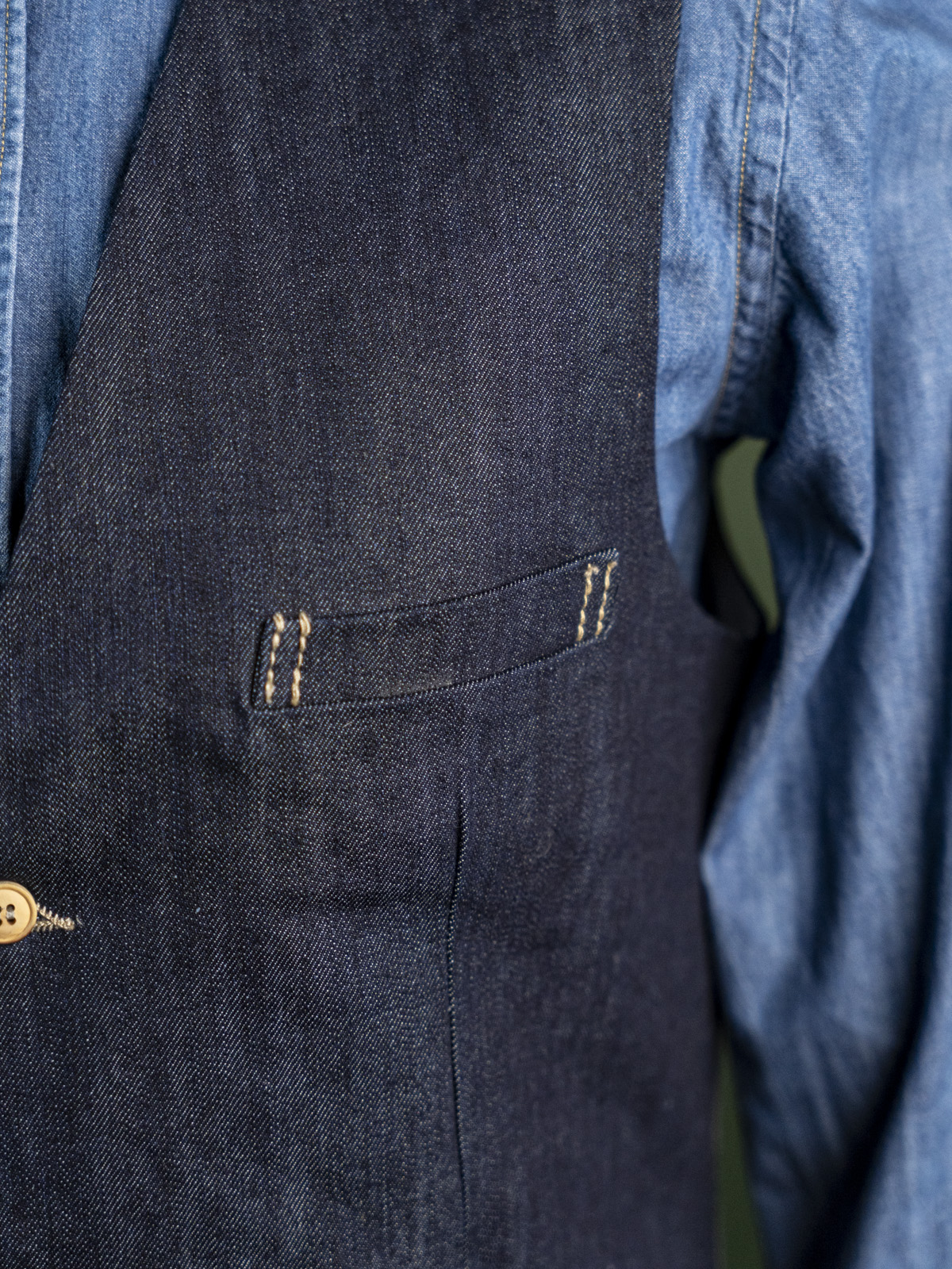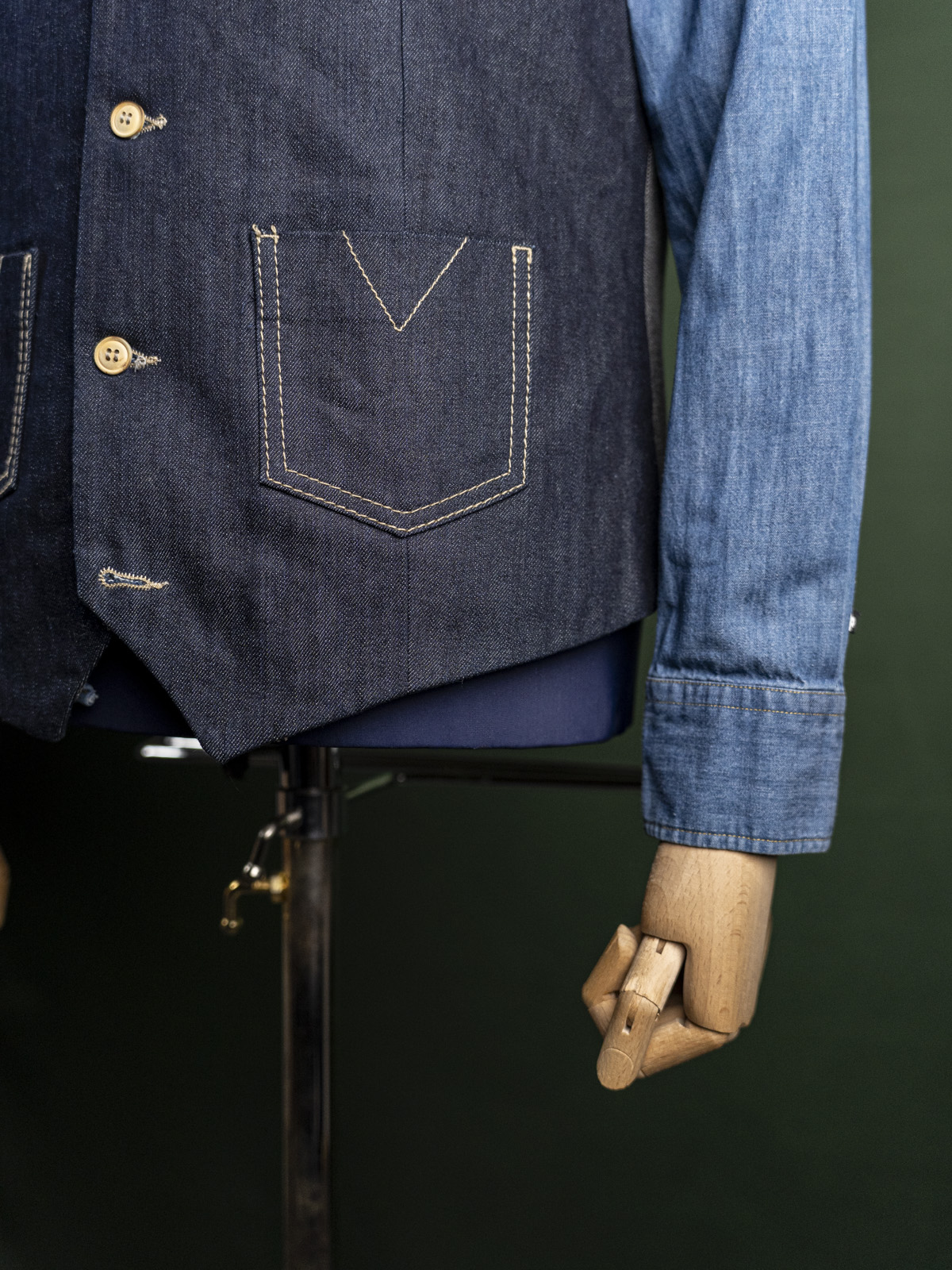 Bershka granatowa denimowa kamizelka z trzema kieszonkami r. L
