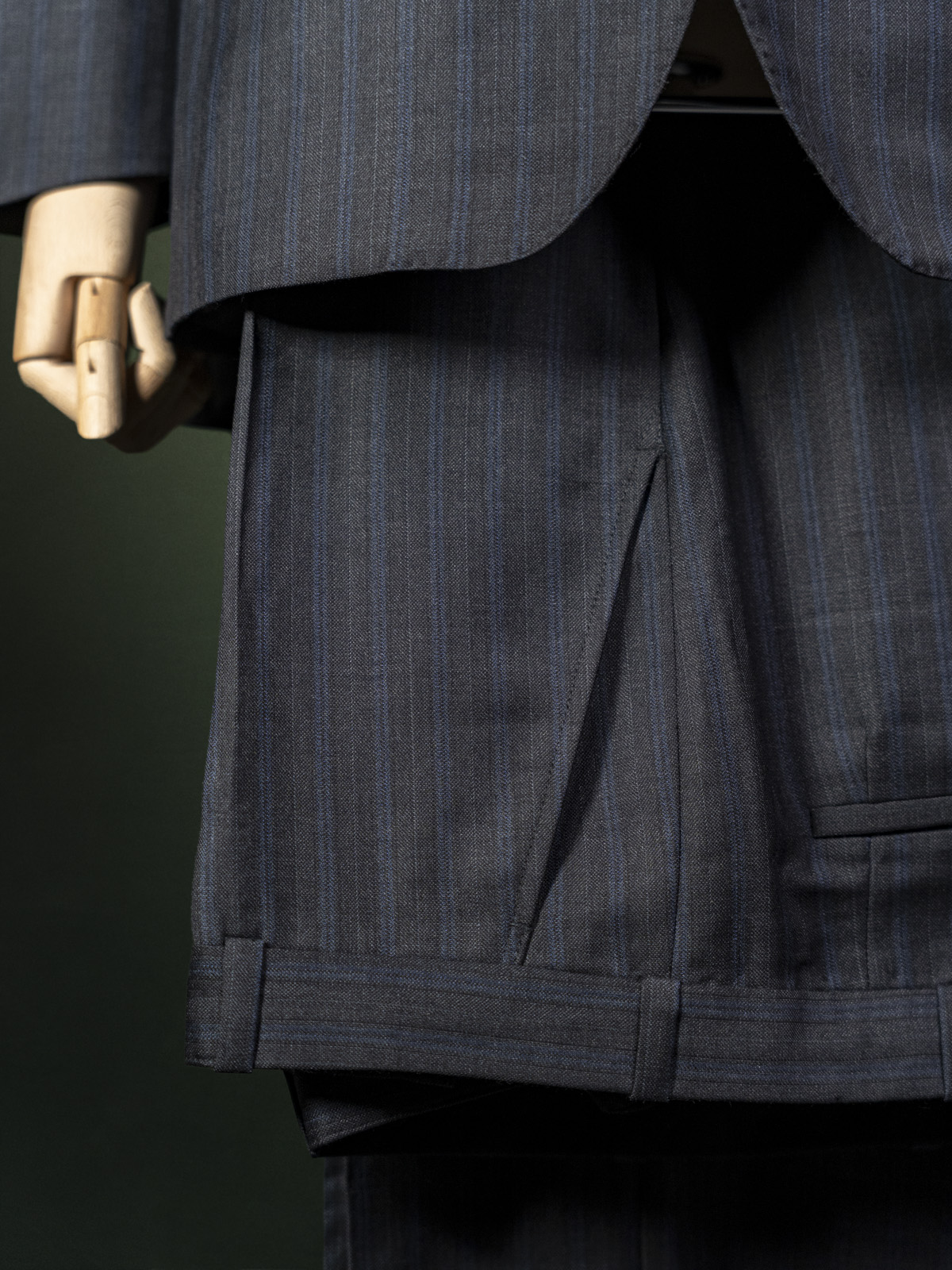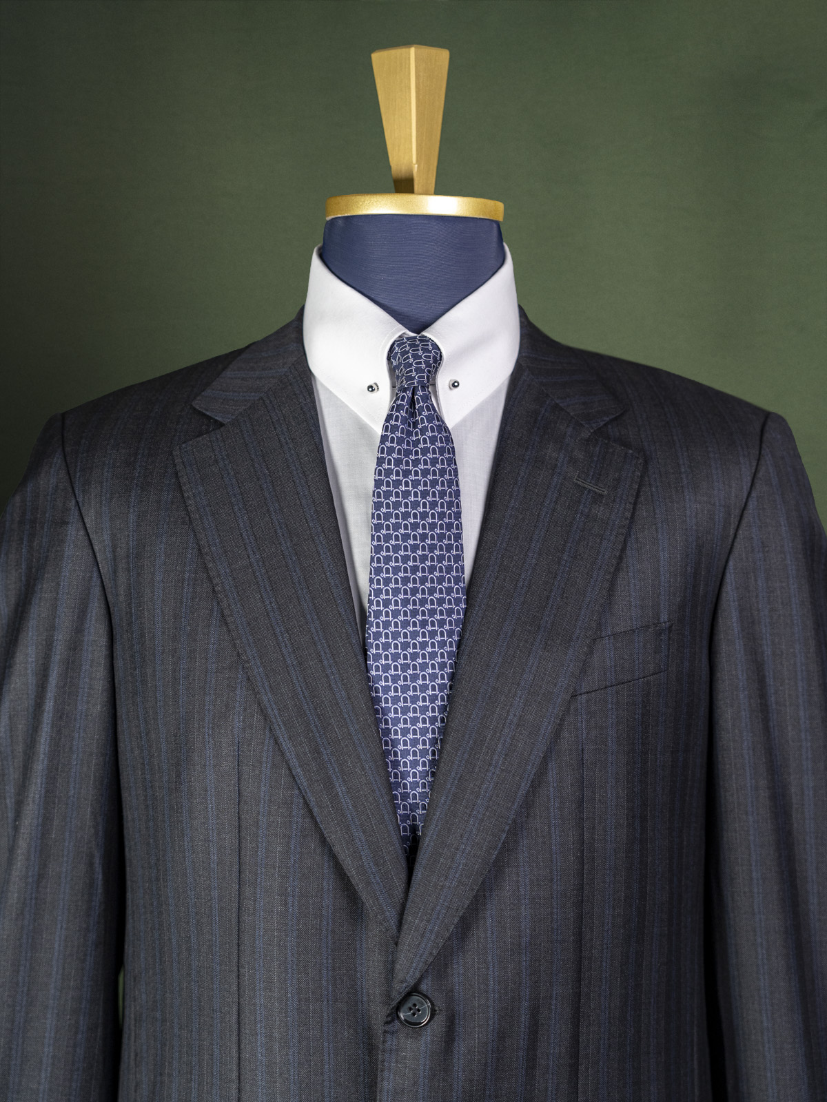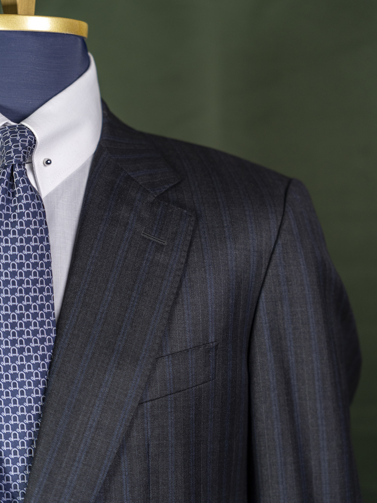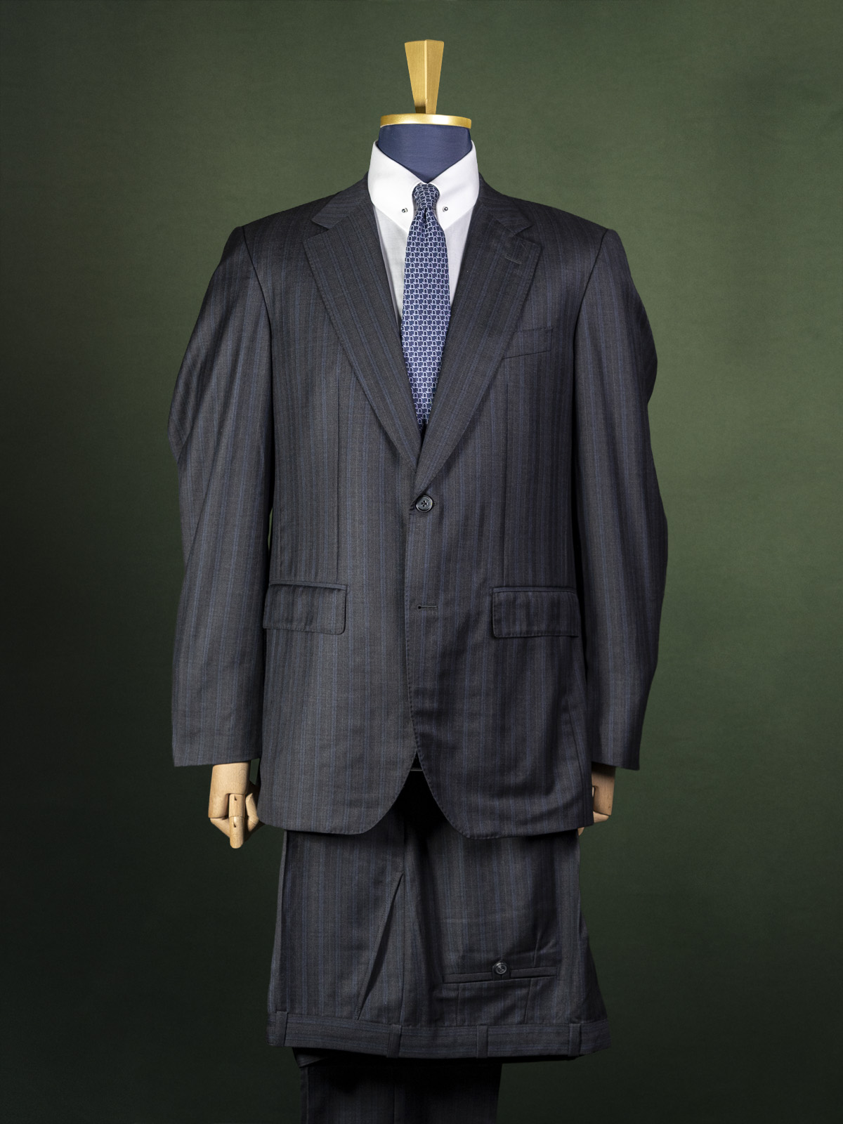 Bielenia ciemnoszary garnitur w granatowe paski r. 56 long