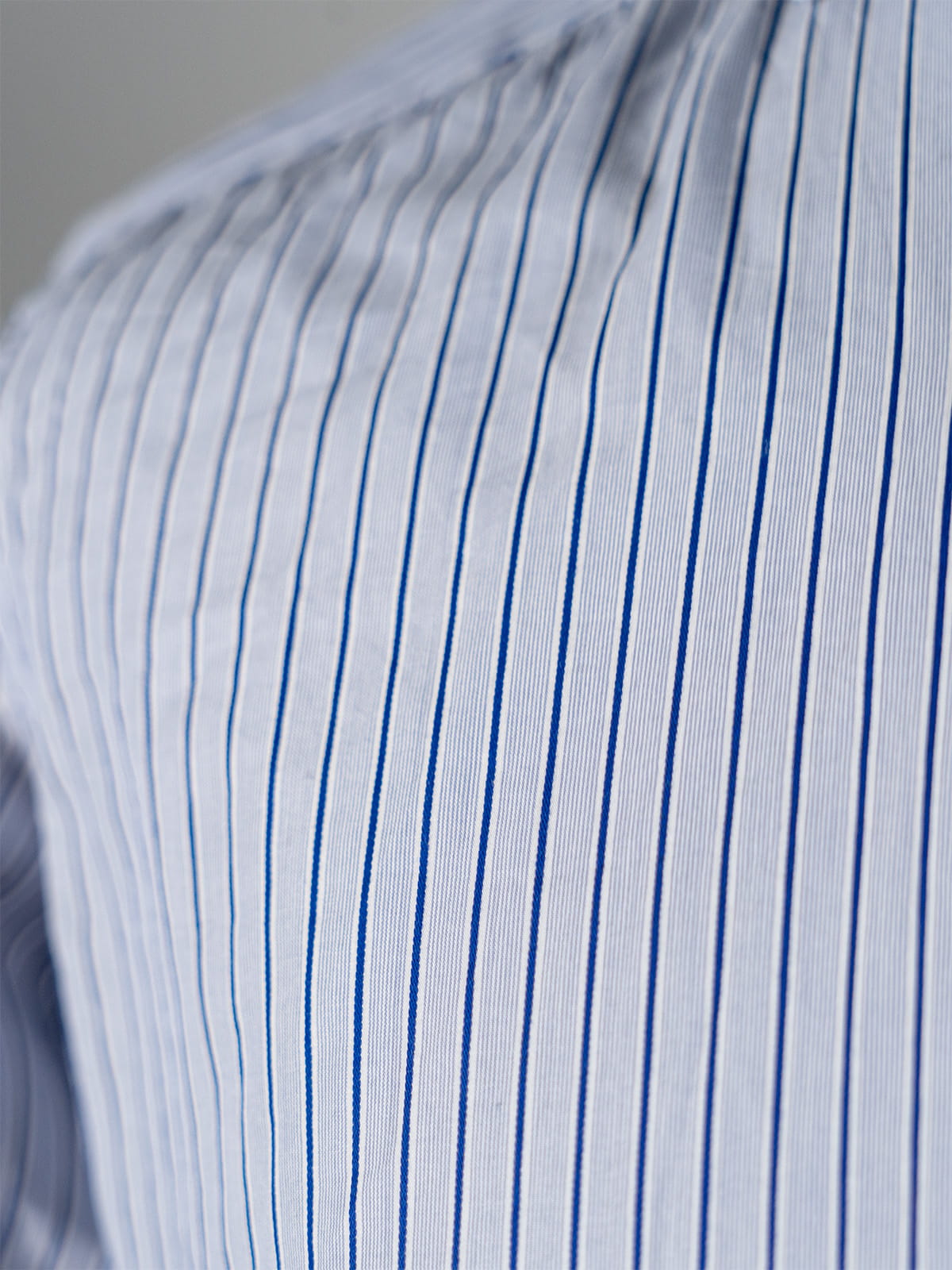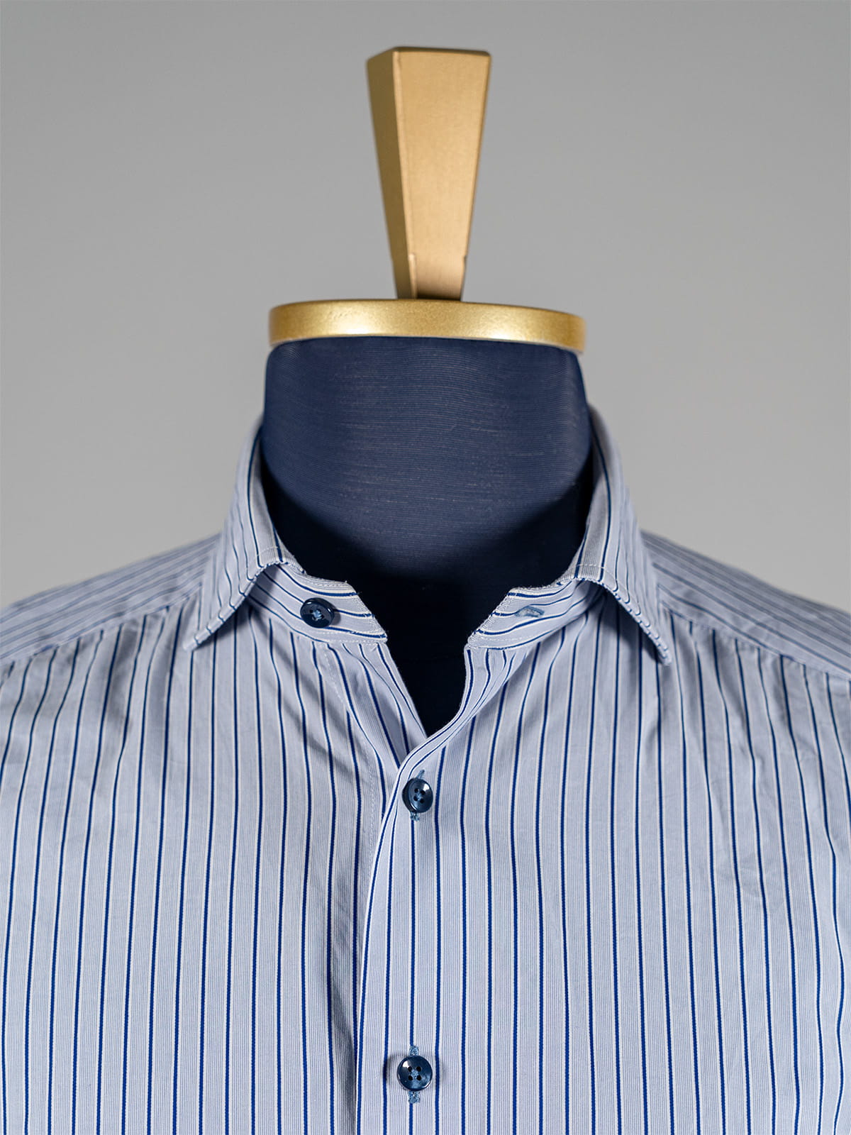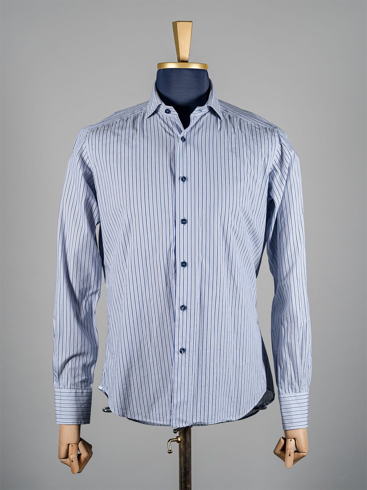 Błękitno-granatowa koszula w retro pasy Bottega Artigiana r. 41