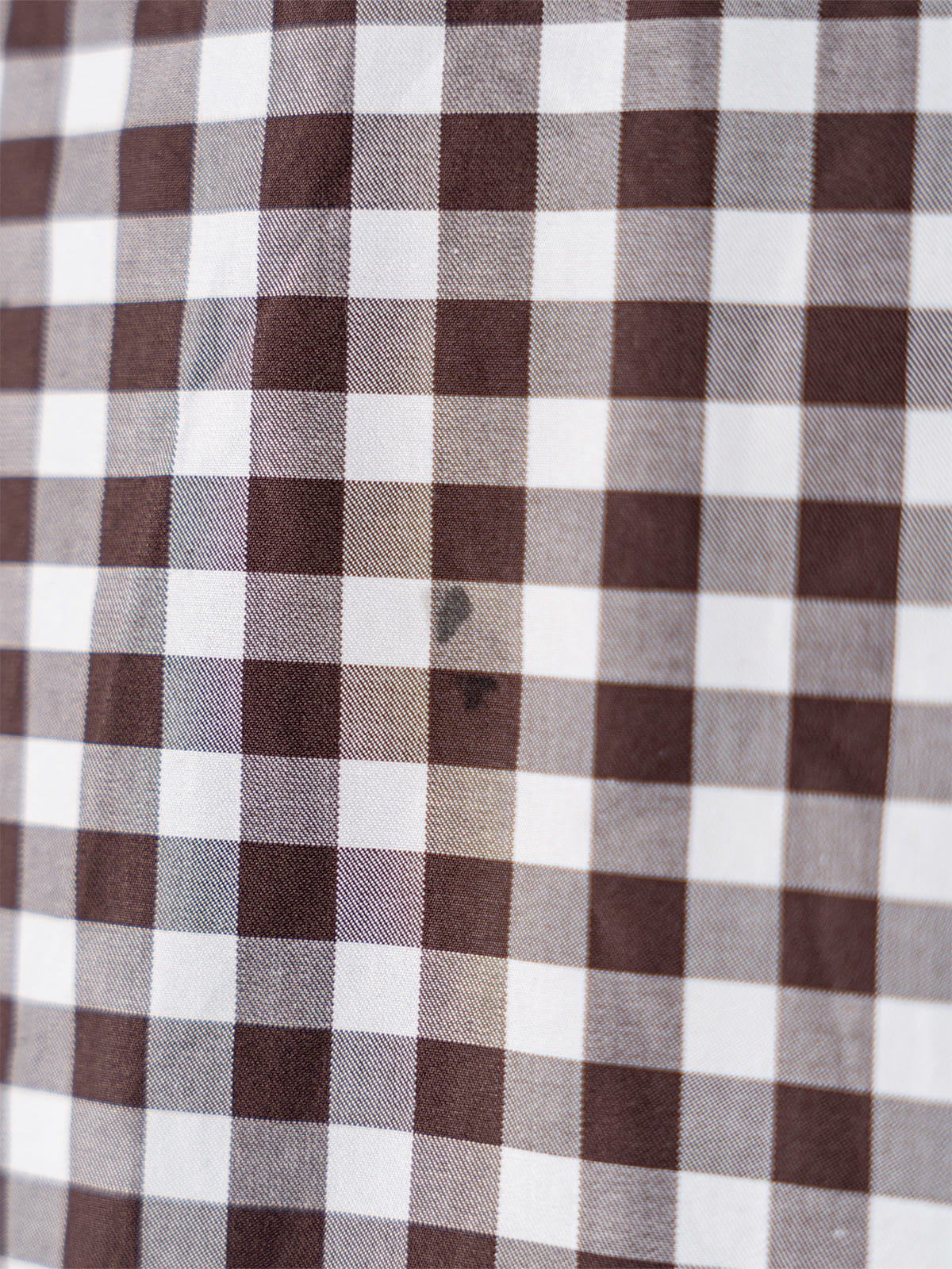 Uwagi: drobna plamka na froncie koszuli, mało widoczna w użytkowaniu