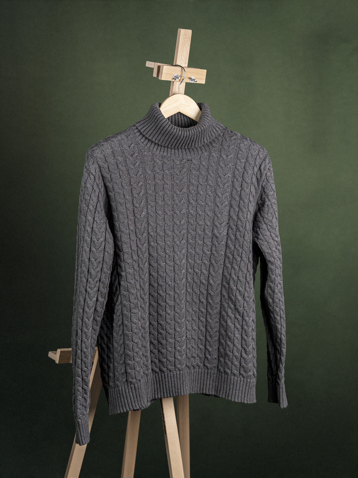 Bytom szary golf męski ze splotem warkoczowym r. M