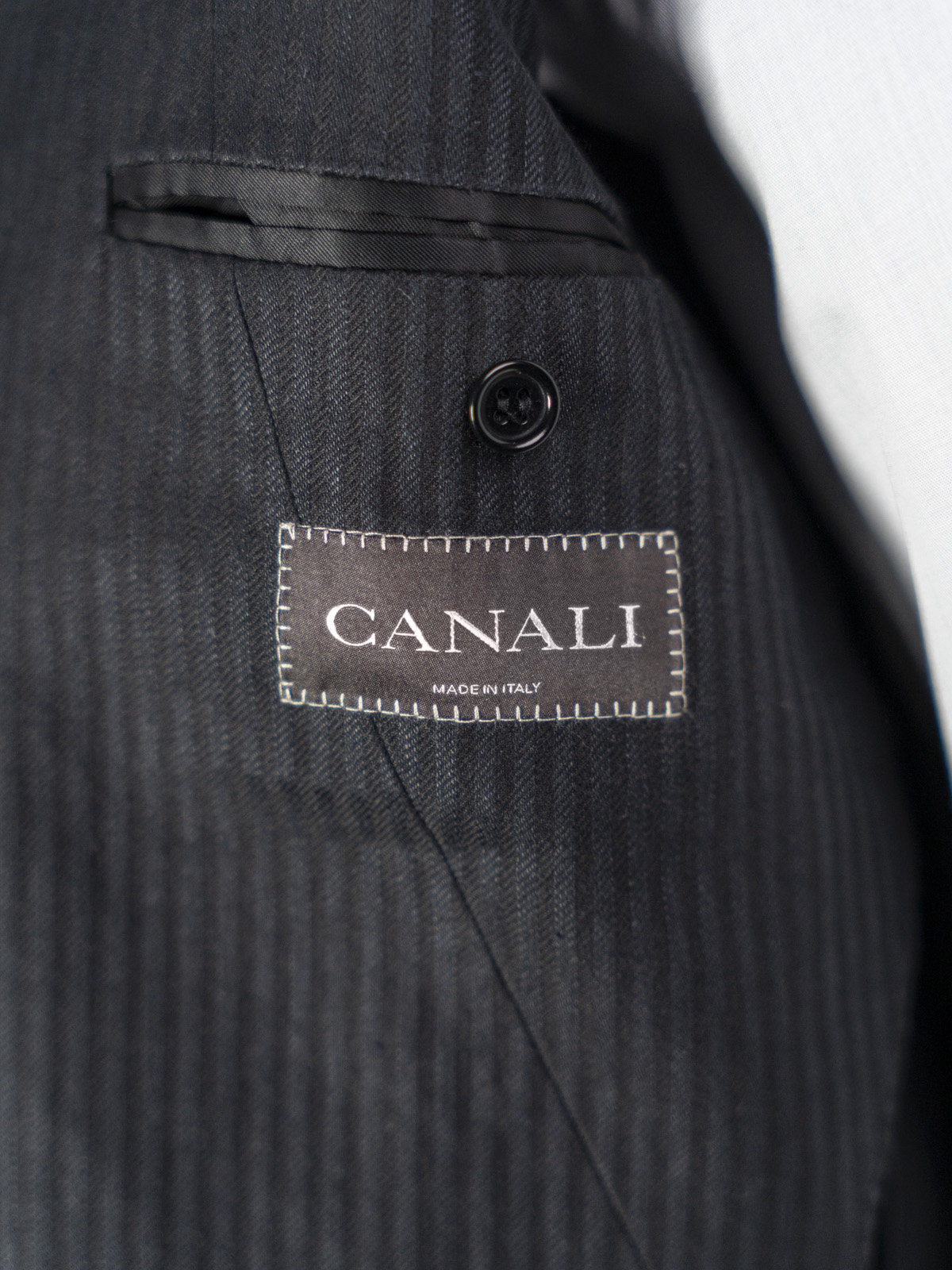 Canali antracytowa bawełniano-lniana marynarka w cienkie paski r. 52