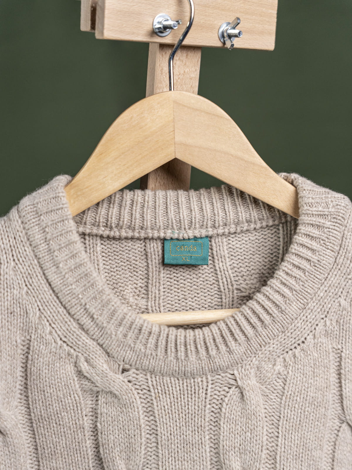 Canda beżowy warkoczowy zimowy sweter męski z wełny r. XL