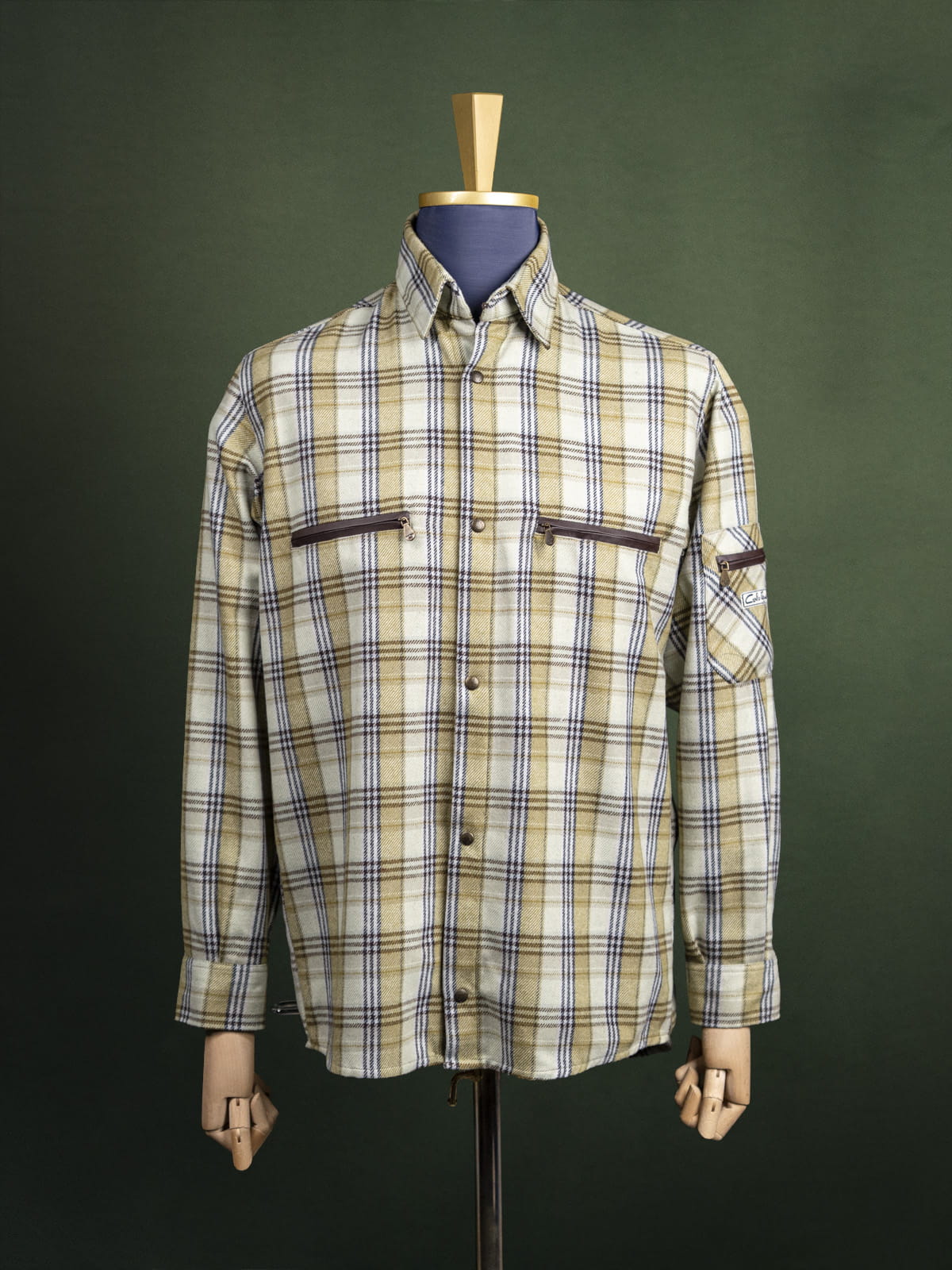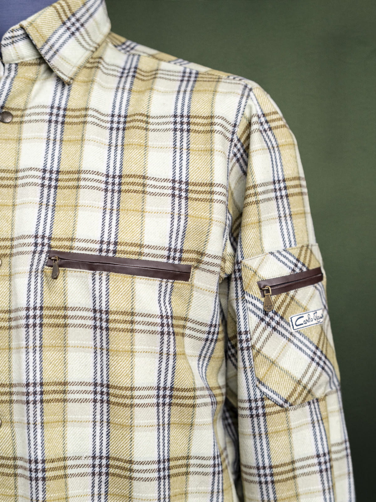 Carlo Mauri jasnozielona kraciasta męska koszula flanelowa z wełną r. L