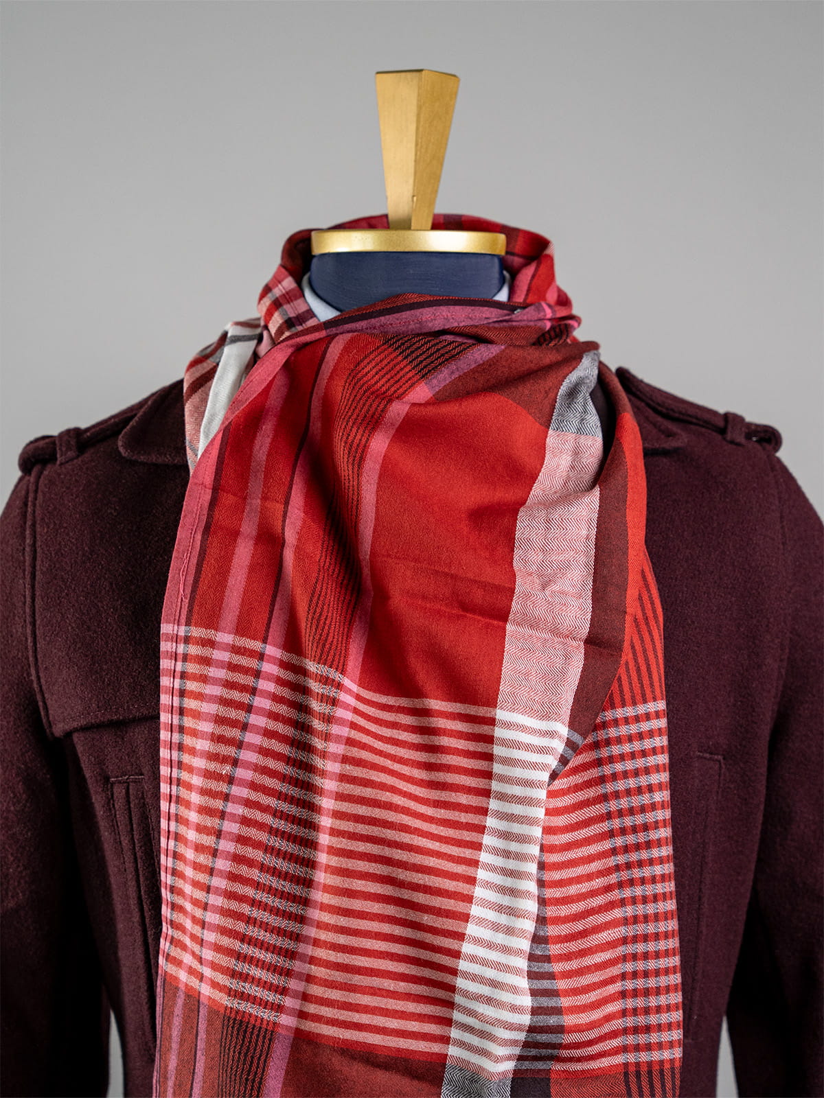 Cecil bawełniany czerwony tartanowy szalik męski