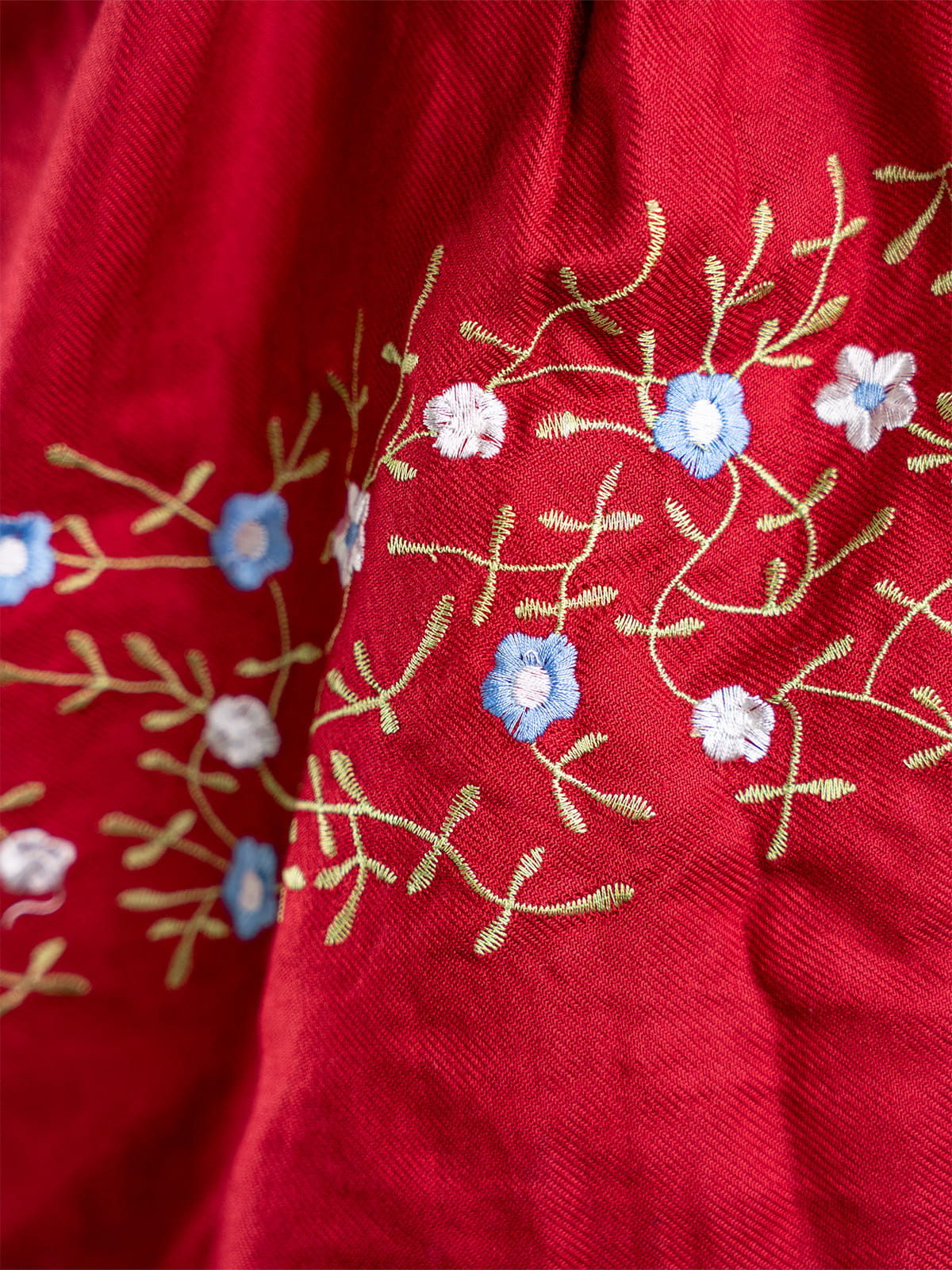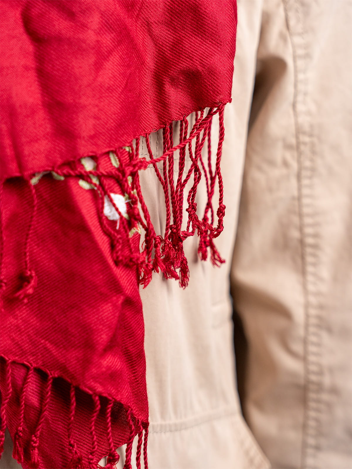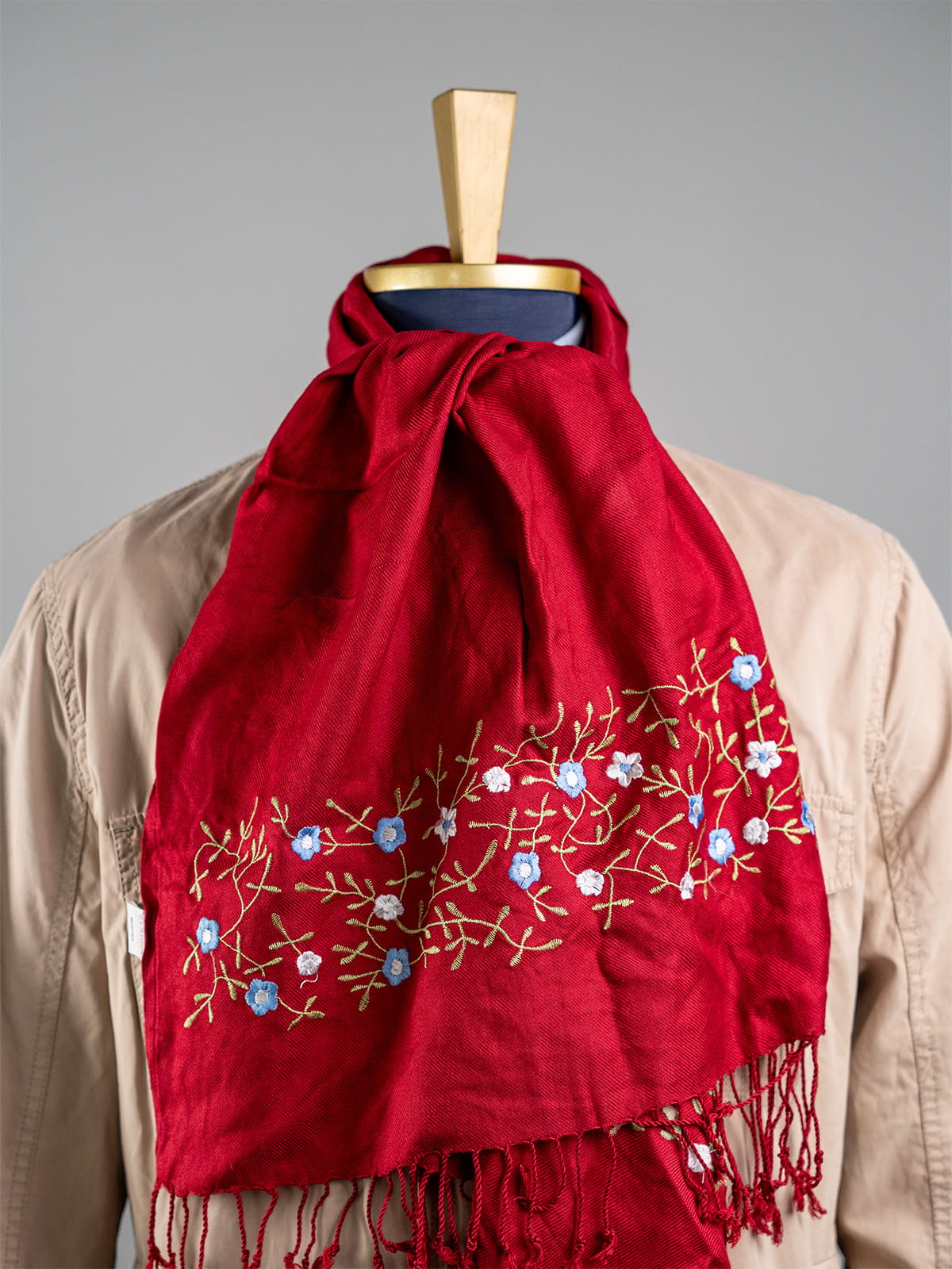 Claire d’Orane czerwony wiskozowy szalik z motywem kwiatów