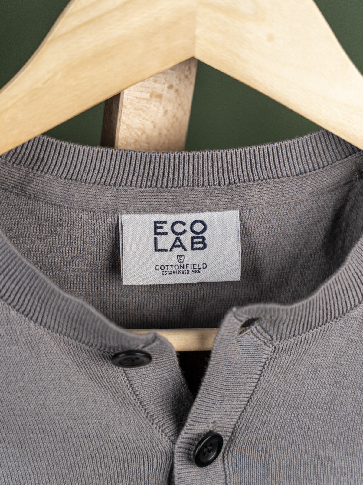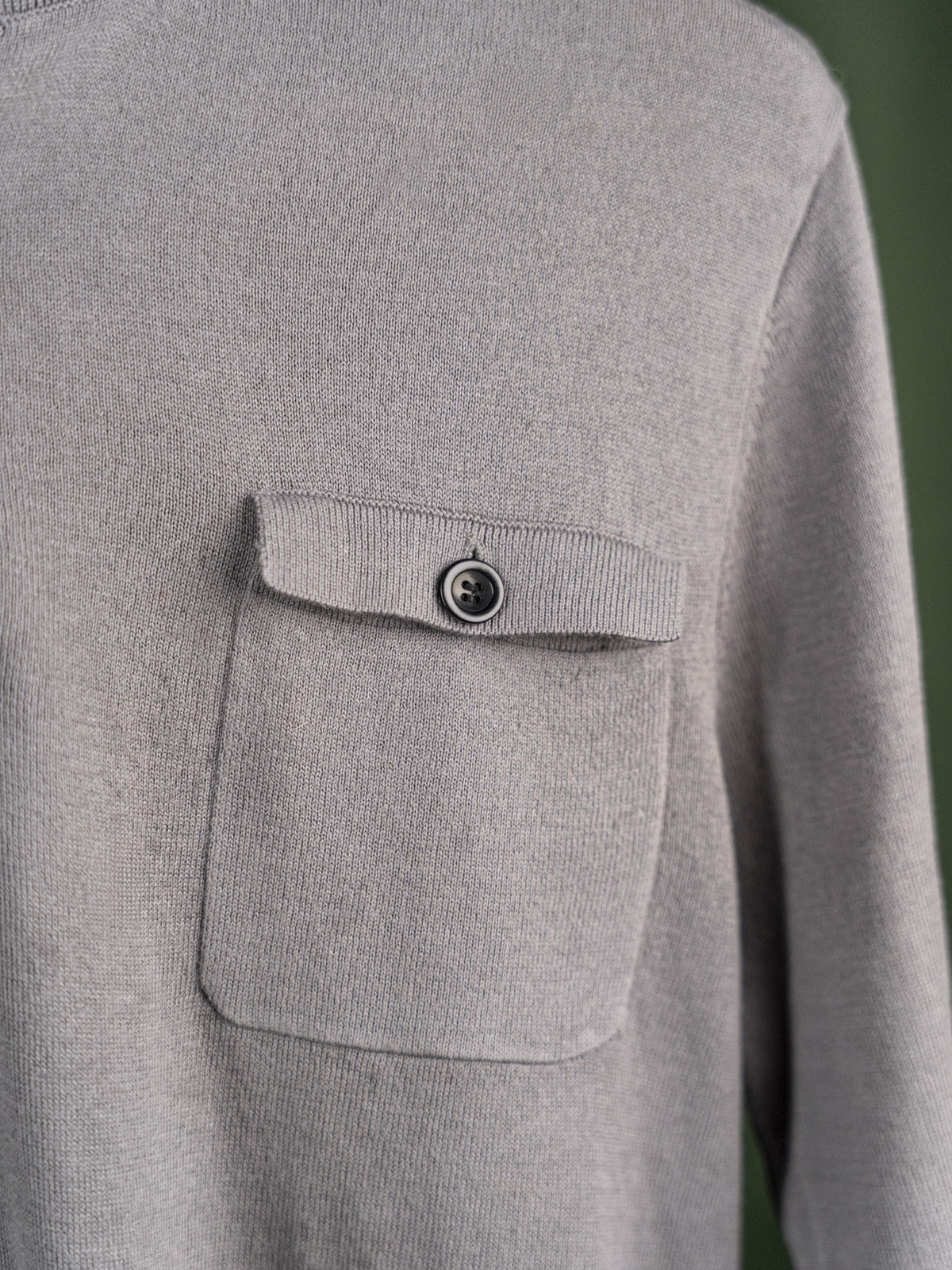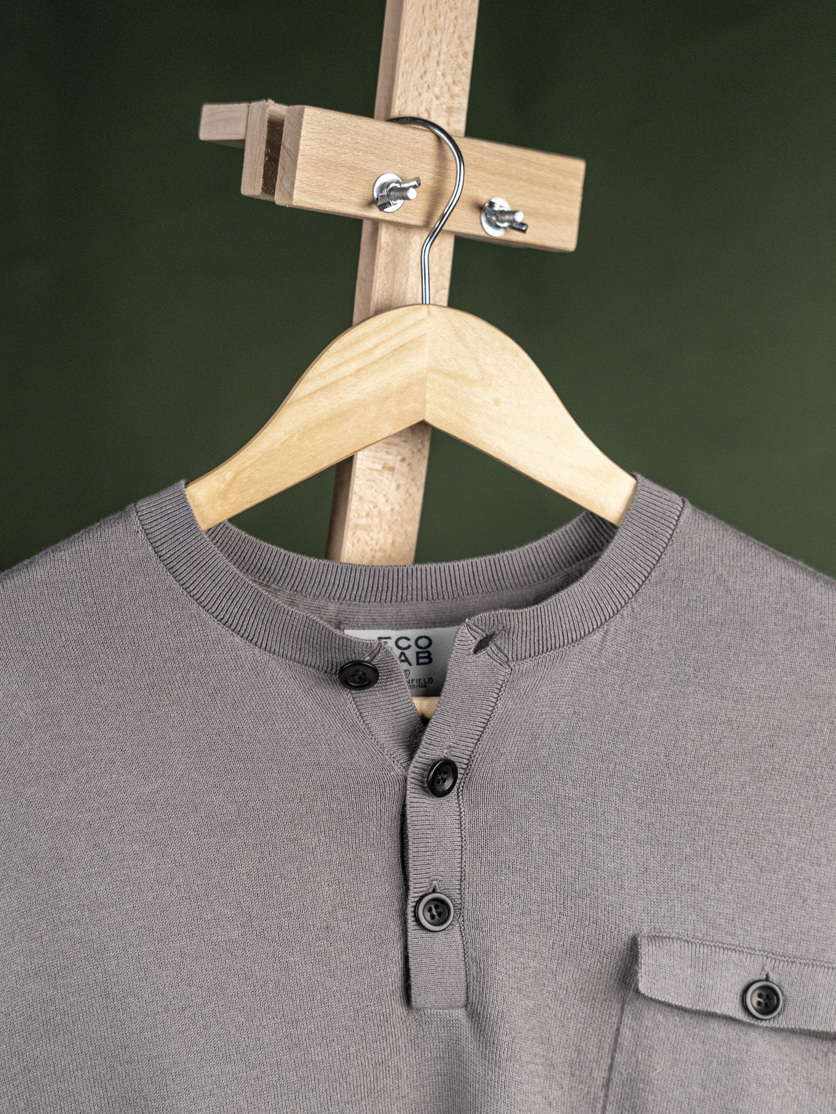 Cottonfield szary sweter męski henley z kieszonką r. S