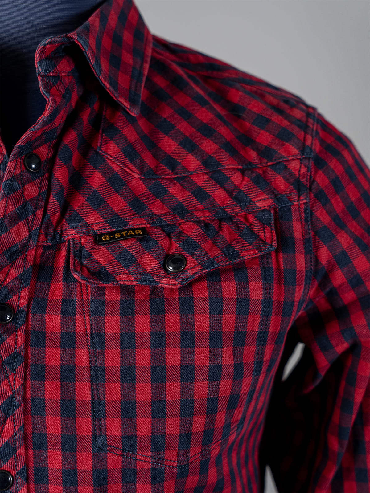 Denimowa westernowa koszula w bordowo-granatową kratkę vichy G-star RAW r. XS
