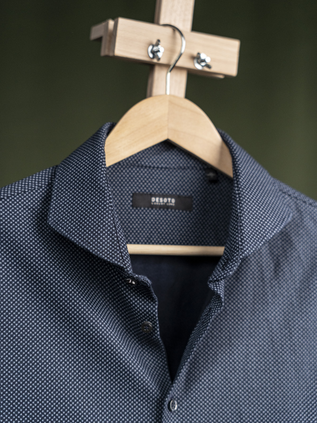 Desoto granatowa męska koszula w mikrowzór z kołnierzem włoskim r. 43