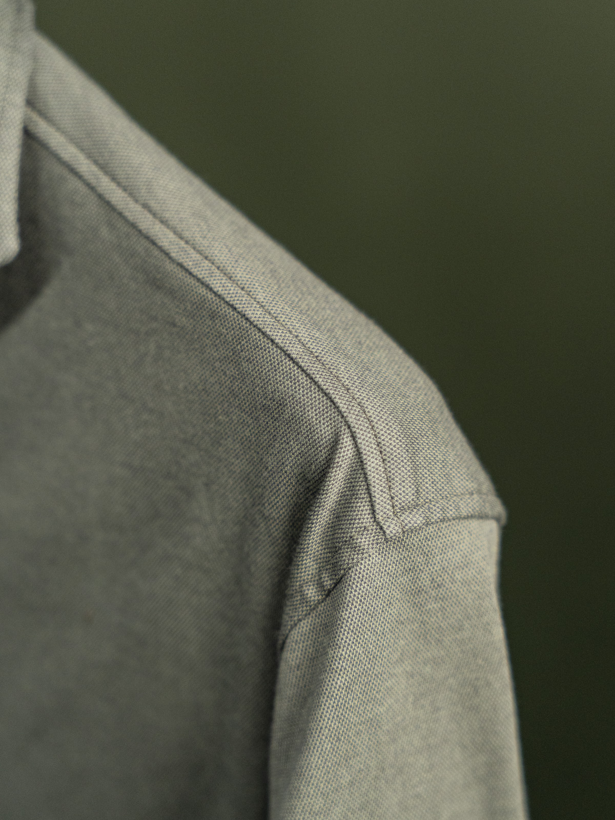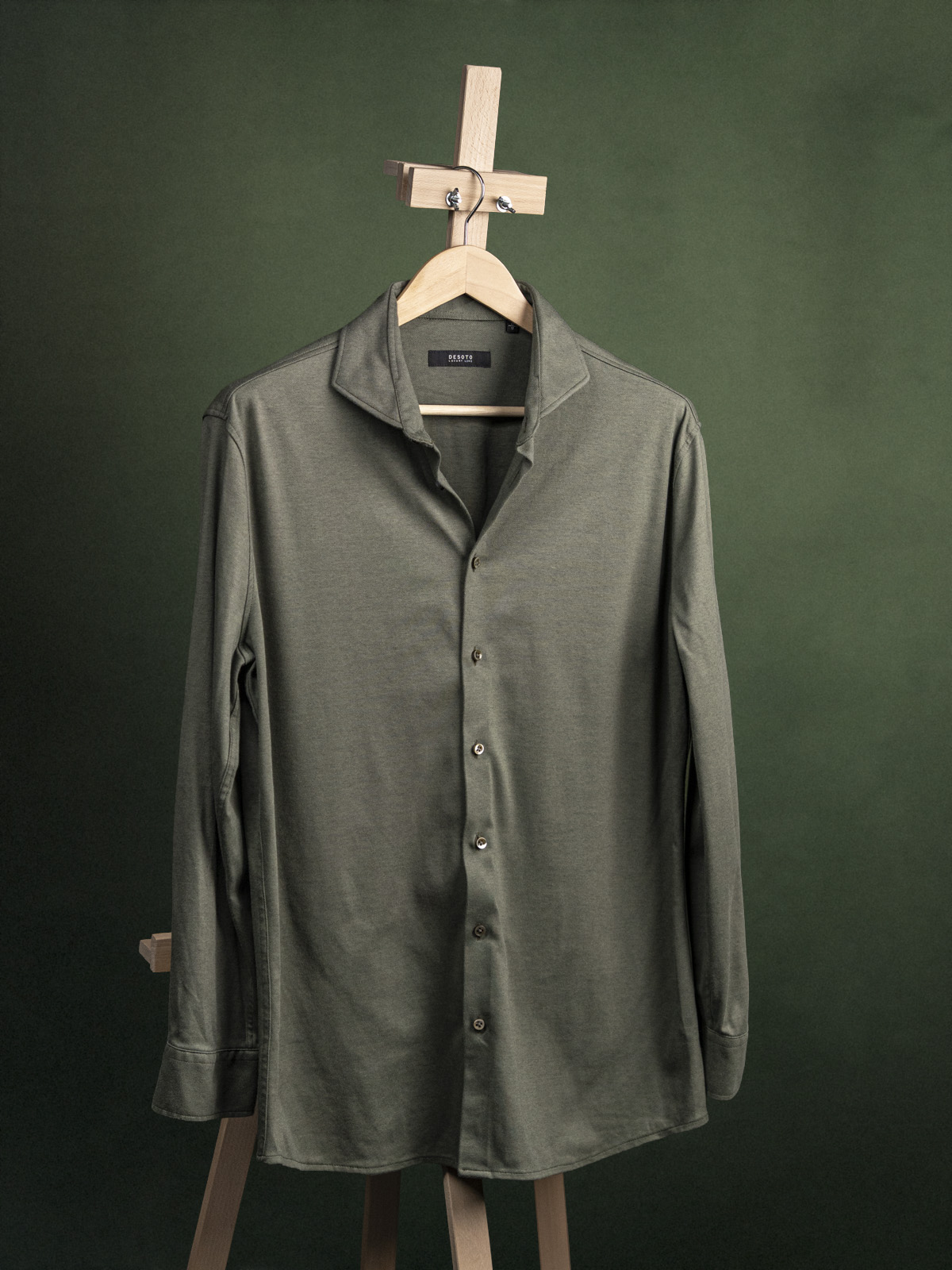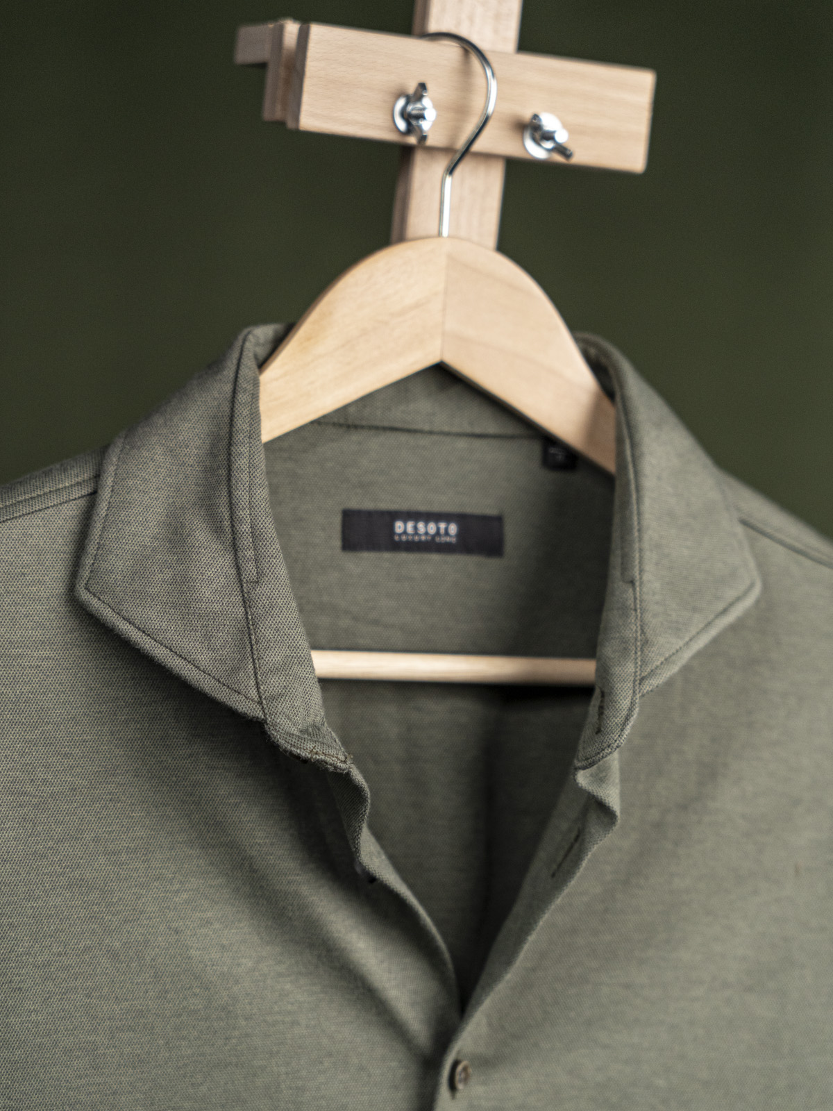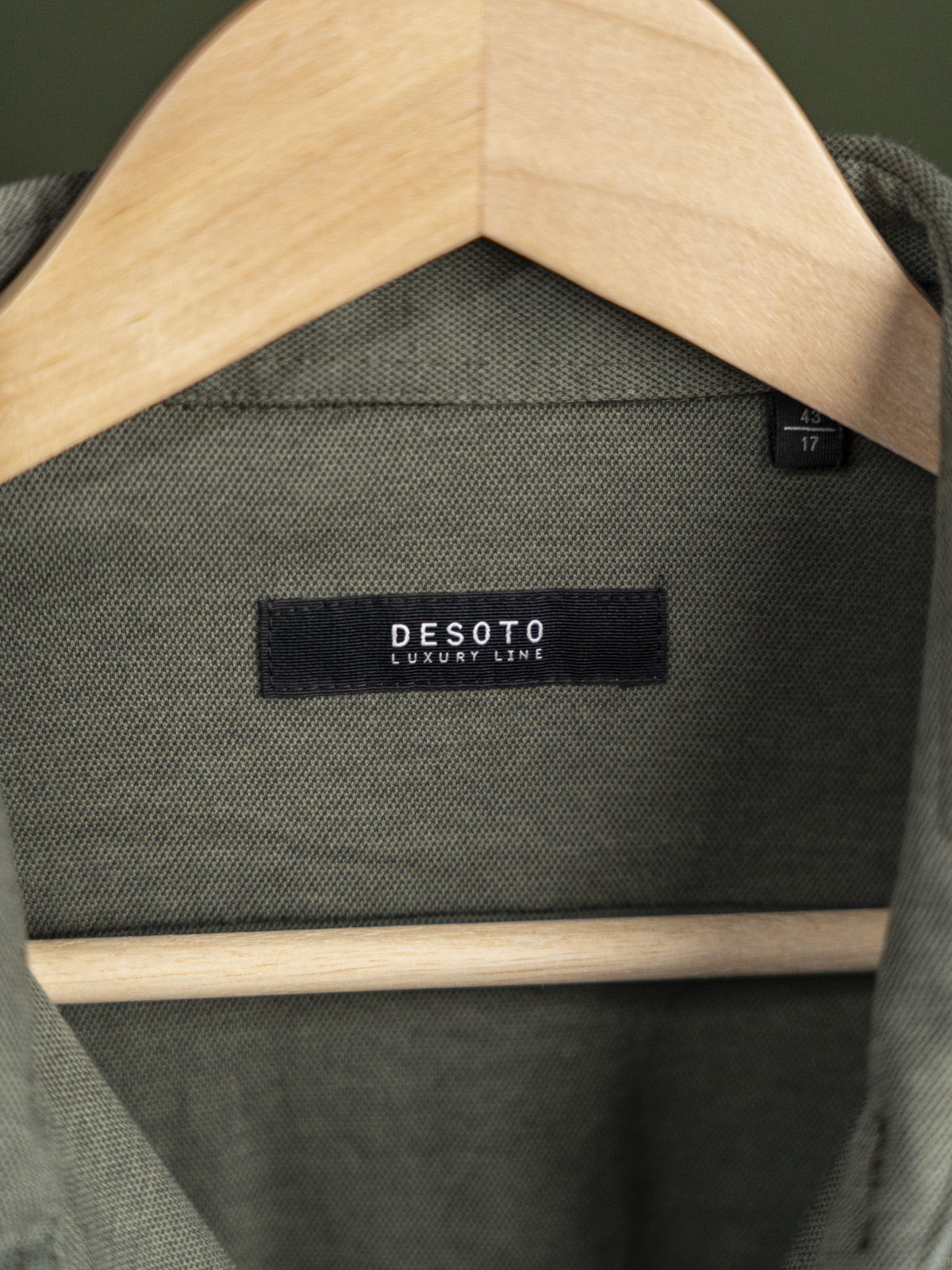 Desoto oliwkowa męska koszula dzianinowa z kołnierzem włoskim r. 43
