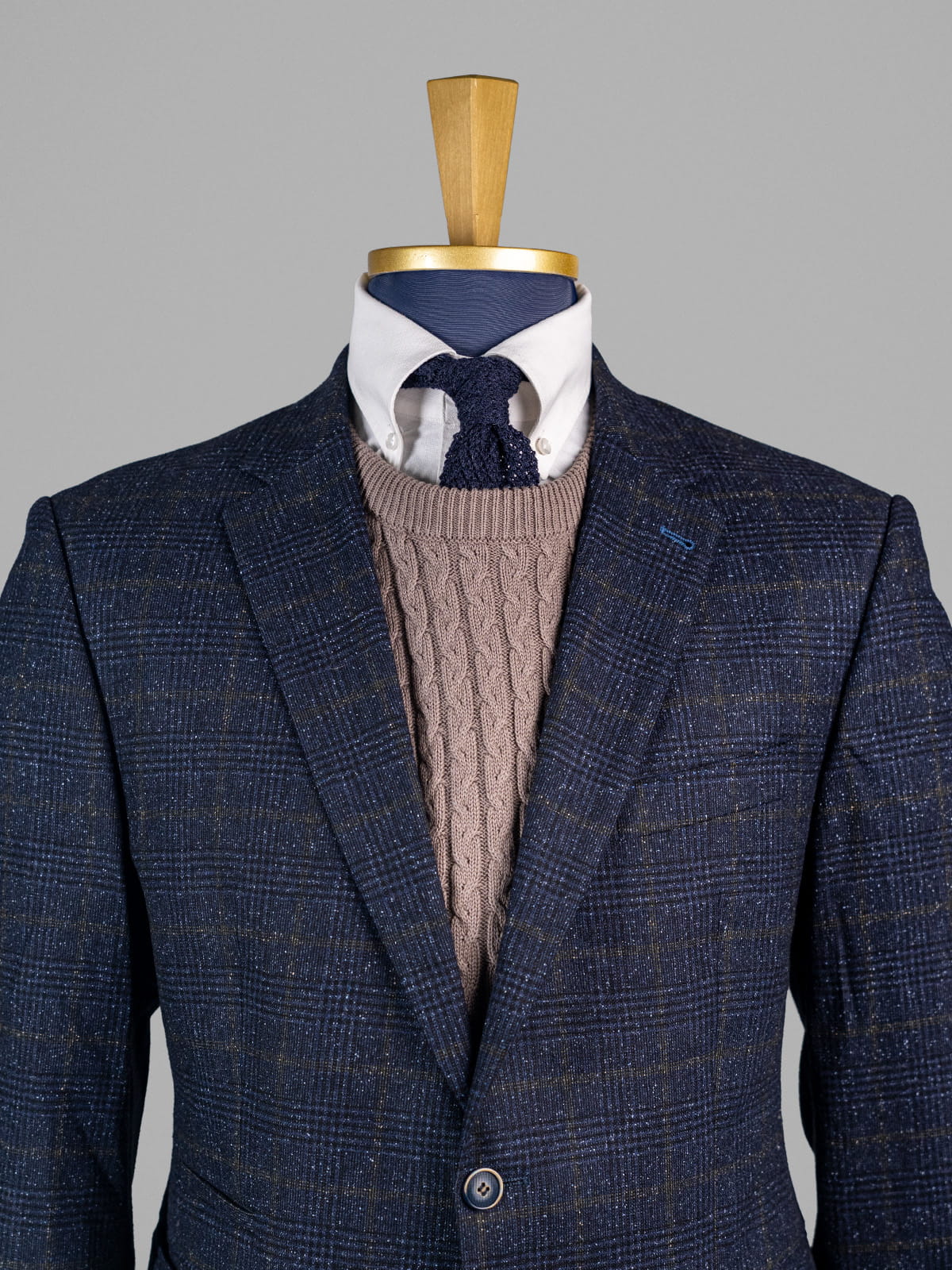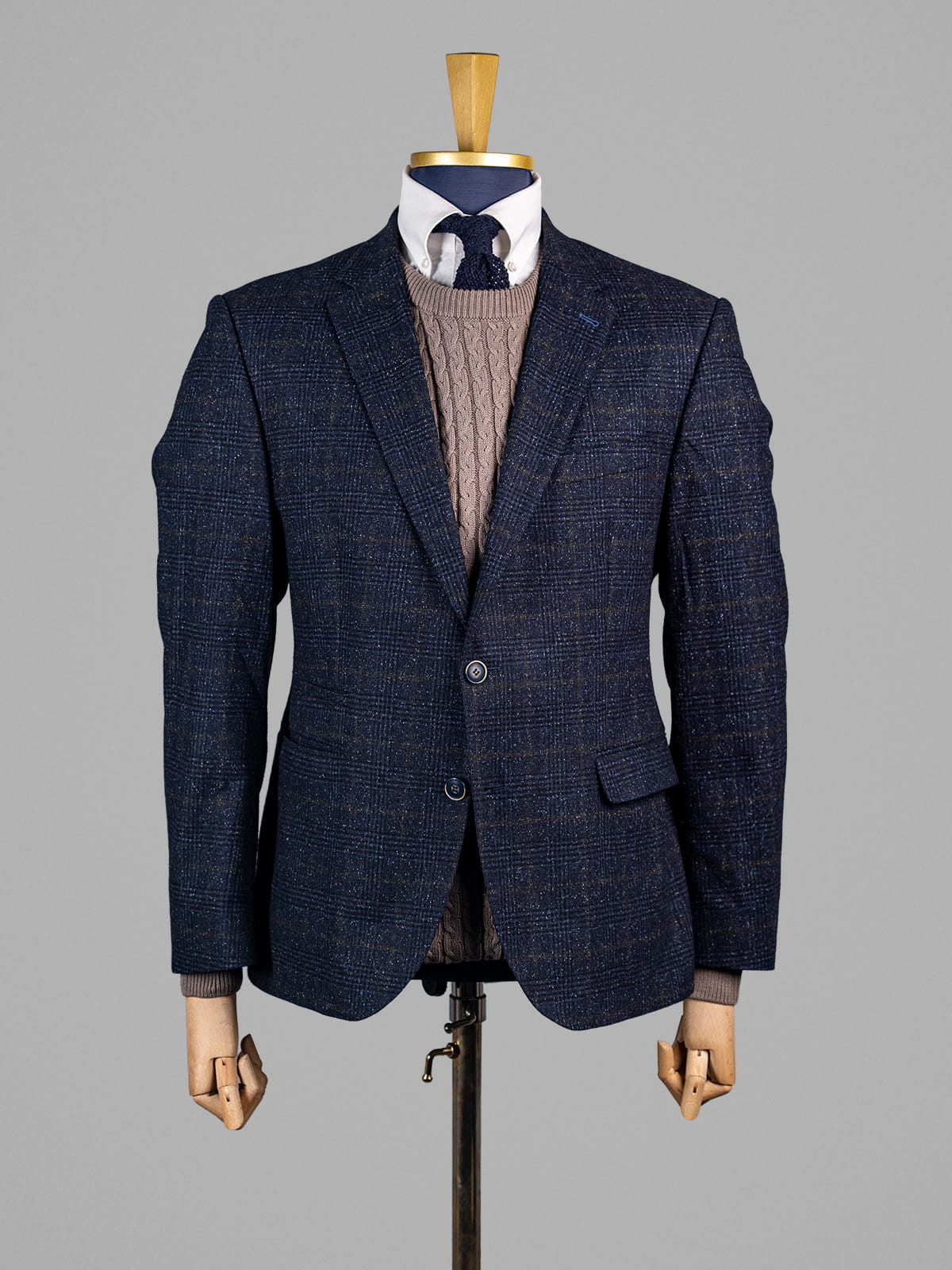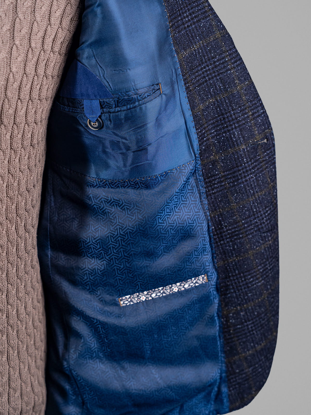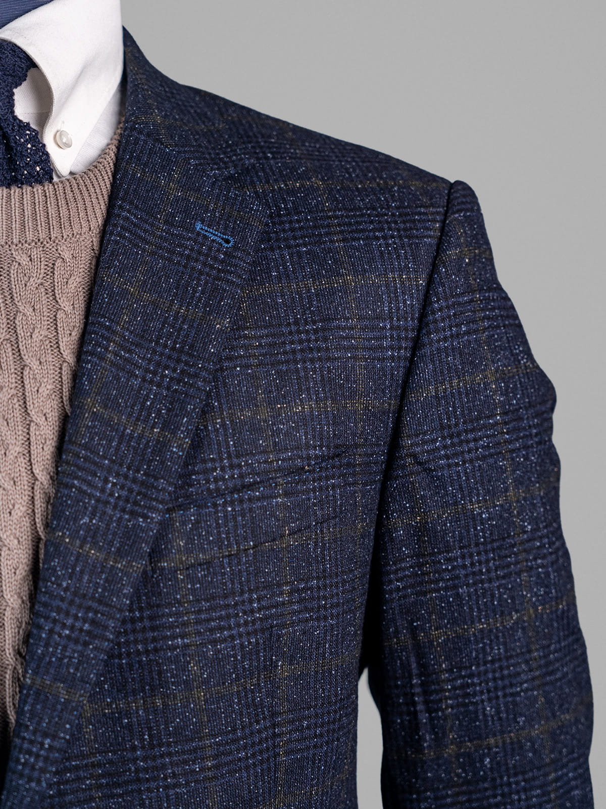 Digel granatowa melanżowa marynarka męska w delikatną kratę z zielonym akcentem r. 54