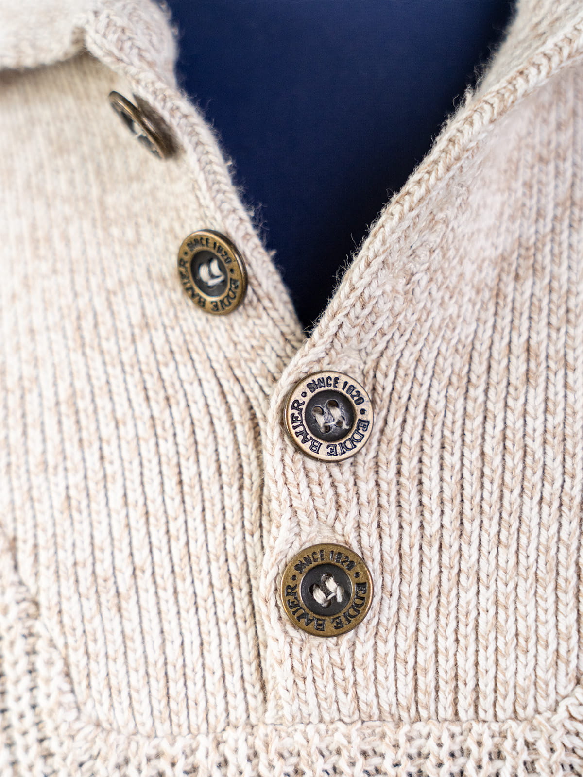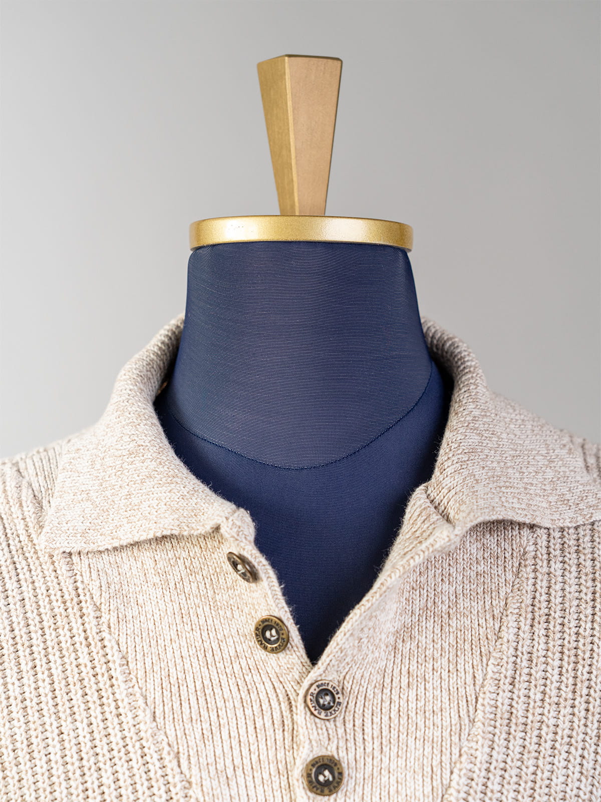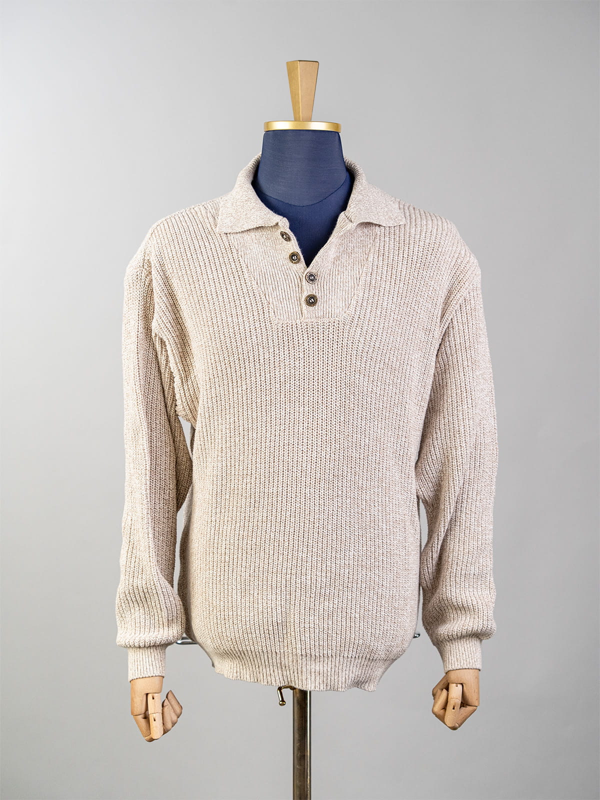 Ten sweter męski krojem nawiązuje do knitwearu popularnego w połowie XX wieku, dzięki czemu idealnie wpisuje się w estetykę vintage. Kołnierz polo zapinany na guziki to ciekawy detal, nadający wyjątkowości. Kremowy kolor sprawia, że sweter jest bardzo uniwersalny i łatwy w stylizowaniu.