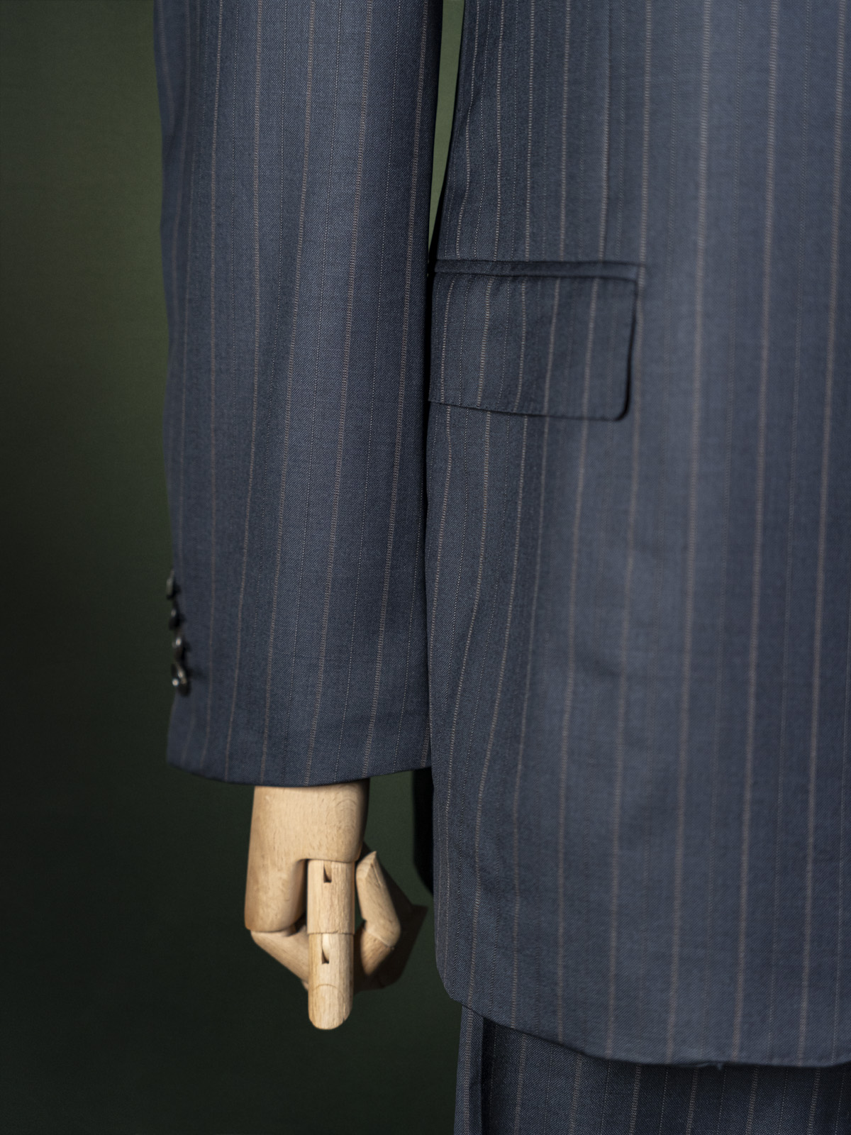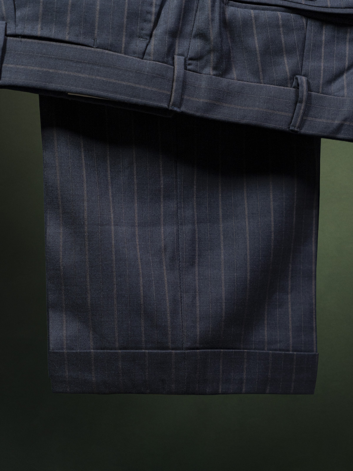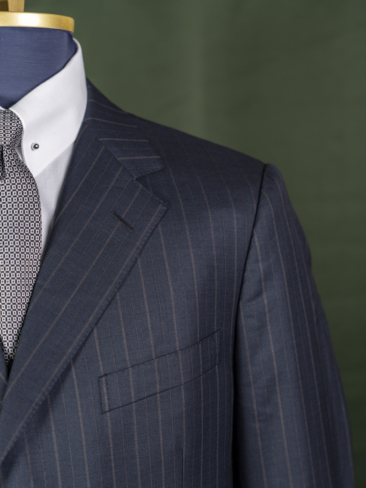 Ermenegildo Zegna granatowy garnitur męski na trzy guziki w brązowy prążek r. 56 long