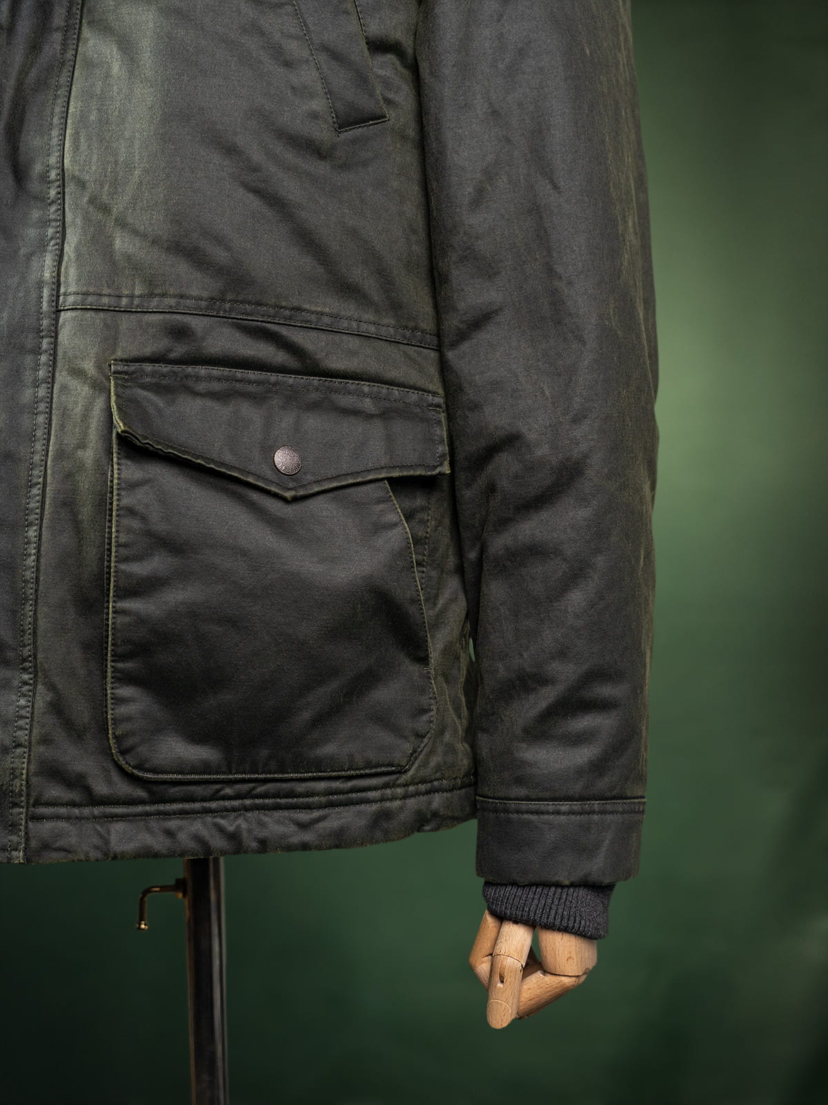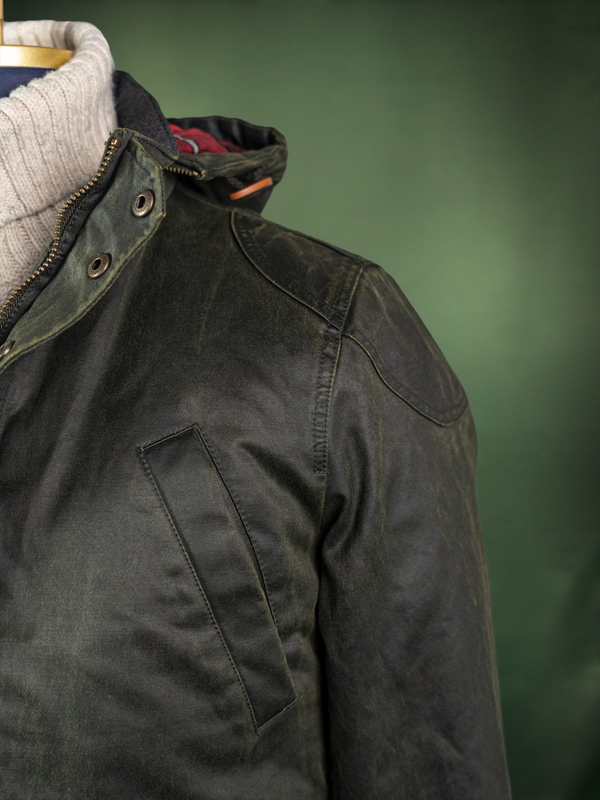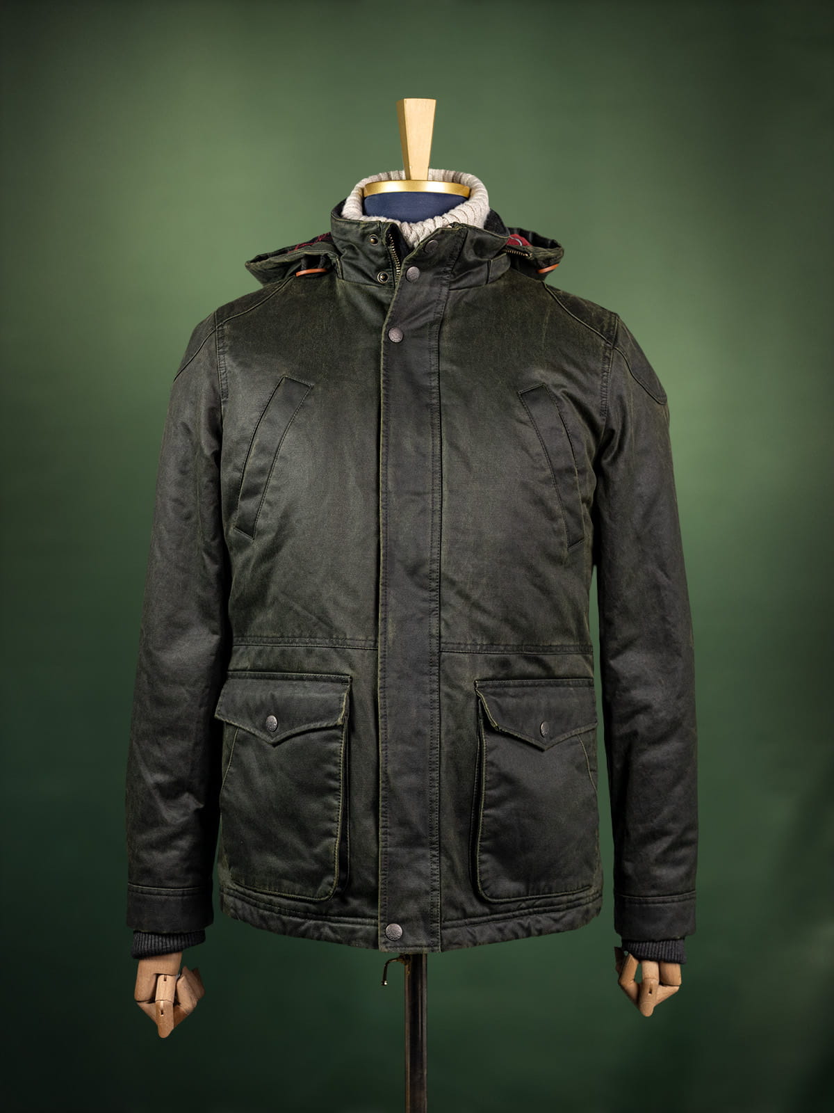 Fat Face NOWA ciemnozielona kurtka woskowana męska olejak z kapturem r. M