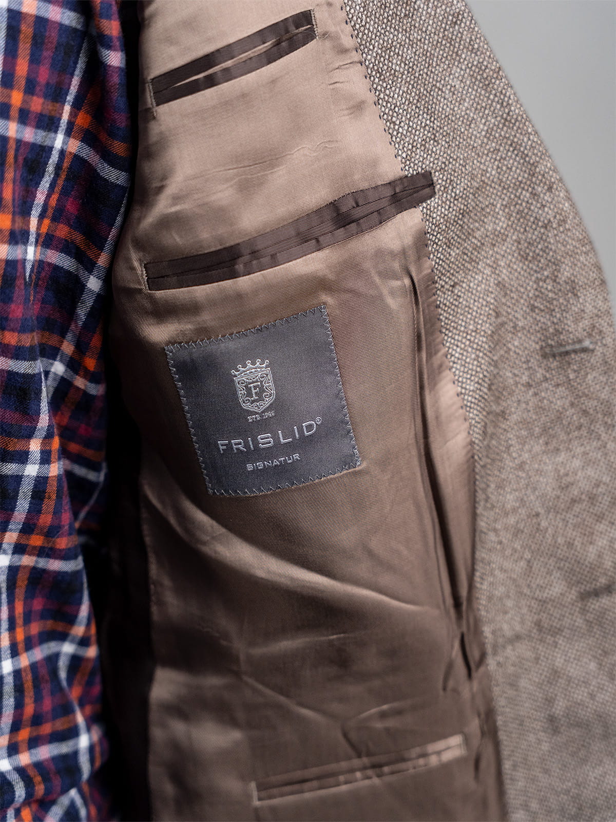 Frislid brązowa melanżowa wełniana marynarka męska r. 54
