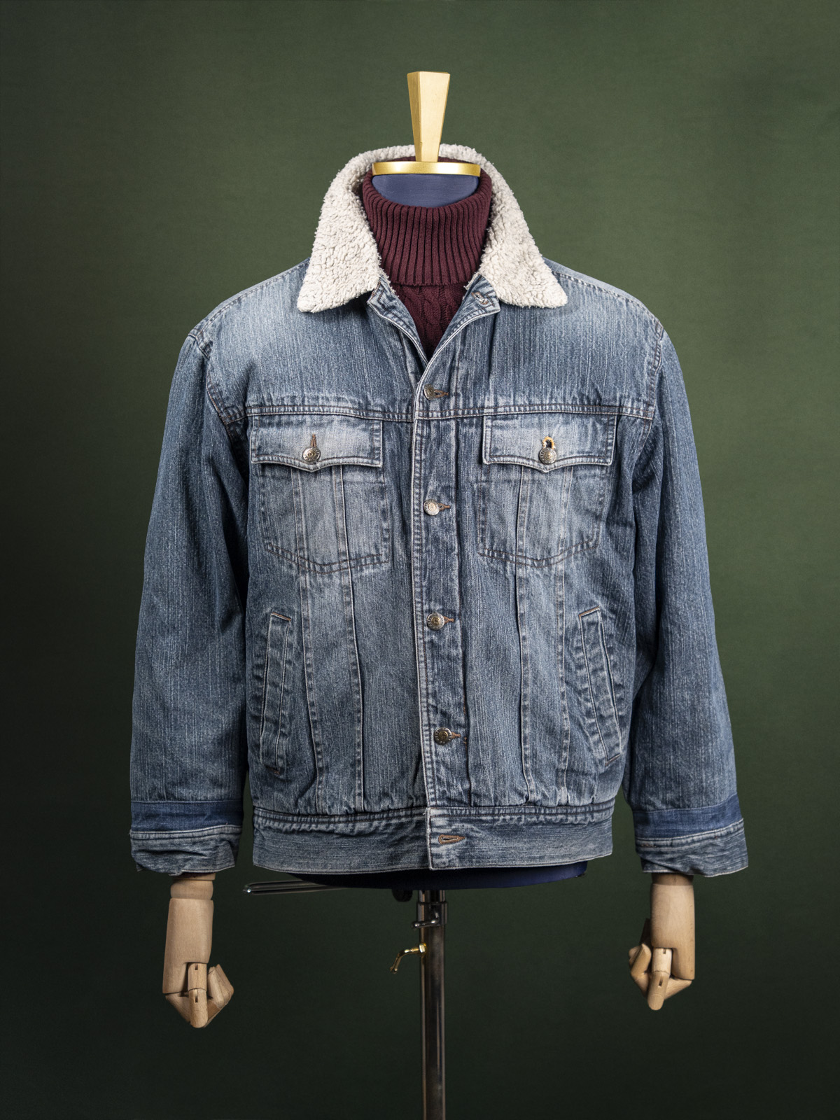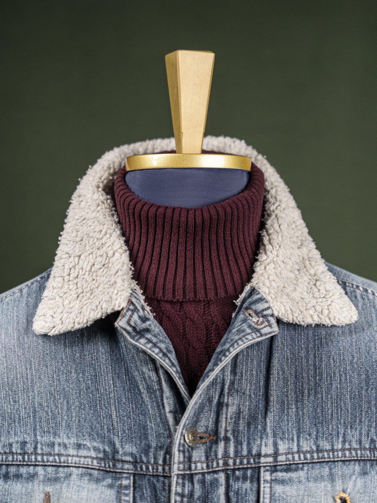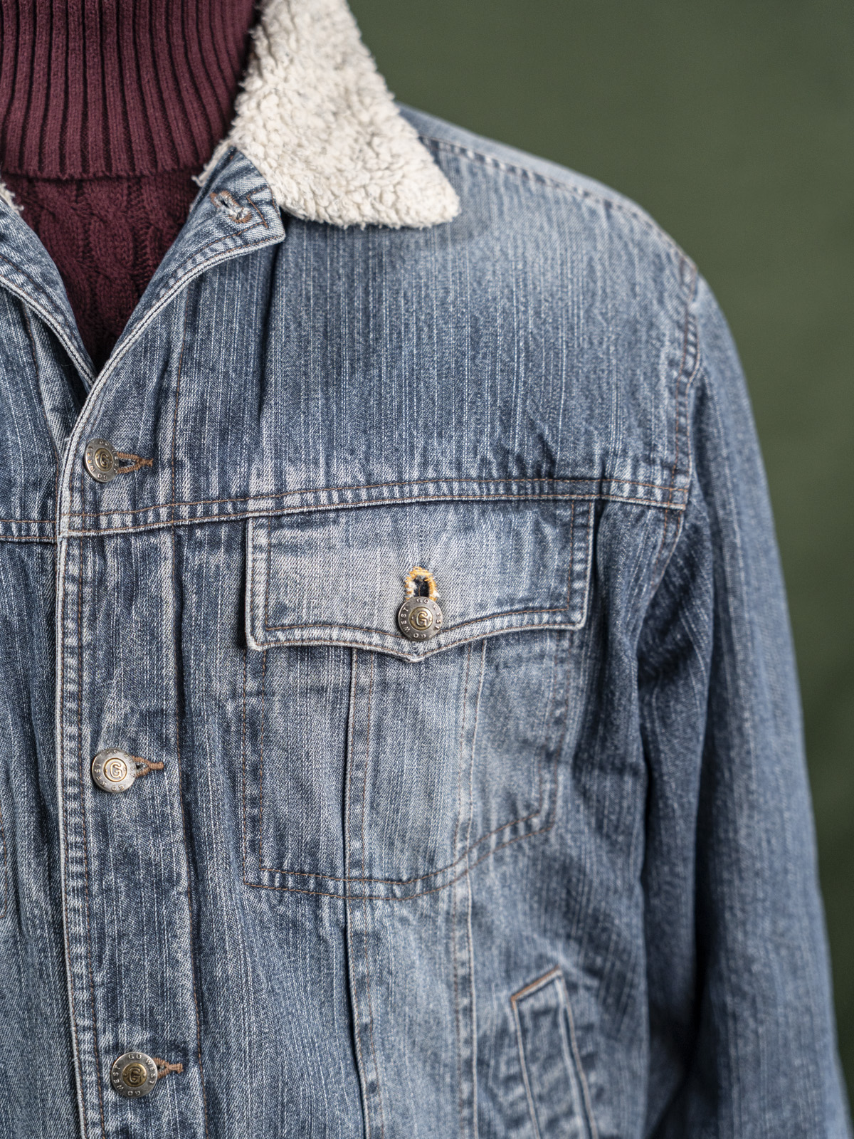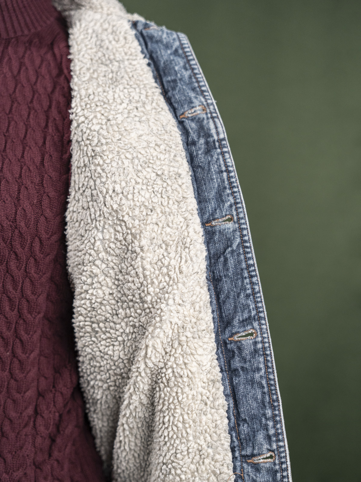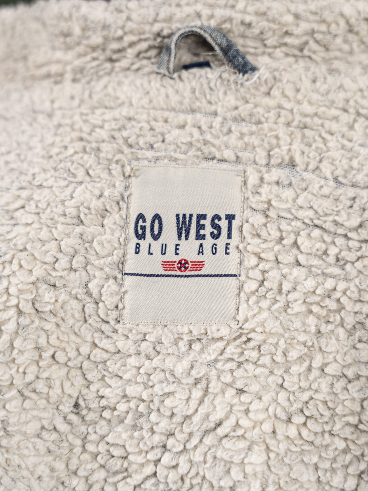 Go West niebieska denimowa kurtka męska sherpa w stylu rugged r. L Short