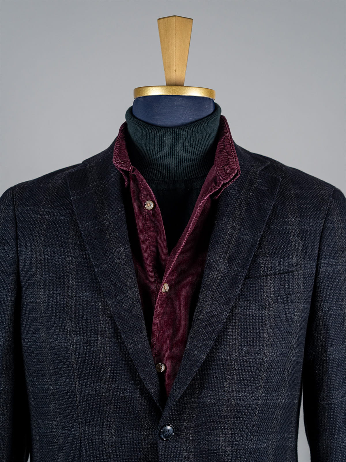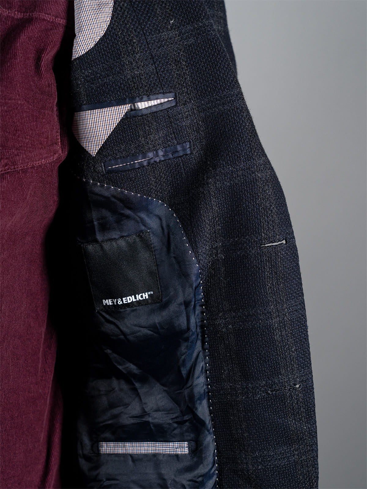 Granatowa fakturowana marynarka w kratę windowpane Mey&Edlich r. 50 Long