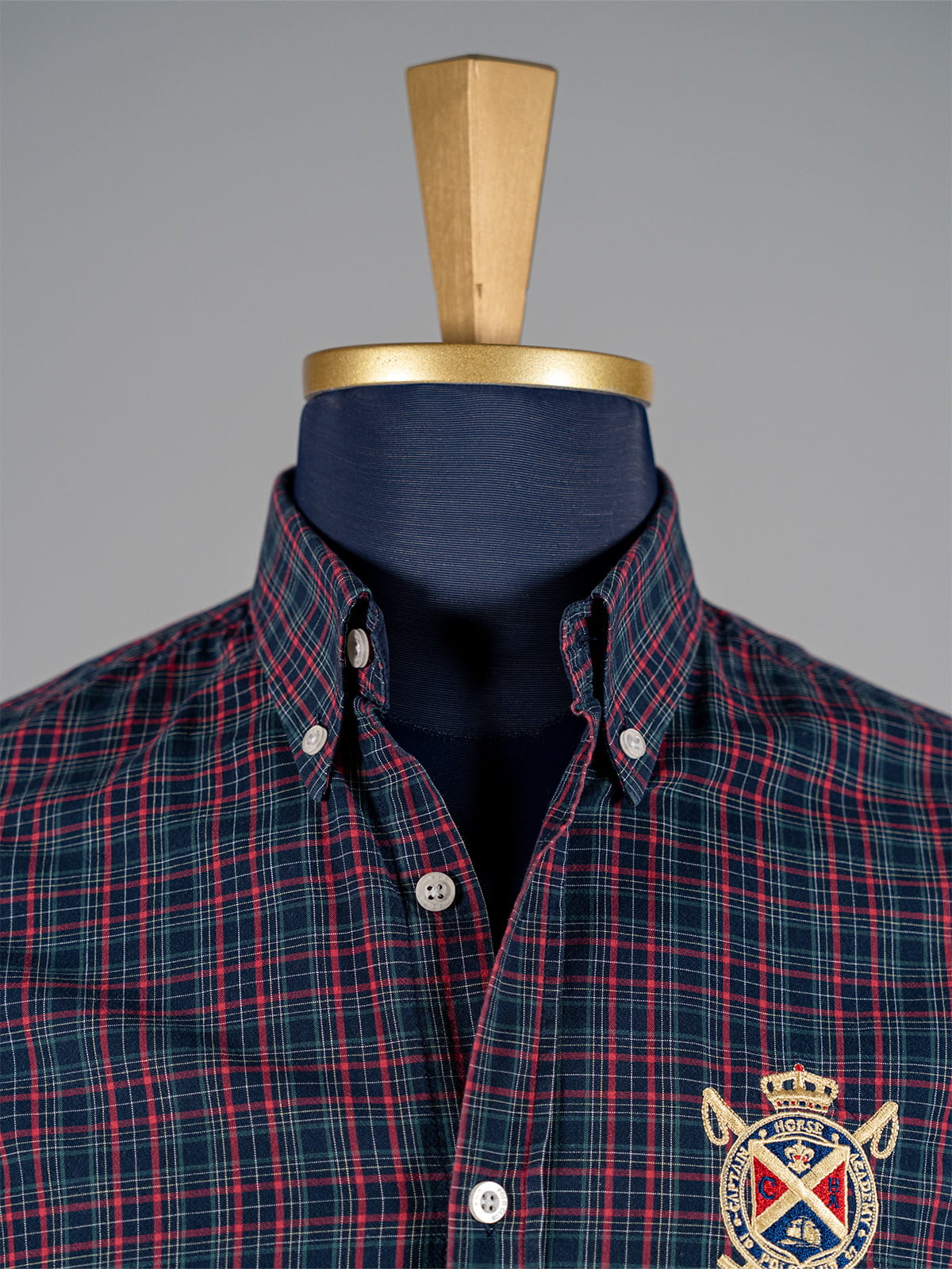 Granatowo-bordowa koszula w kratkę z herbem na piersi Polo Club r. S