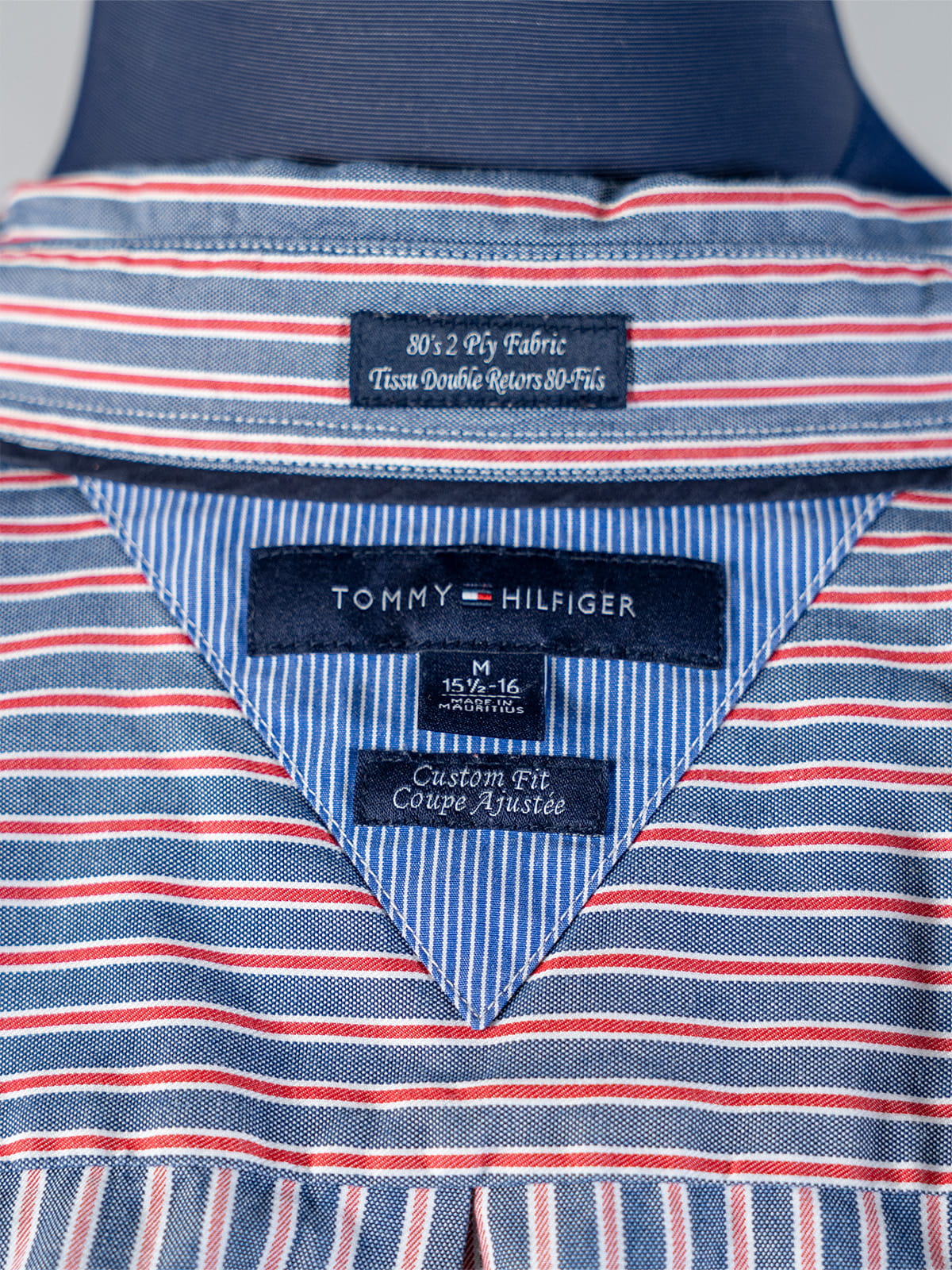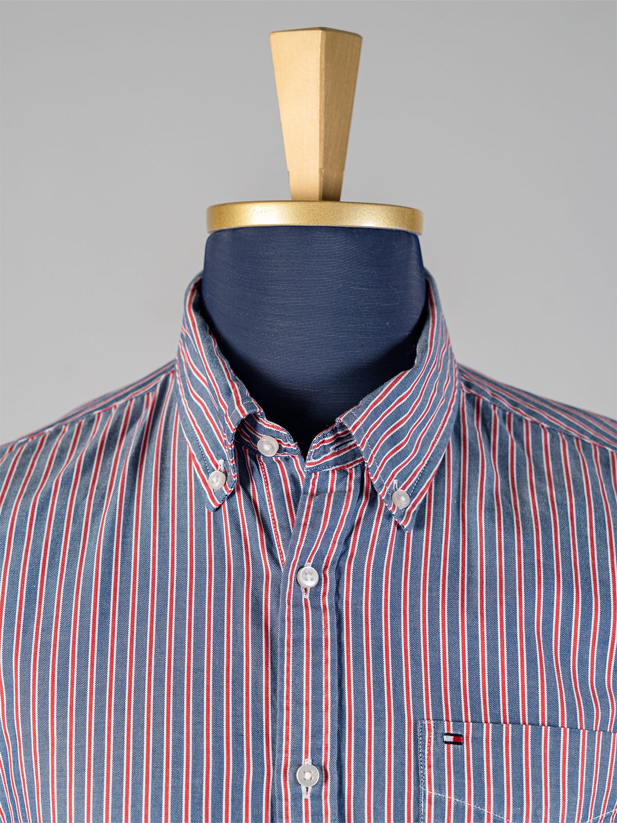 Granatowo-czerwona pasiasta koszula ocbd Tommy Hilfiger r. M