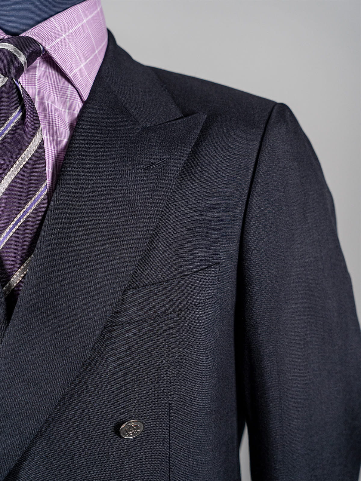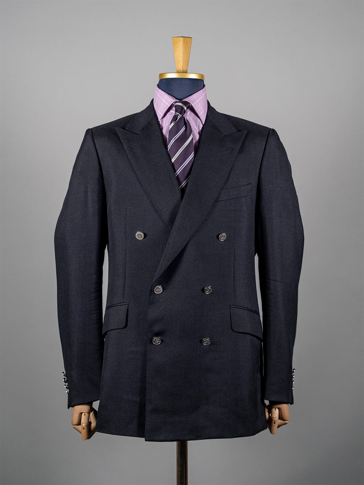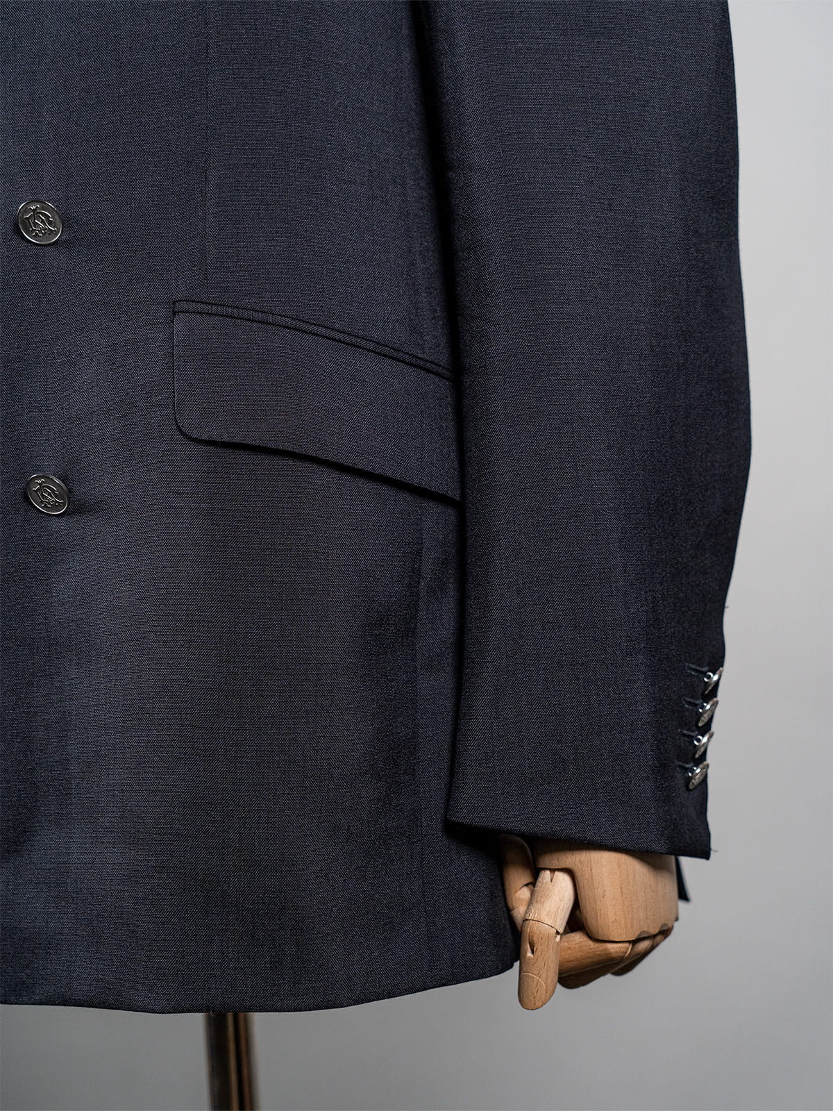 - Konstrukcja: Dwurzędowa z sześcioma guzikami, metalowe guziki, klasyczne proporcje