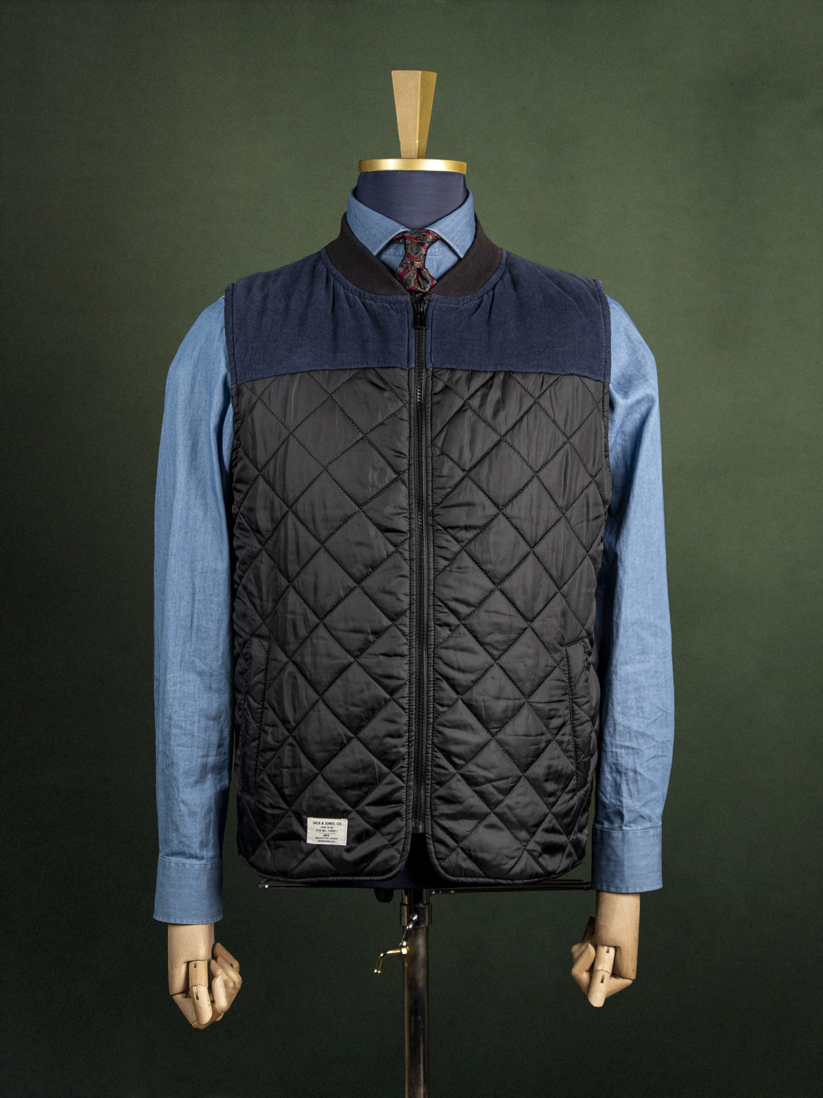 Jack & Jones granatowa kamizelka pikowana ze sztruksową wstawką r. L