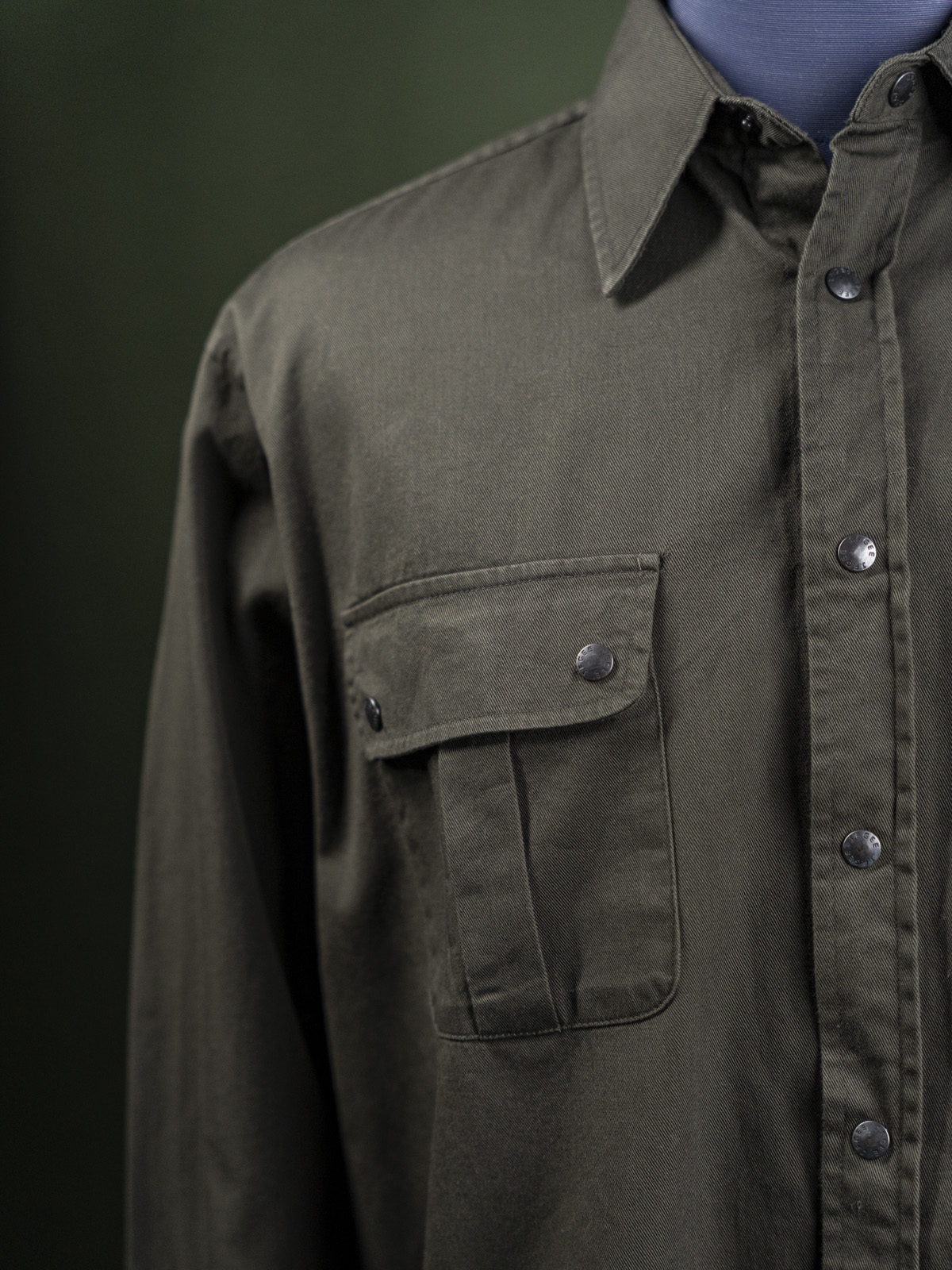 John F. Gee oliwkowa męska koszula na napy z kieszeniami na torsie r. XL