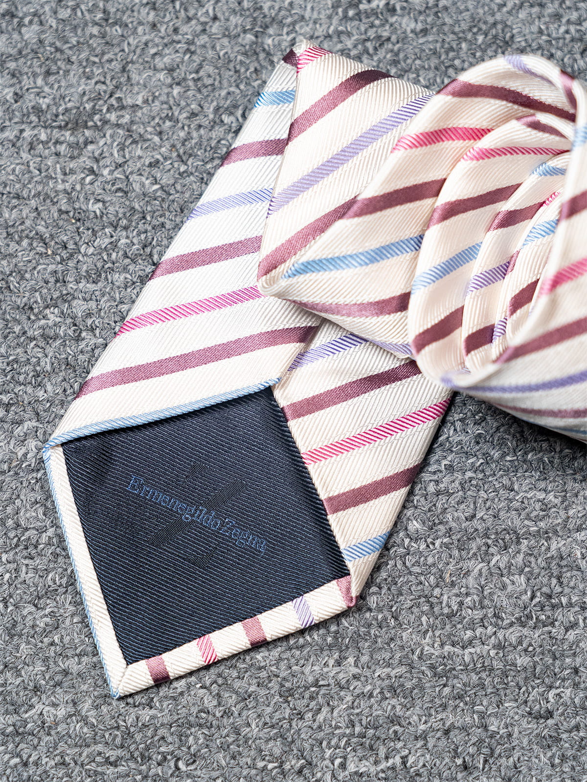 Kremowy regimental w trójkolorowe paski Ermenegildo Zegna