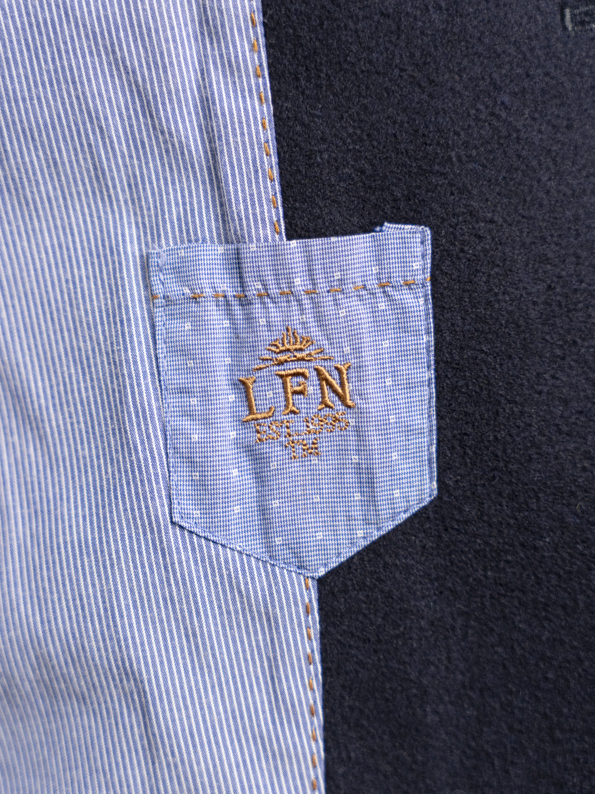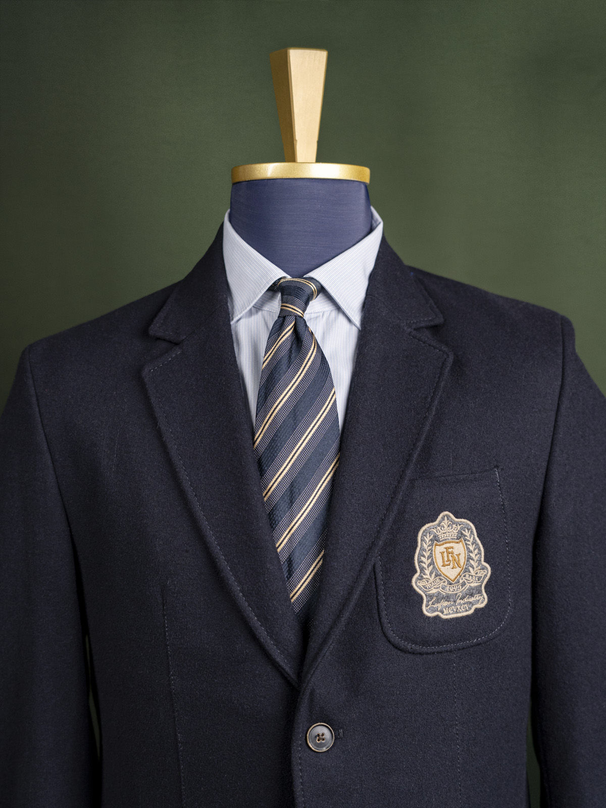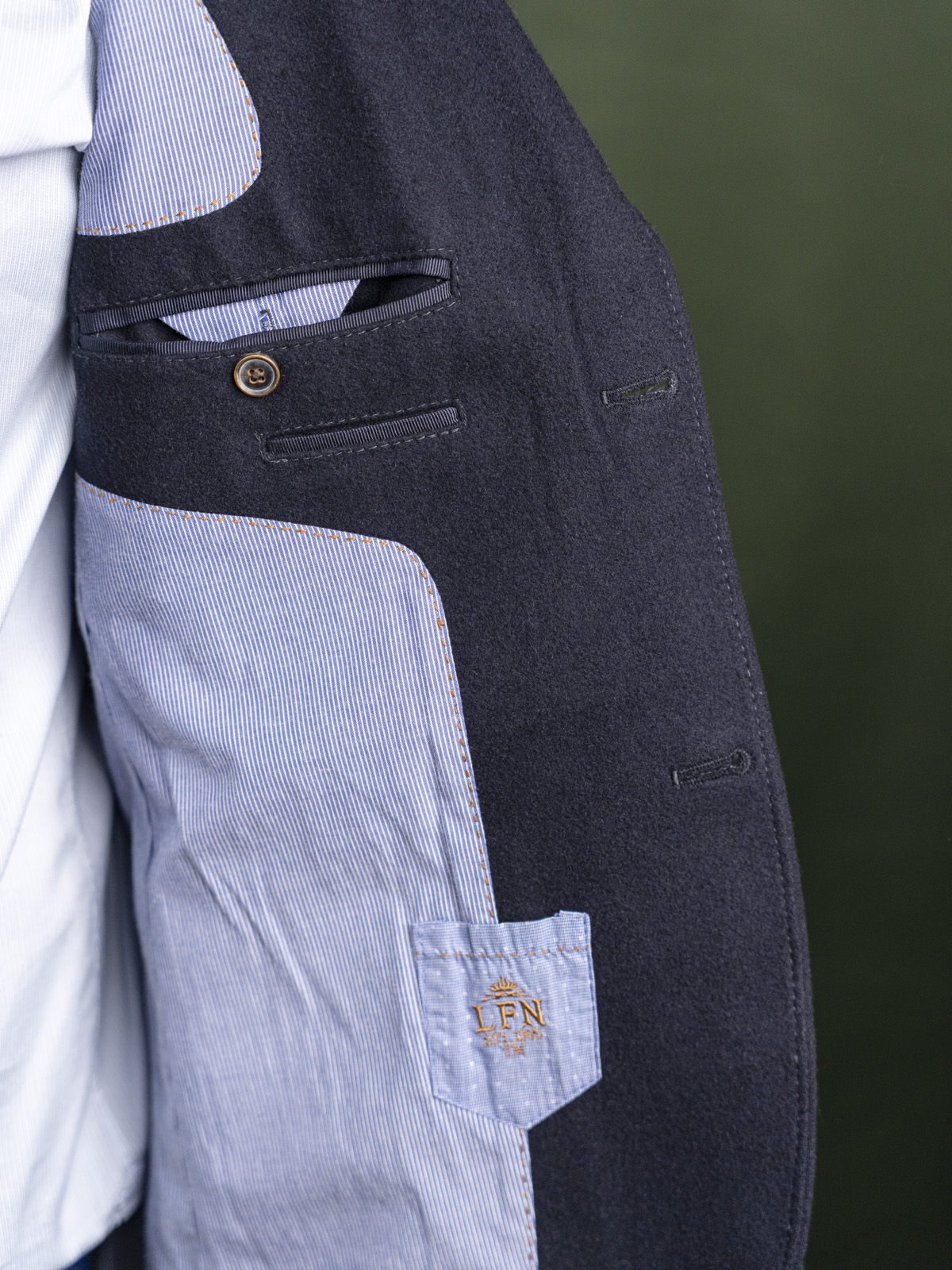 Lufian granatowa męska marynarka collegowa z emblematem r. 50