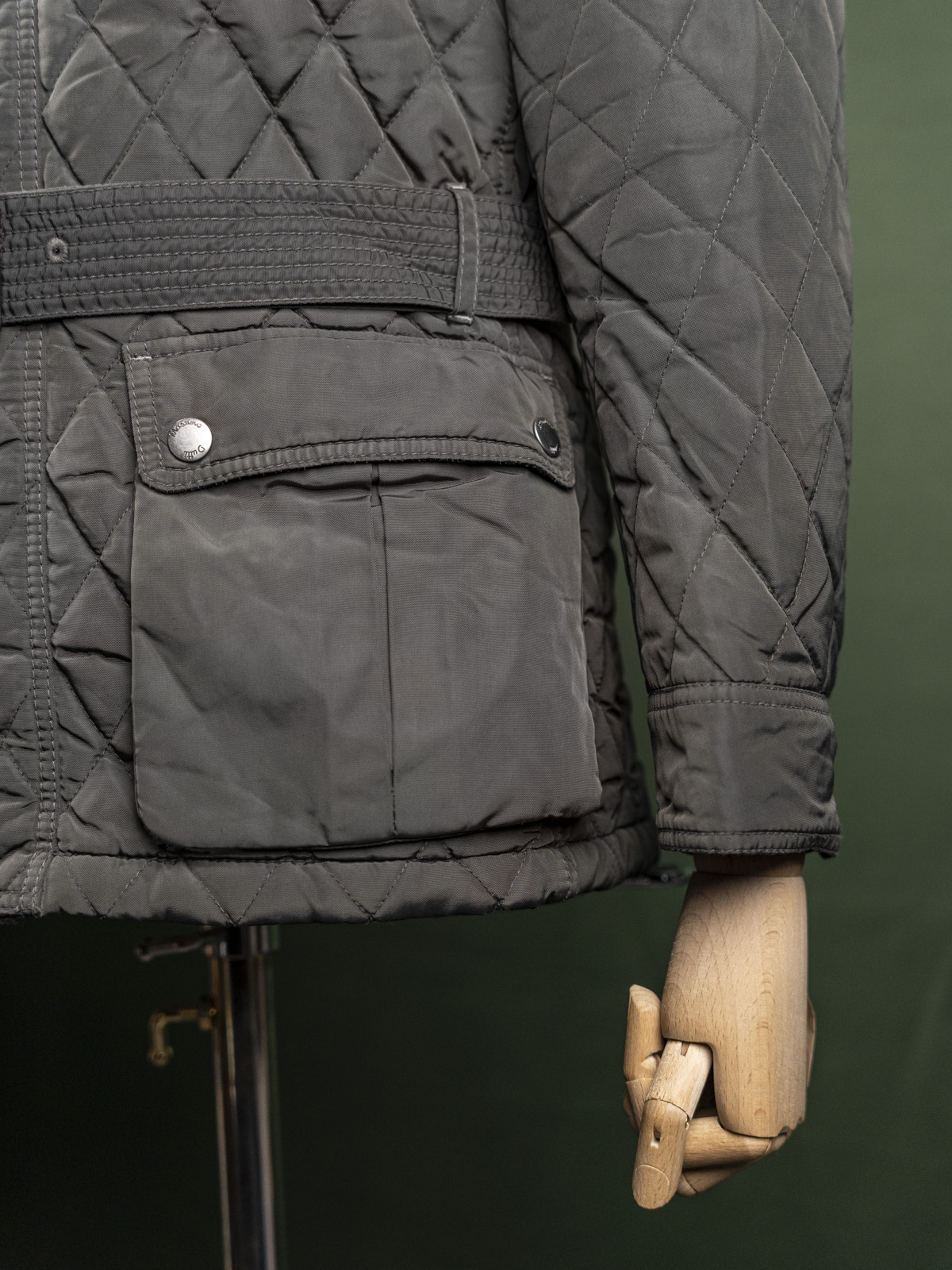 Ta kurtka to świetny wybór na wczesną wiosnę. Posiada wszelką funkcjonalność kurtek pikowanych, których głównym zadaniem jest zapewnić komfort termiczny w zmienną pogodę okresu przejściowego, a jednocześnie wzbogacona jest o rewelacyjne, stylowe i praktyczne dodatki w postaci dużych naszywanych kieszeni, klamry przy kołnierzu oraz przede wszystkim pasa. Warstwa ocieplająca zszyta jest z warstwą wierzchnią charakterystycznymi przeszyciami w kształcie rombów.