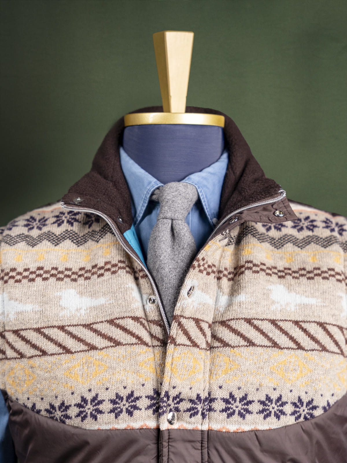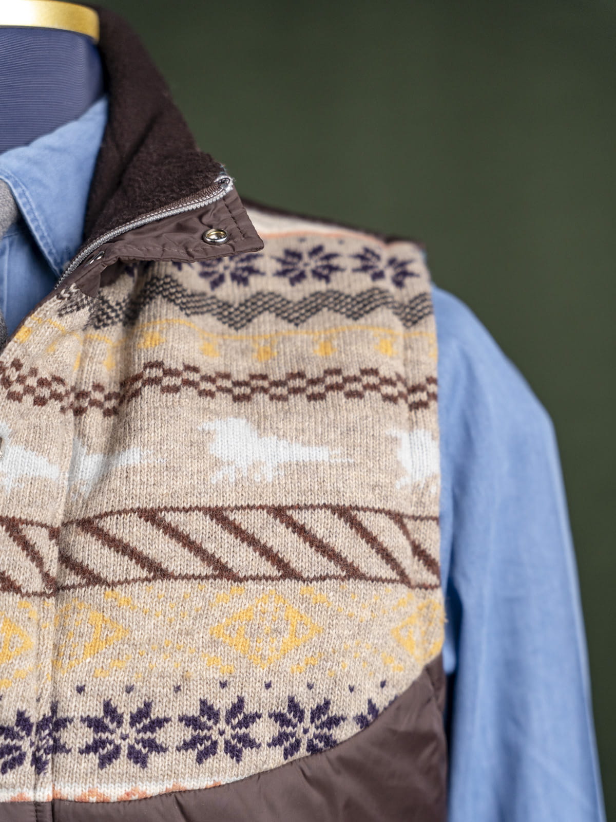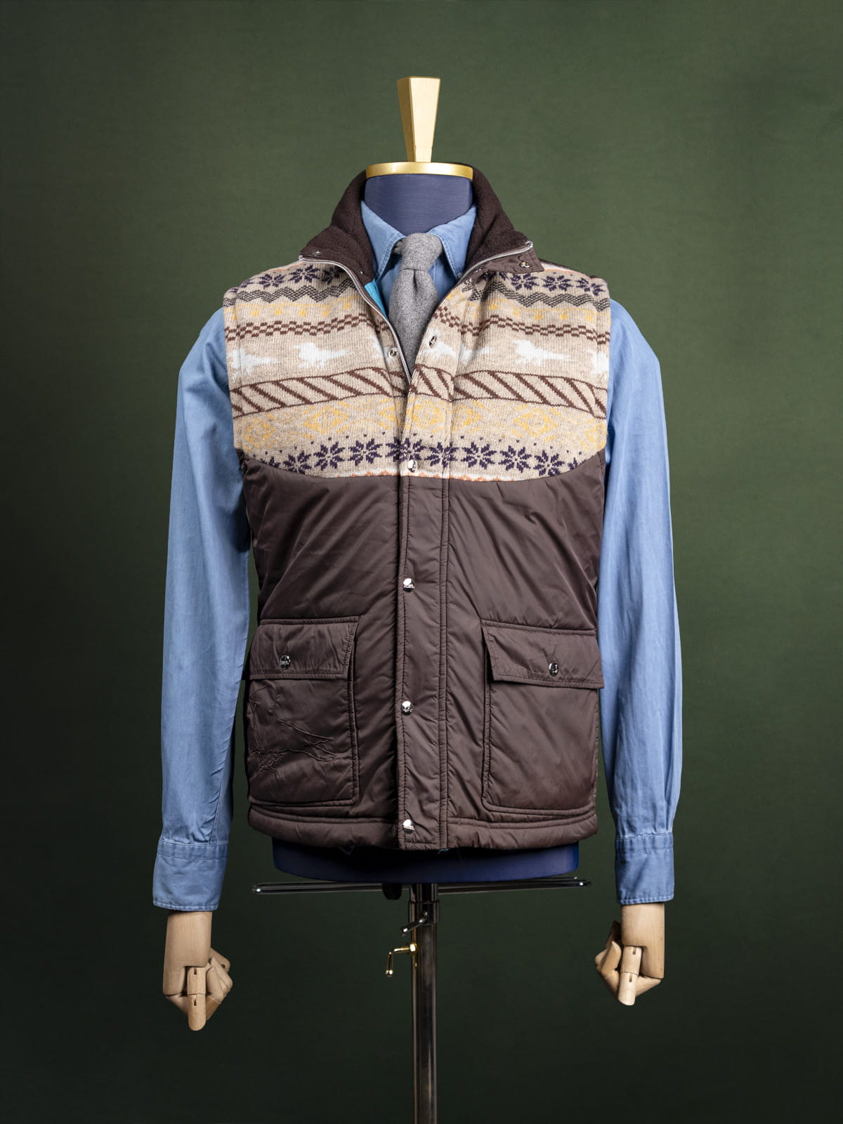 Modern Amusement brązowa kamizelka ocieplana z motywem fair isle r. M