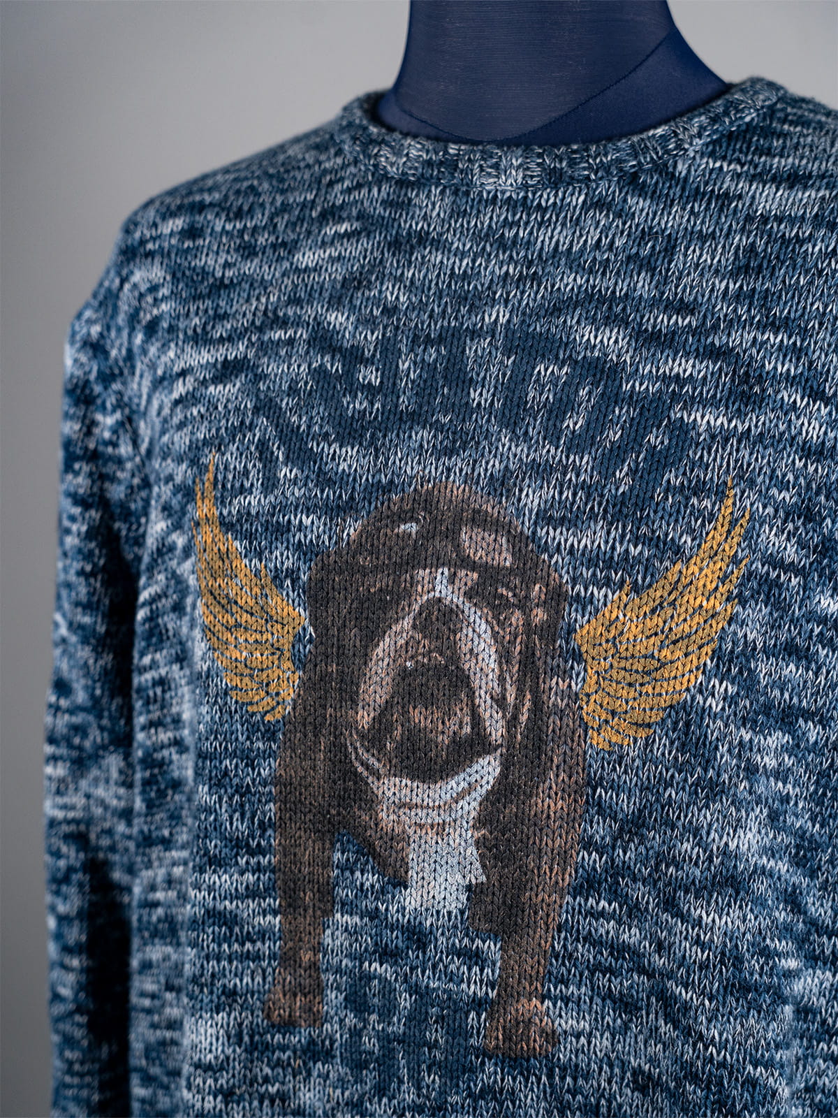 Niebieski melanżowy sweter w buldoga Ragman r. XL