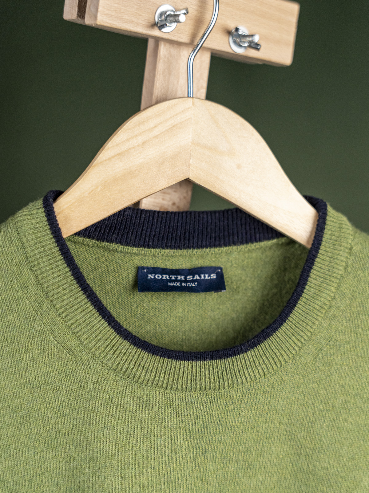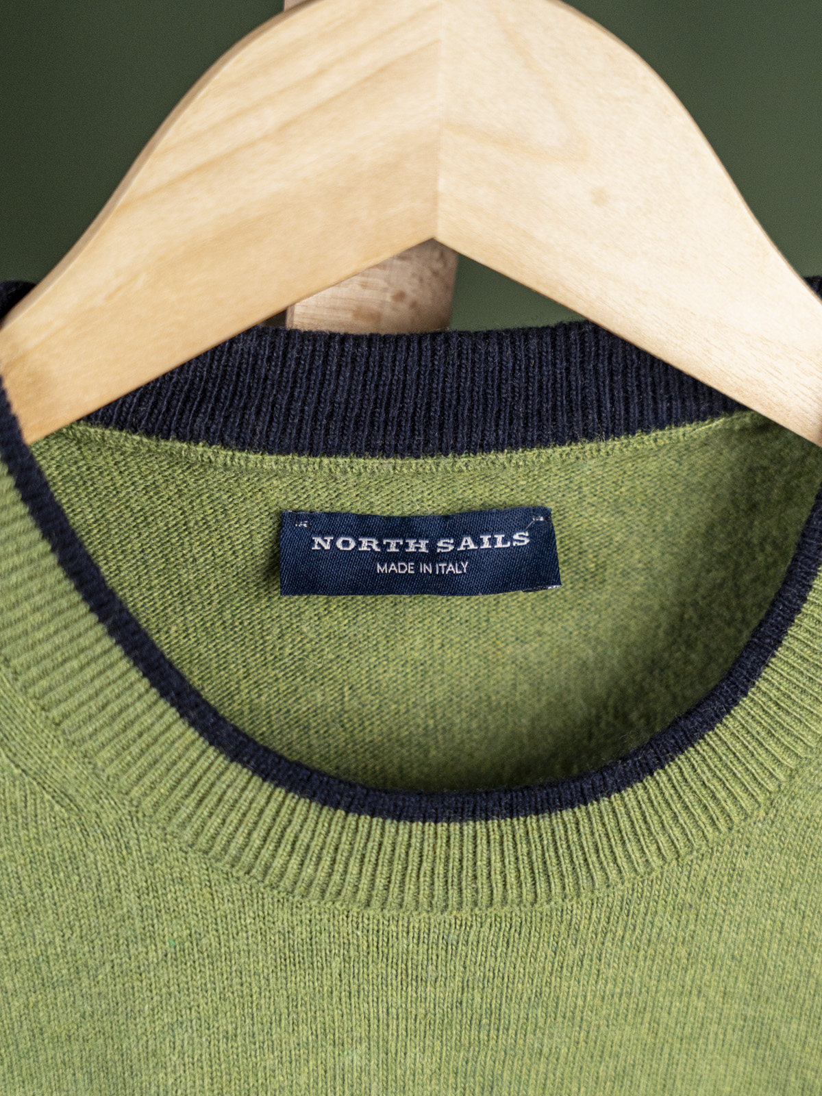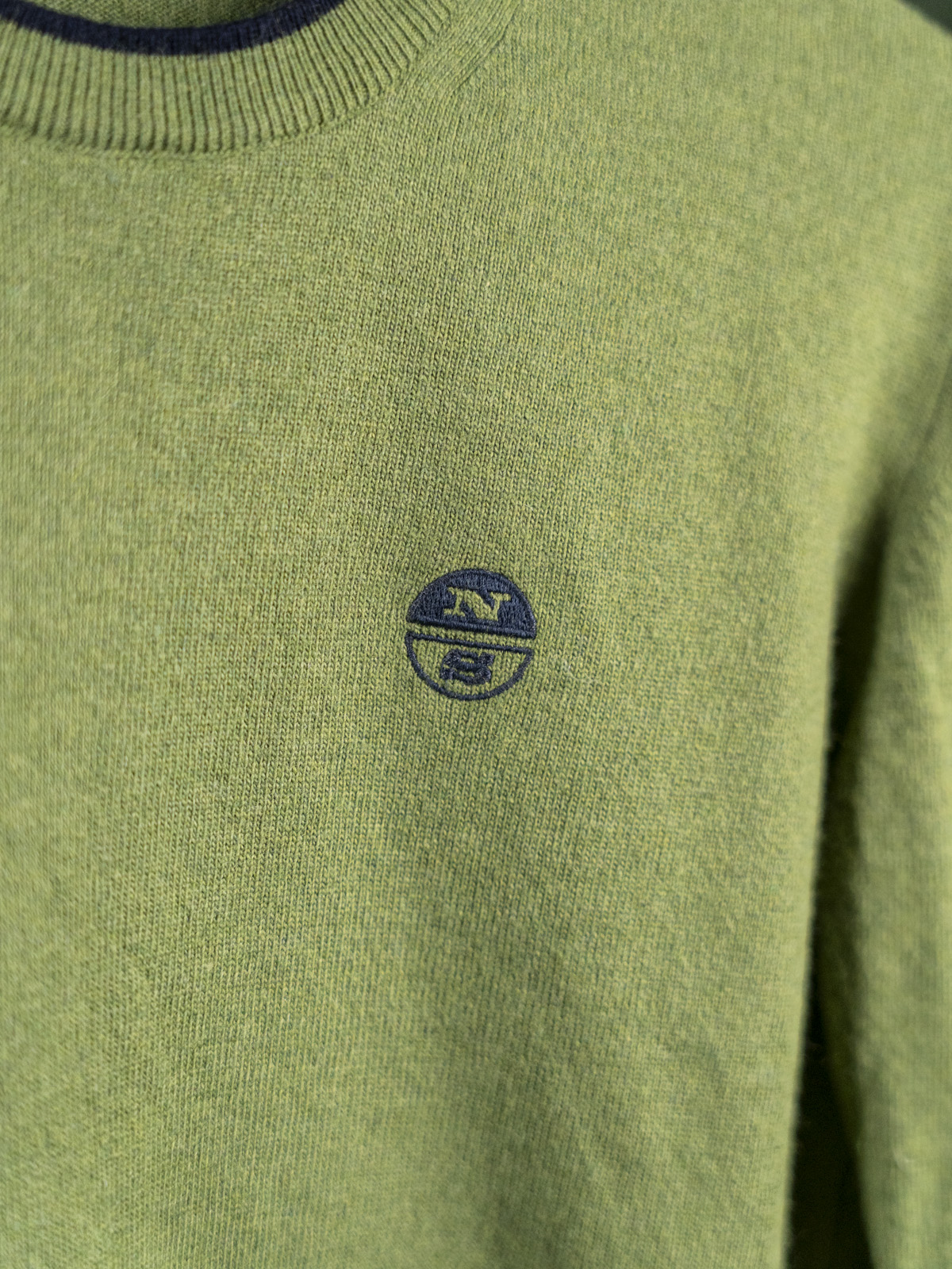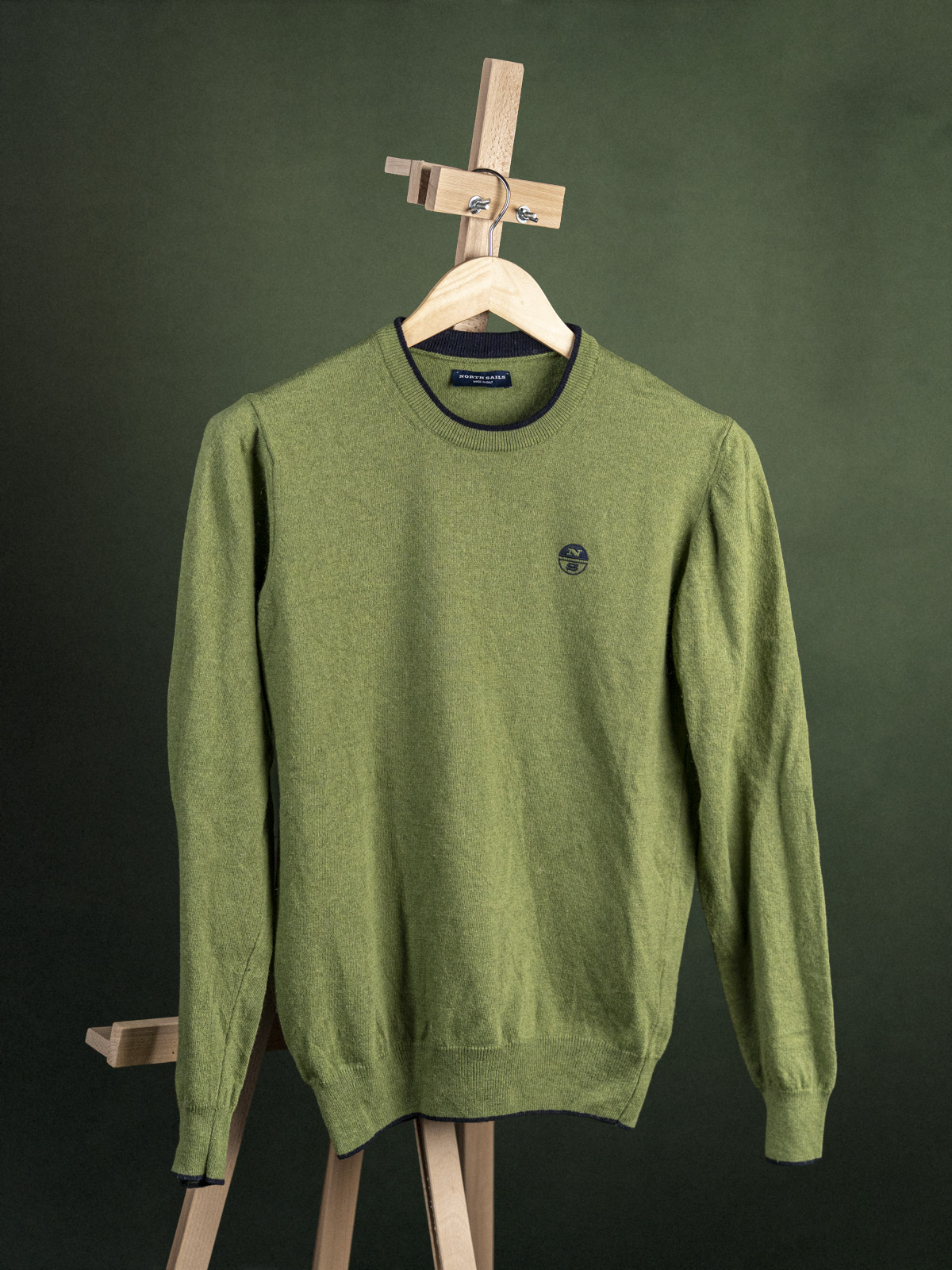 North Sails zielony sweter męski z granatowym emblematem r. S