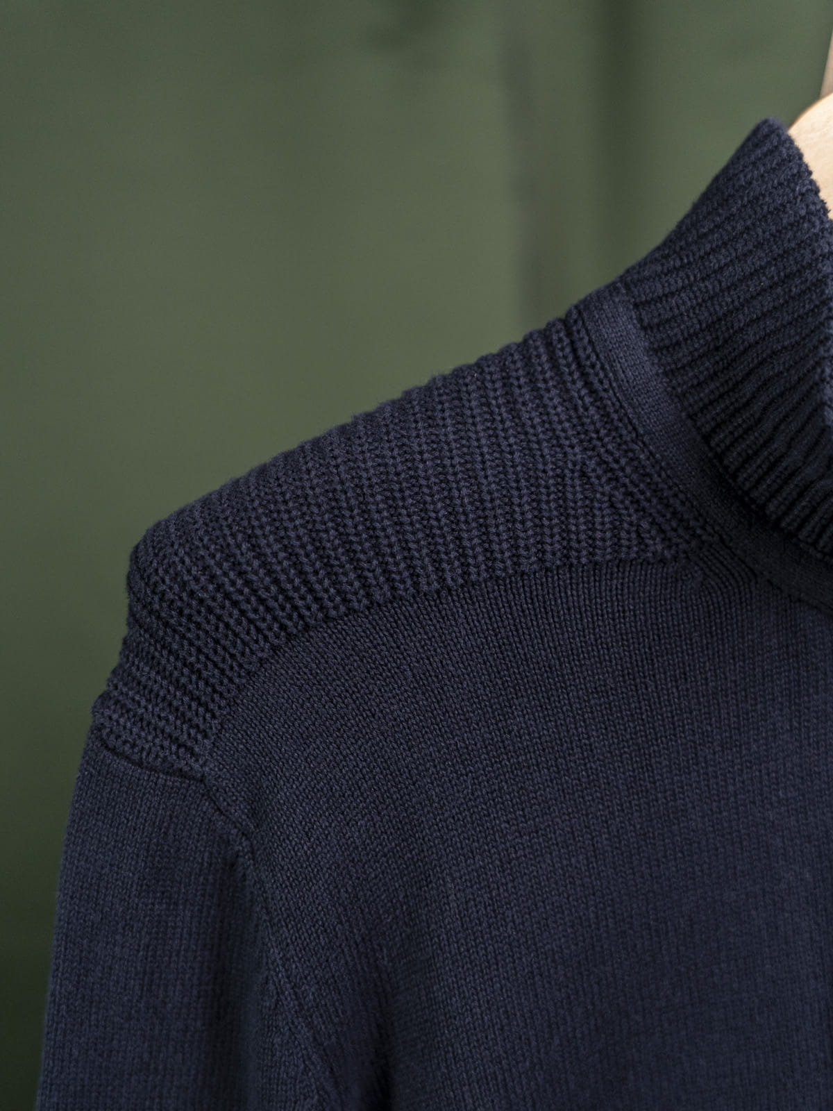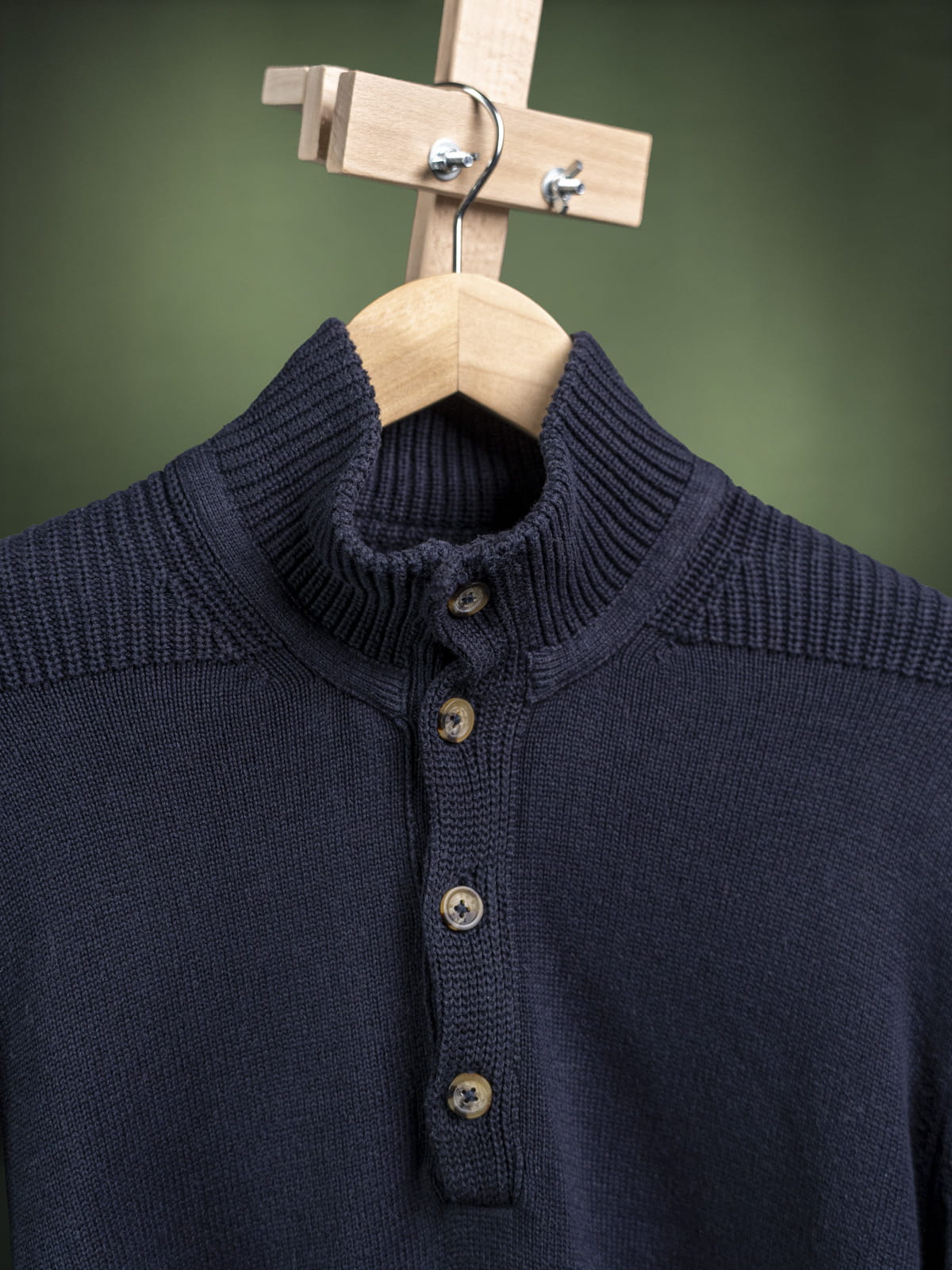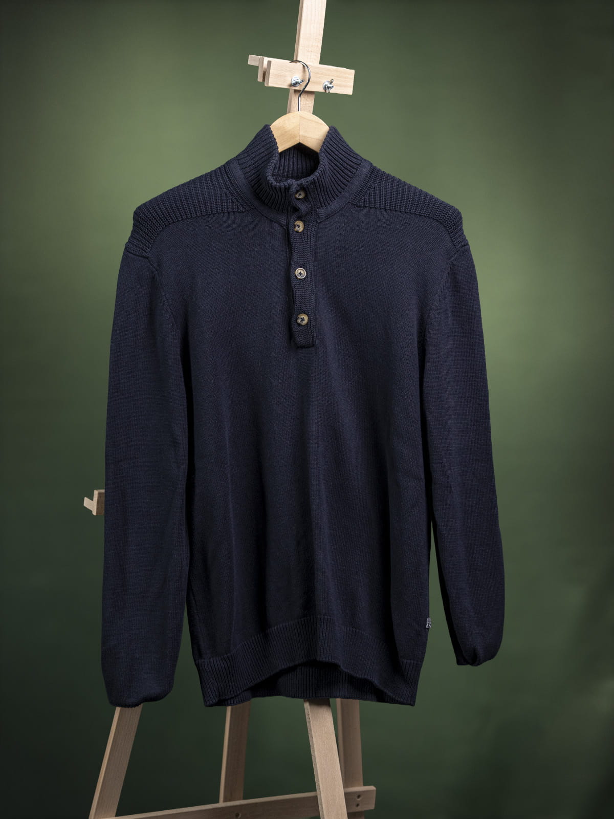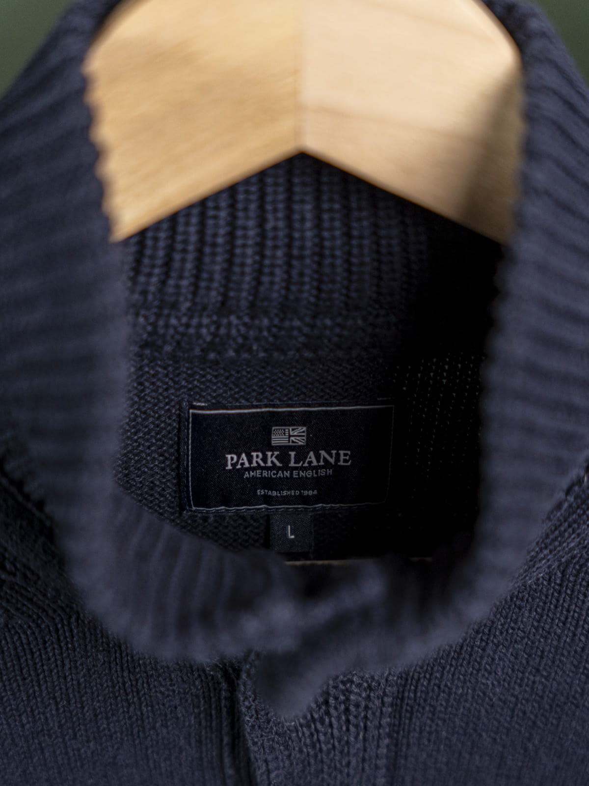Park Lane granatowy mięsisty sweter męski z kołnierzem i zapięciem na guziki r. L
