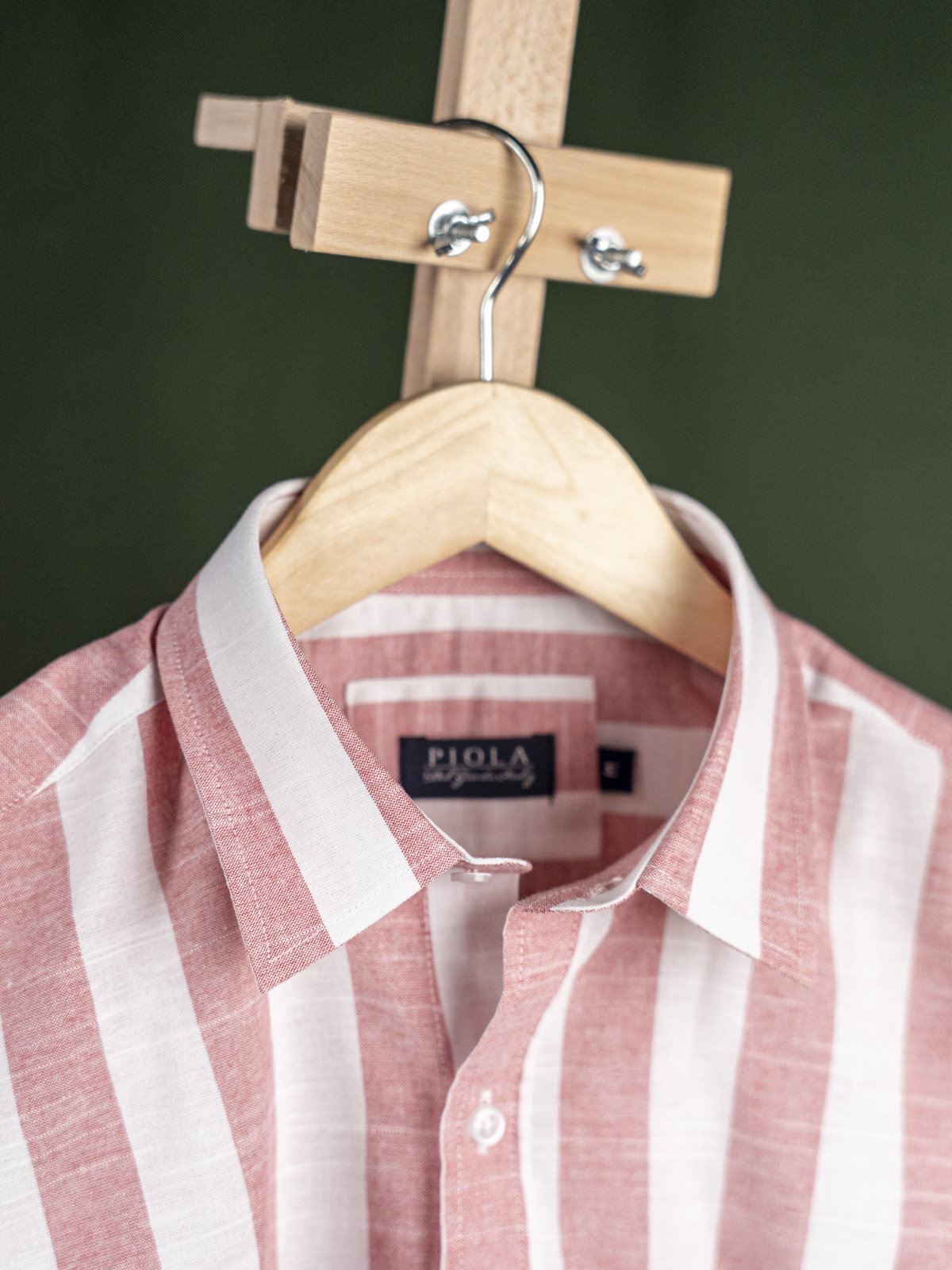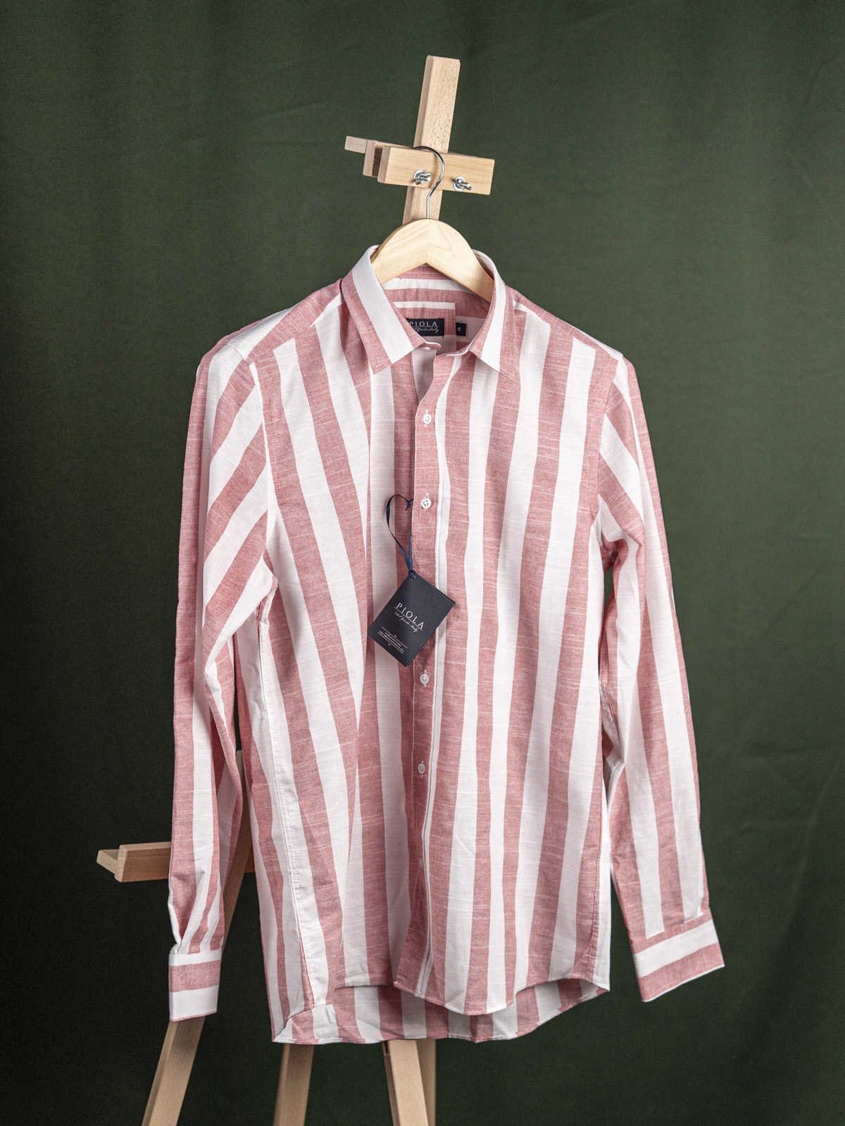 Piola nowa biała koszula męska w różowy prążek bengalski z kołnierzem kent r. M