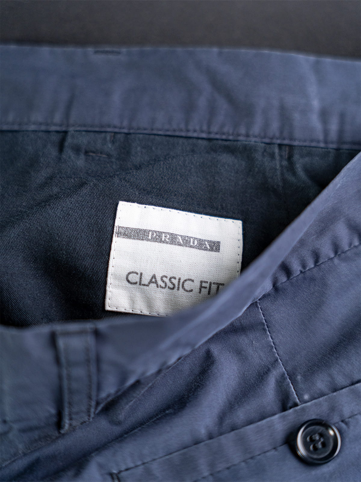 Prada granatowe męskie spodnie chino z tkaniny technicznej classic fit r. 52