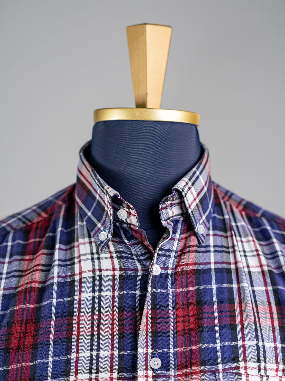 Rover&Lakes Granatowo-biało-bordowa koszula z kołnierzykiem button down r. L short