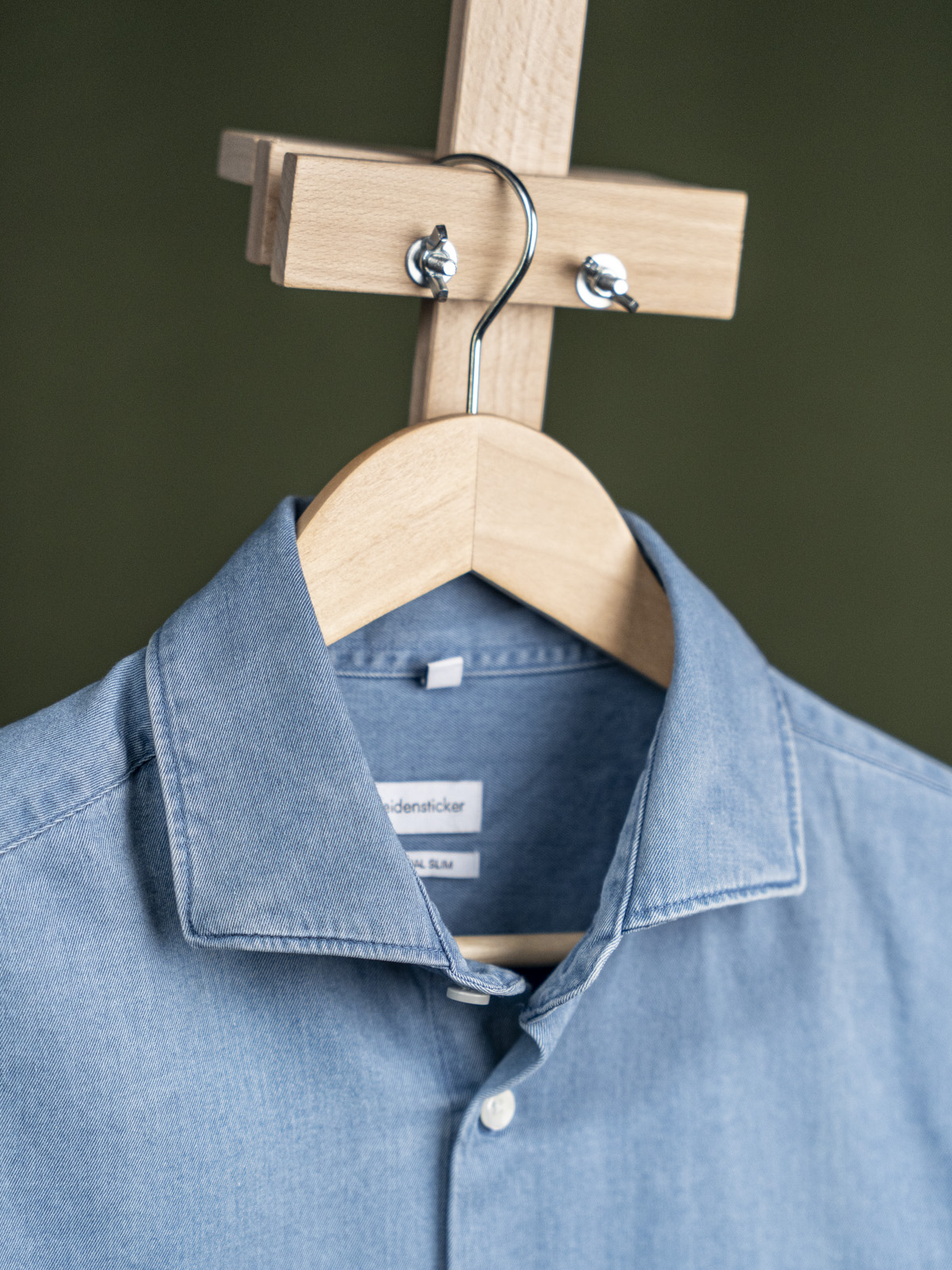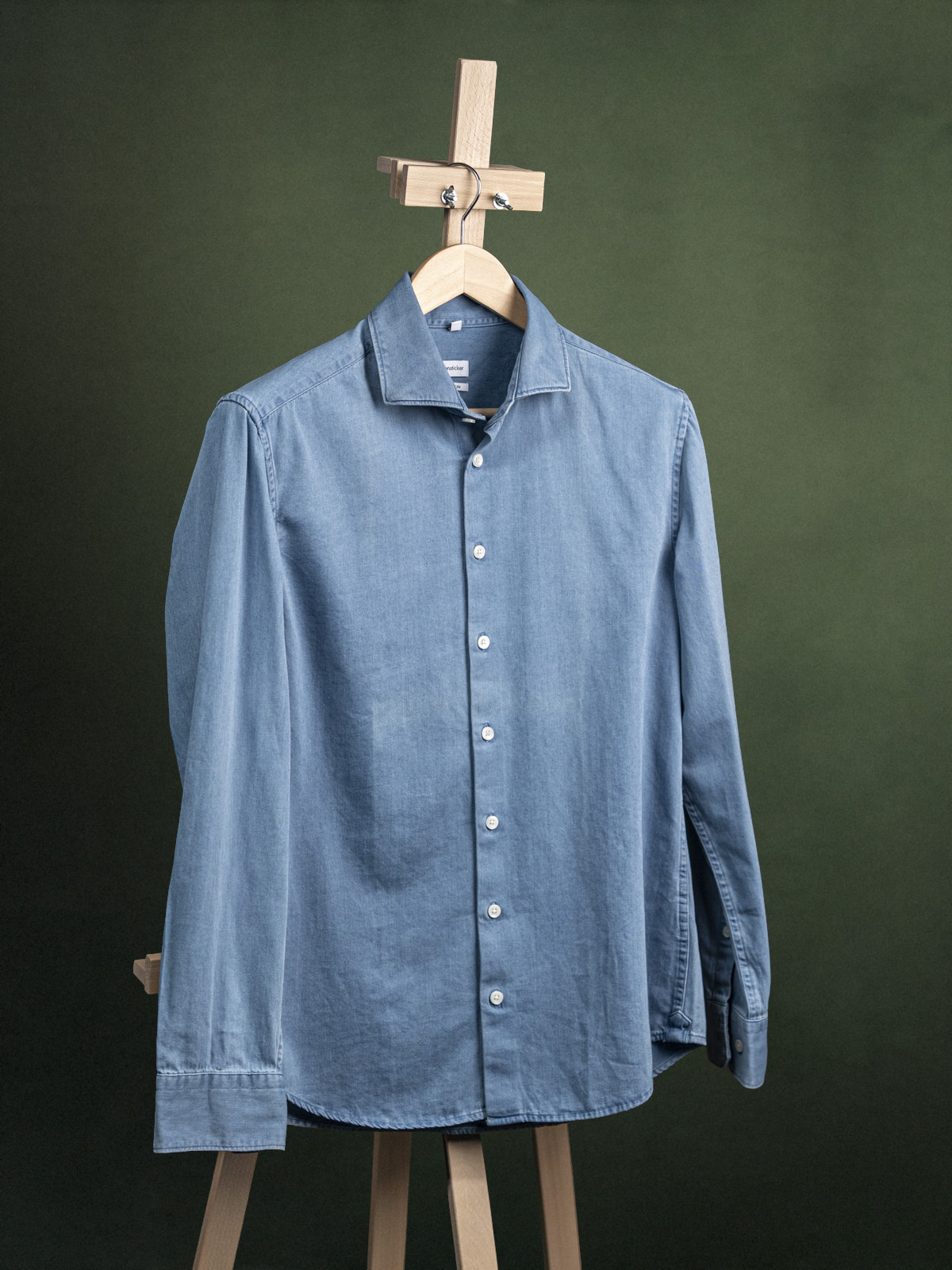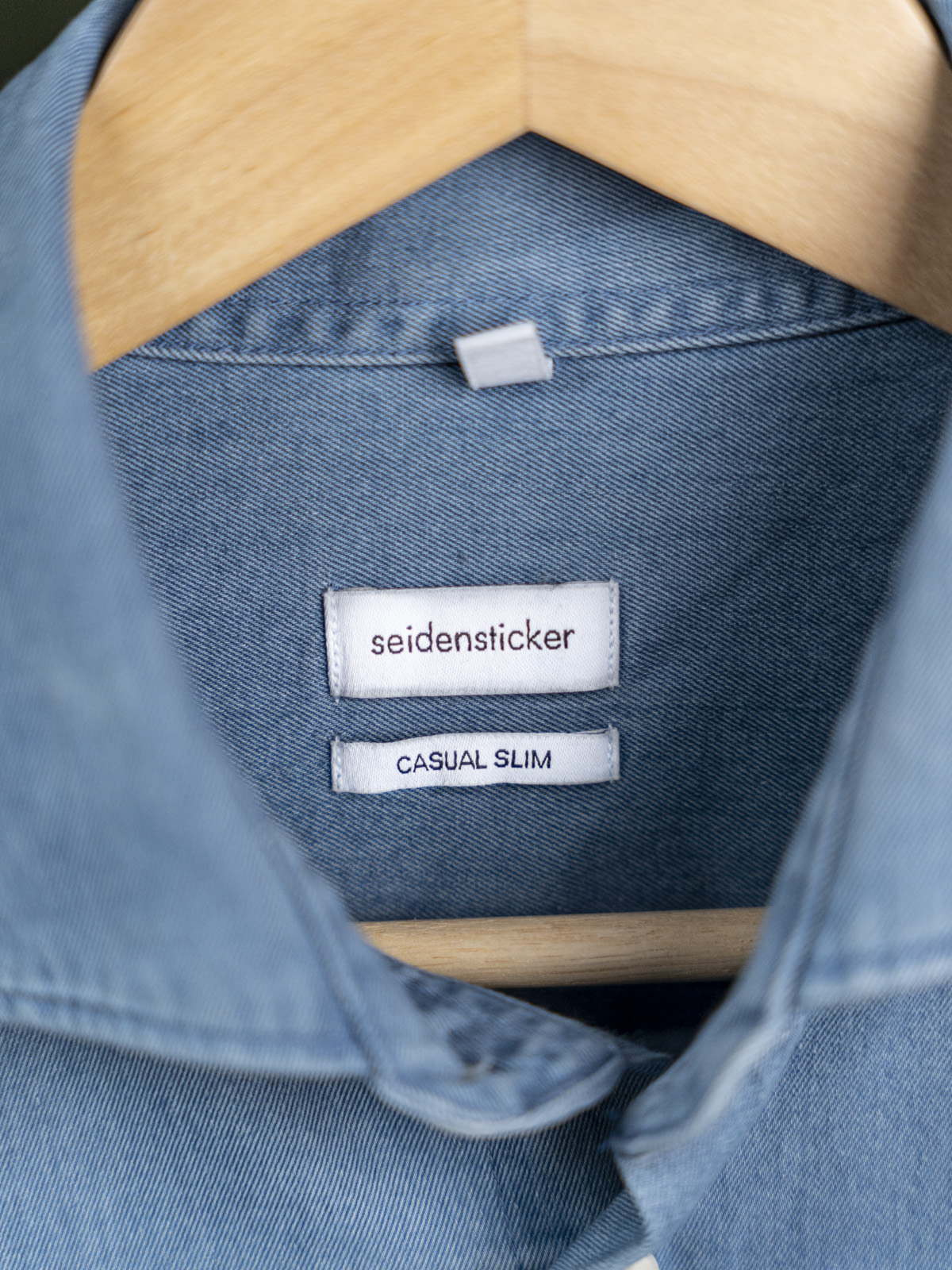 Seidensticker niebieska denimowa koszula z kołnierzem włoskim r. M