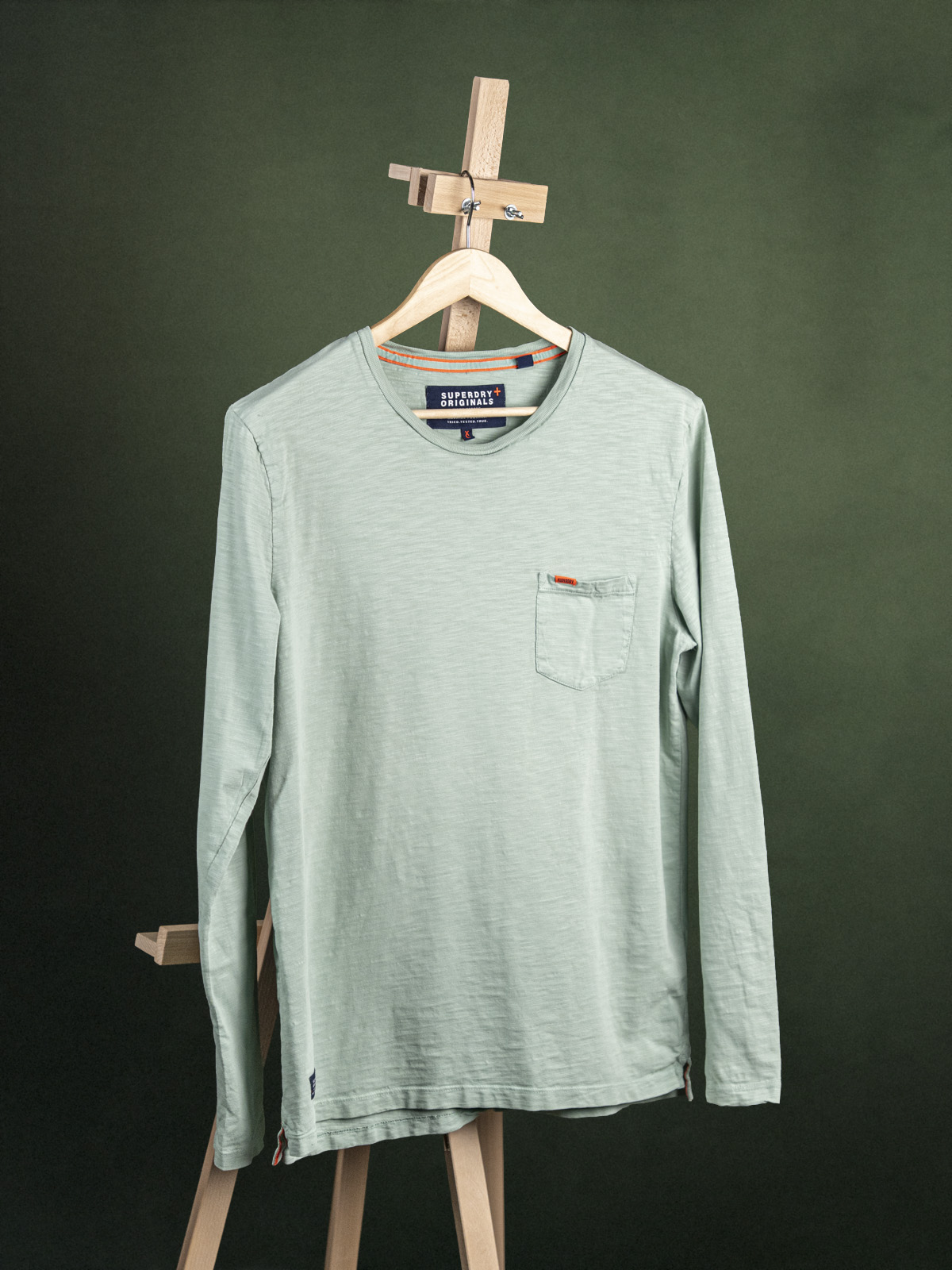 Superdry Szałwiowy męski longsleeve z kieszonką r. M