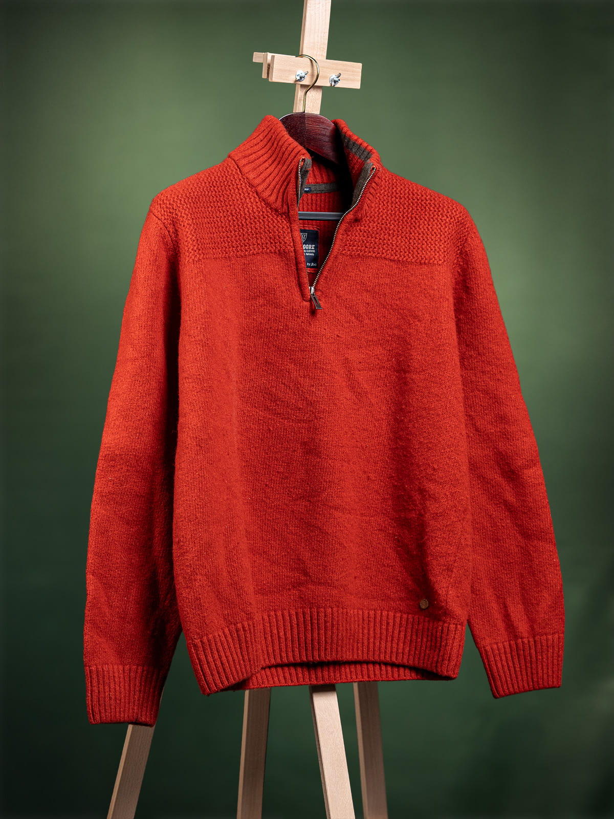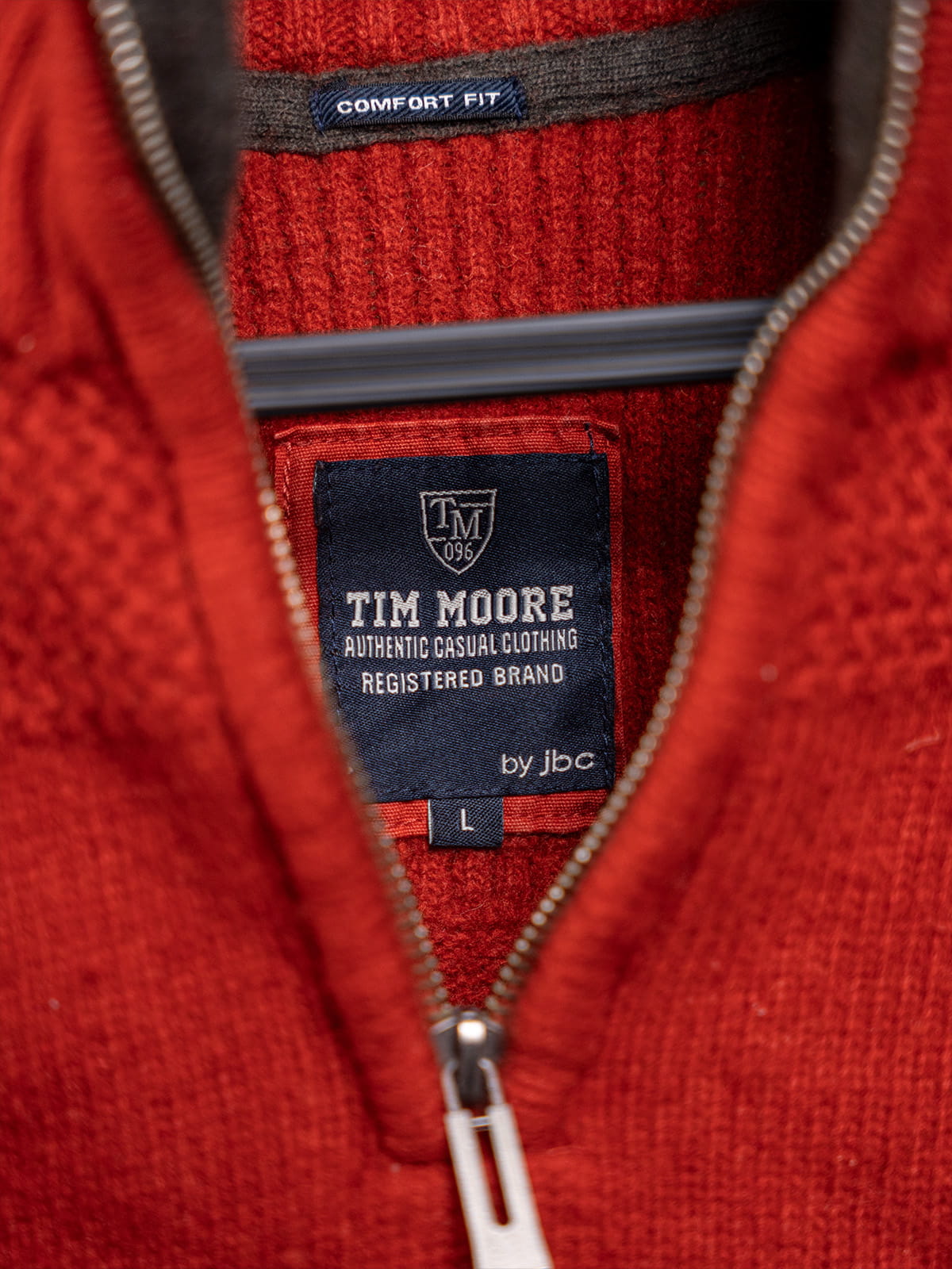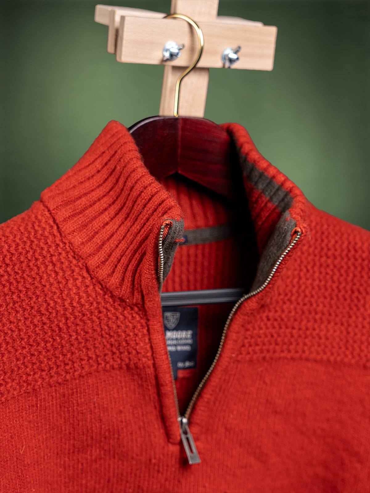 Team Moore ceglany wełniany półgolf zip-up męski r. L
