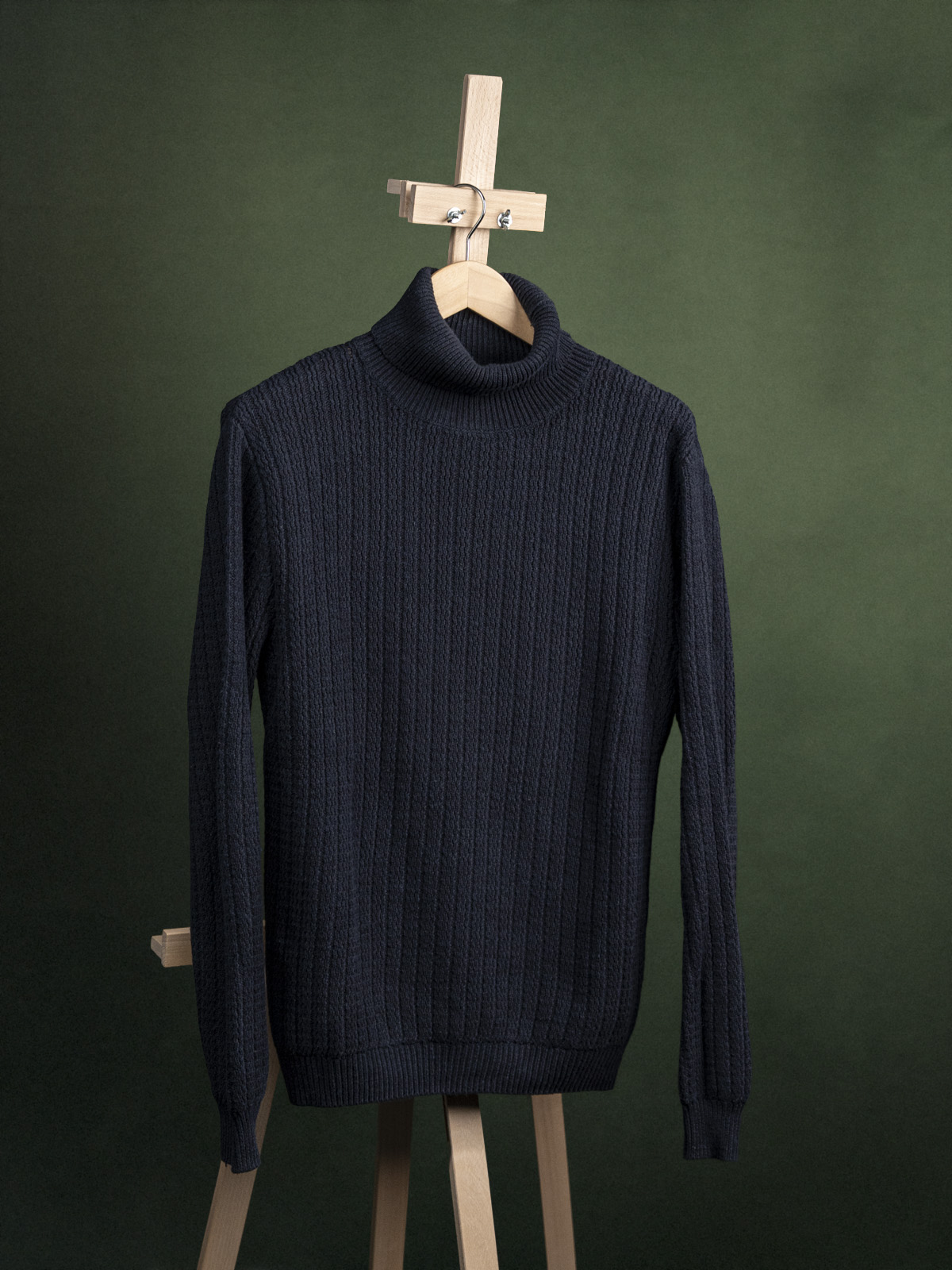 These Glory Days granatowy żebrowany golf z bawełny i wełny r. M
