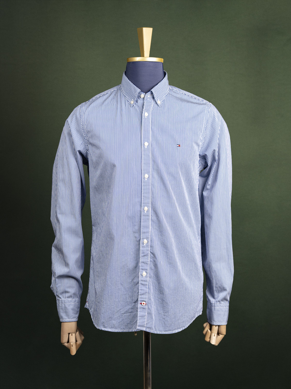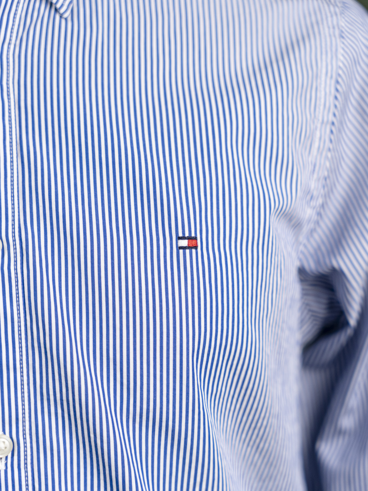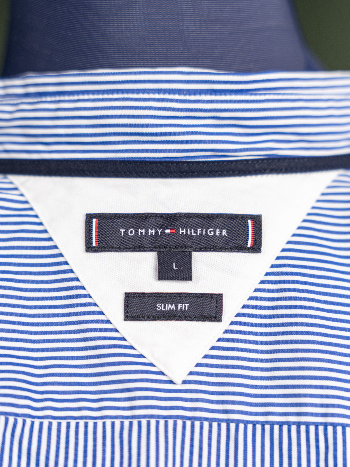 Tommy Hilfiger niebieska pasiasta koszula męska z kołnierzem bd r. M