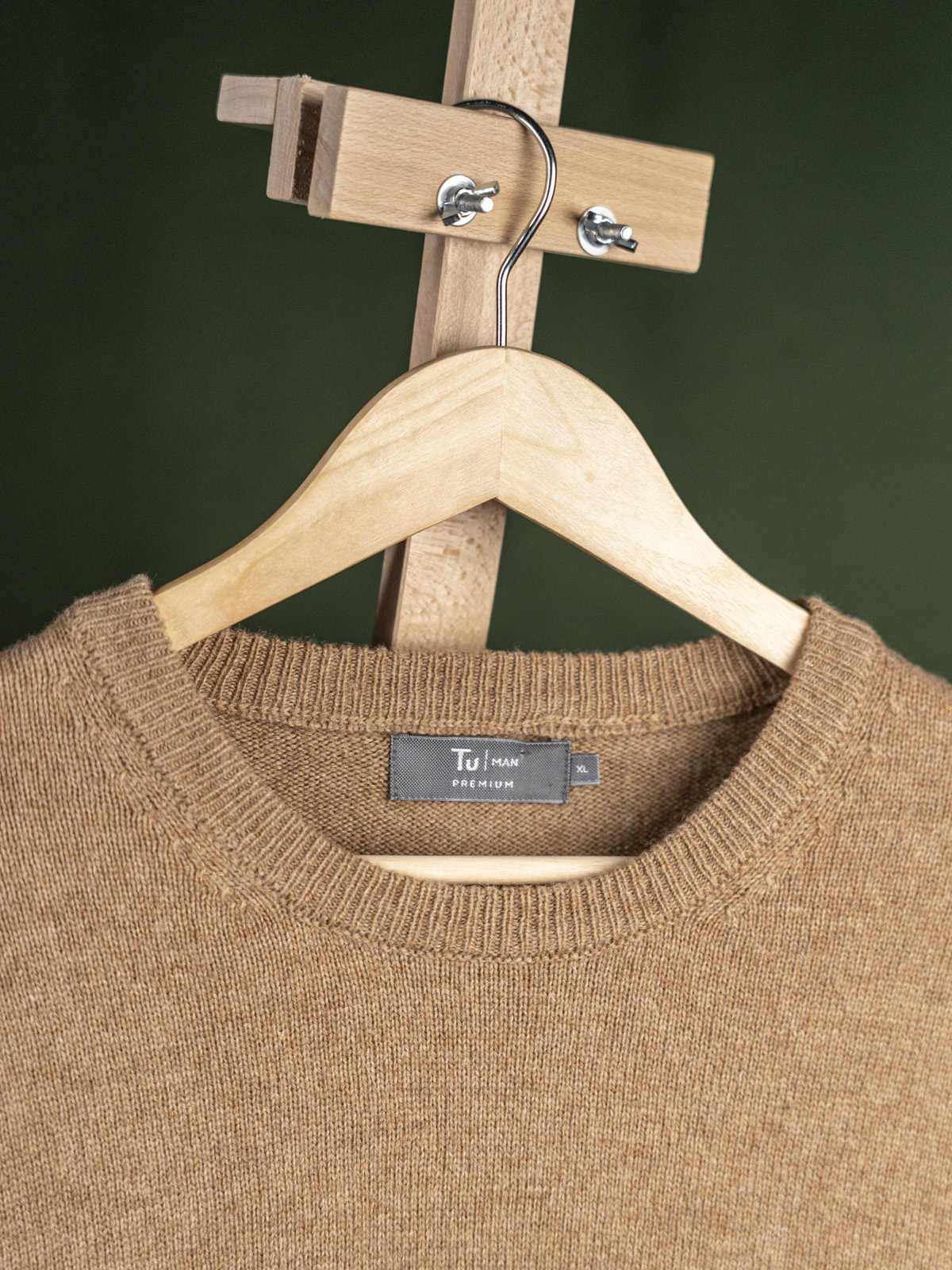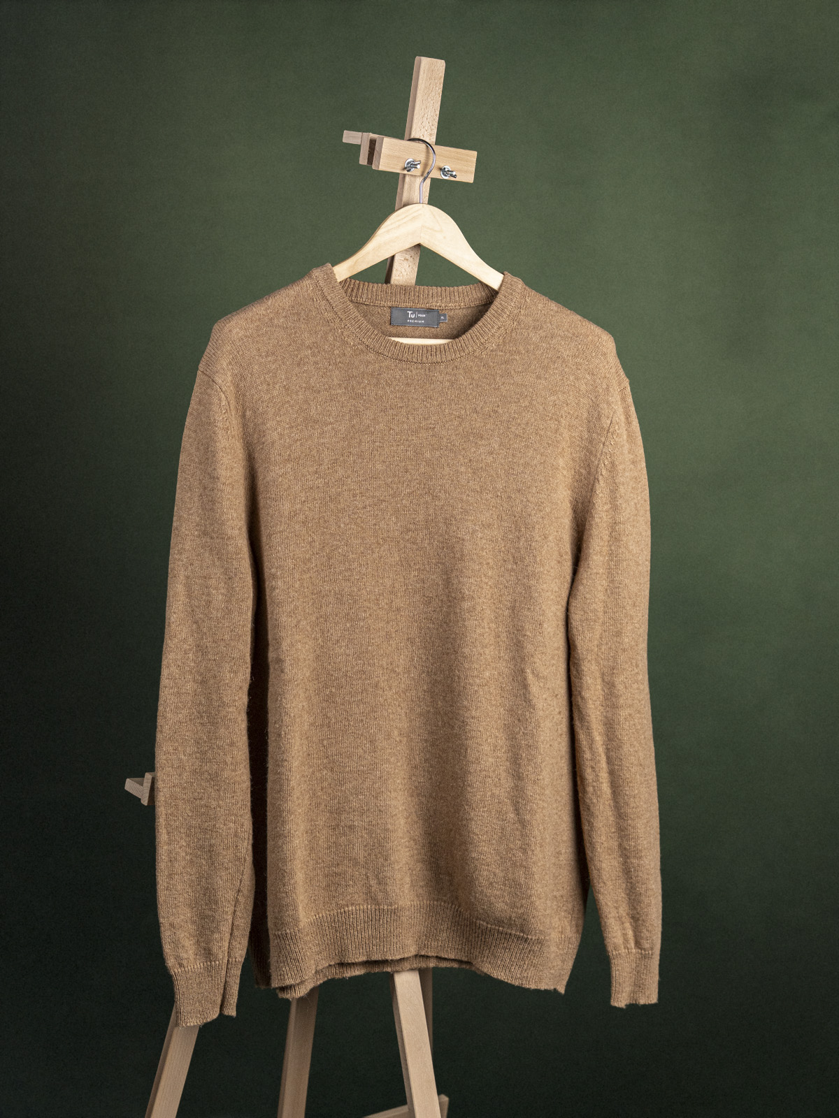 Tu Man beżowy sweter męski z okrągłym dekoltem r. XL