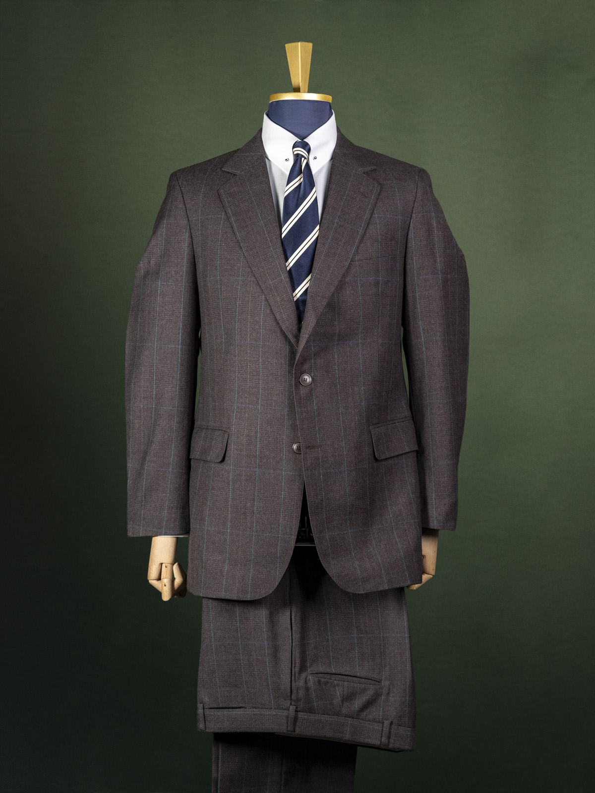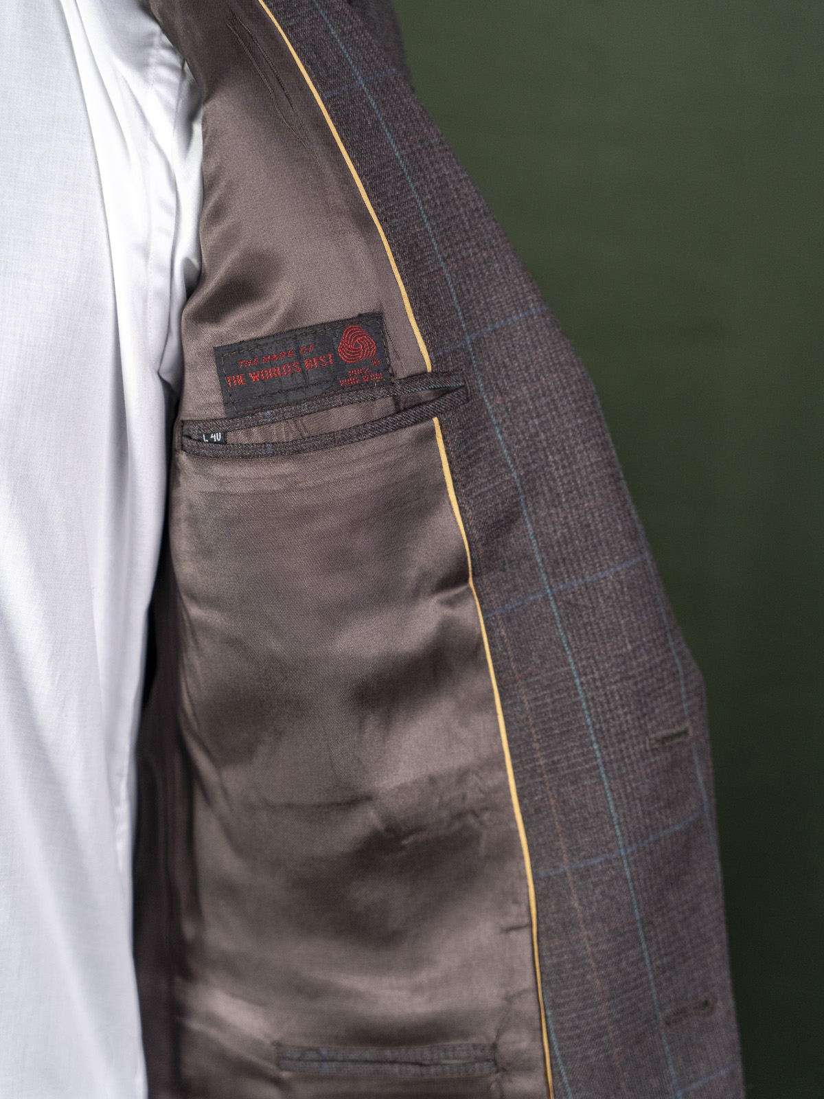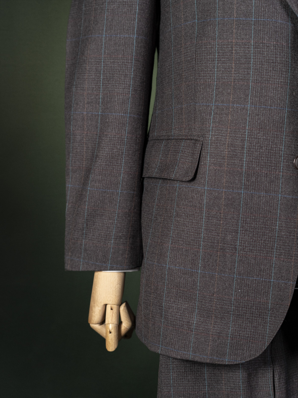 Vintage polski brązowy garnitur męski w rudo-turkusową kratkę r. L (52)