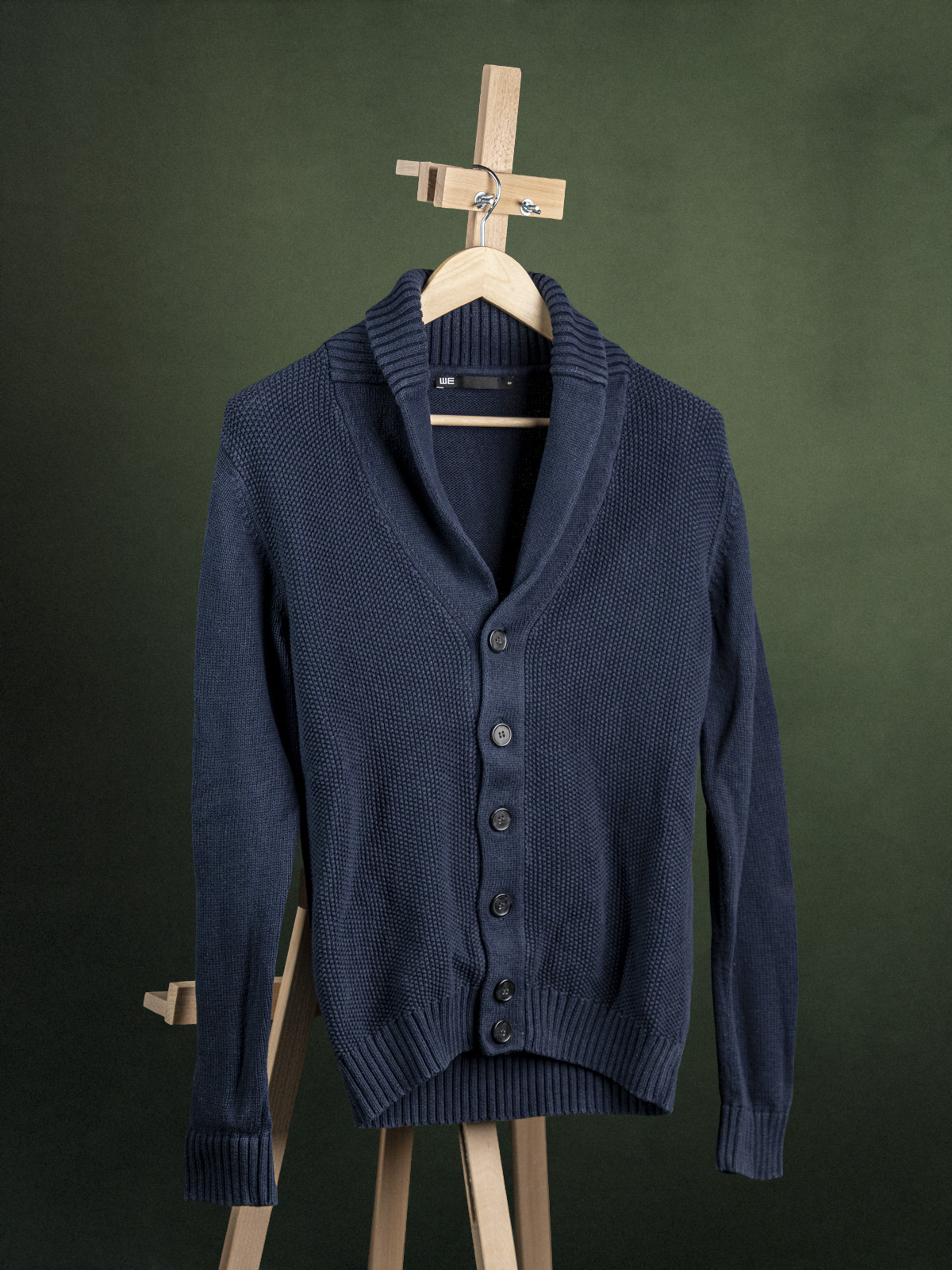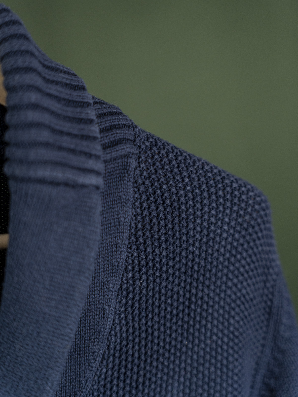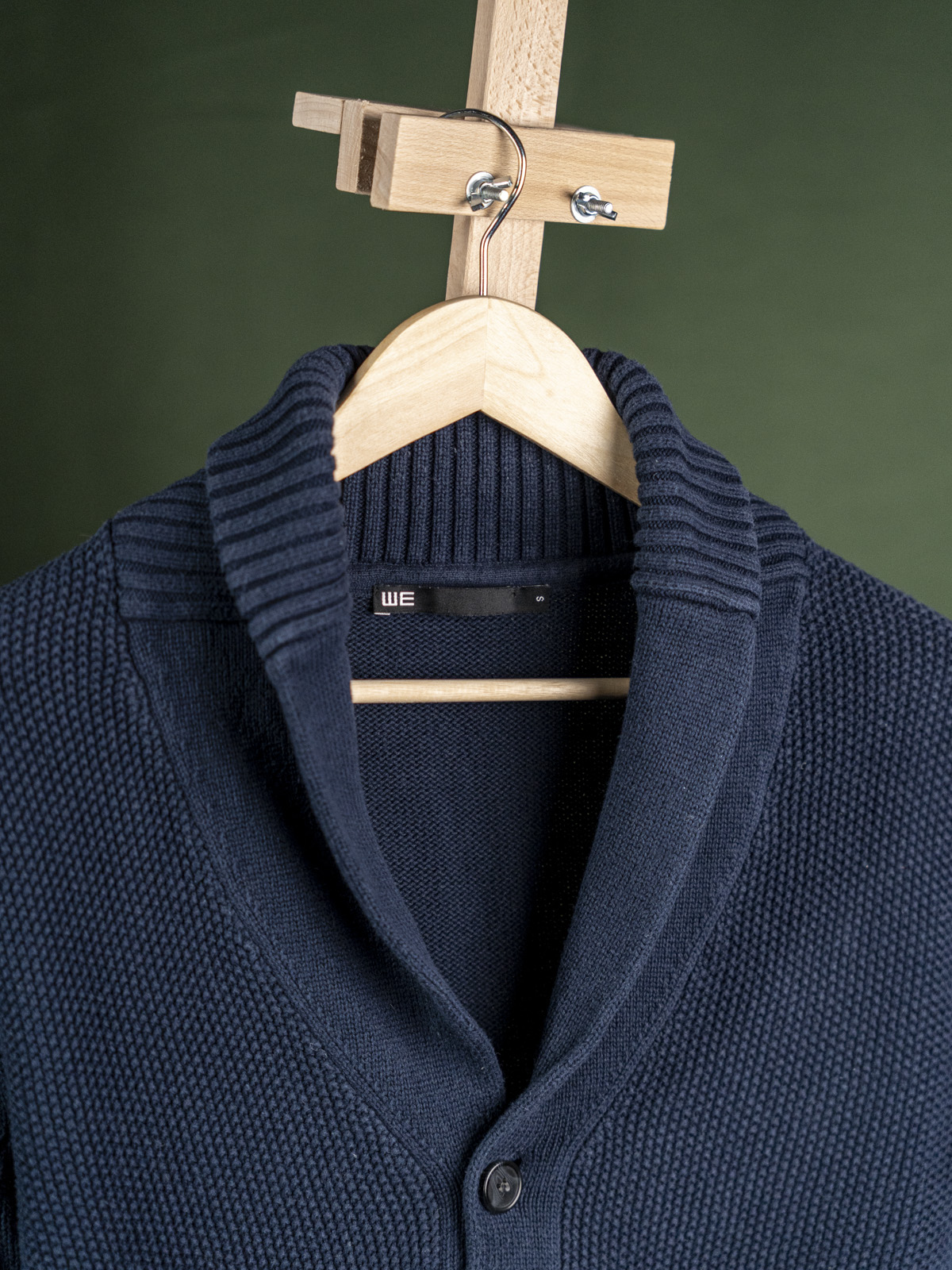 WE Fashion granatowy męski kardigan z kołnierzem szalowym i wyraźną fakturą r. S