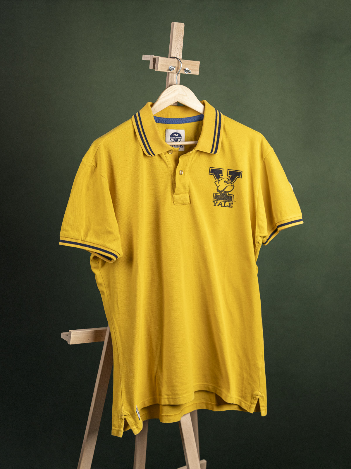 Yale żółta polówka męska z granatowym emblematem r. XXL